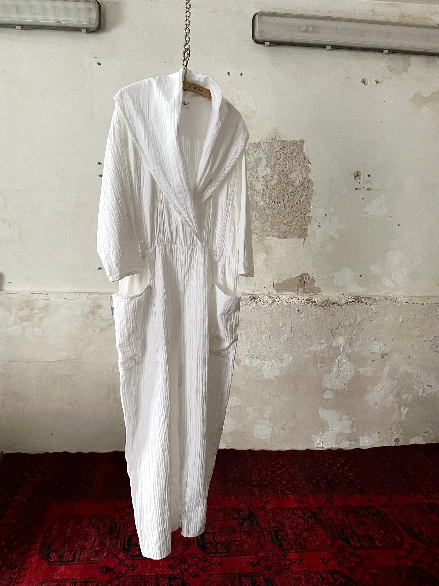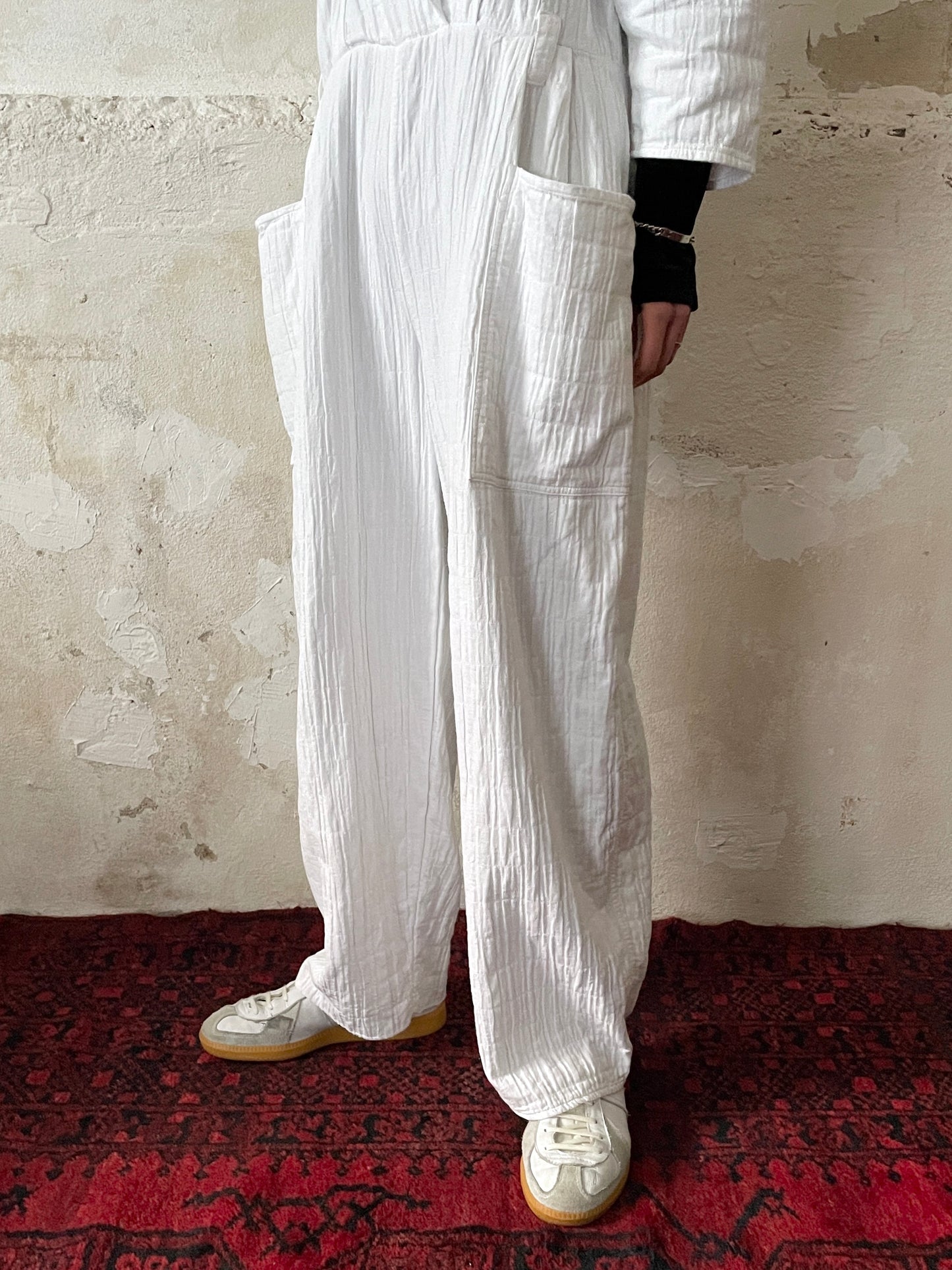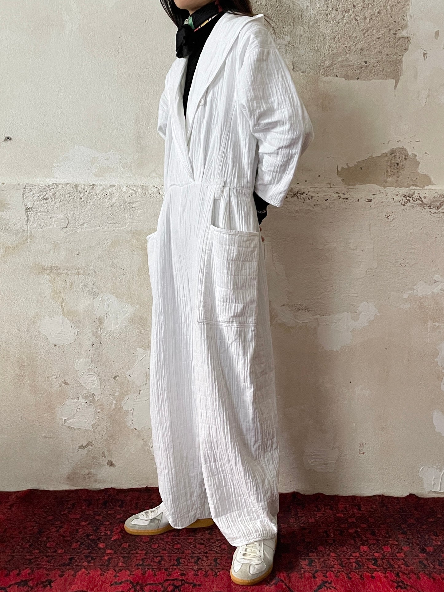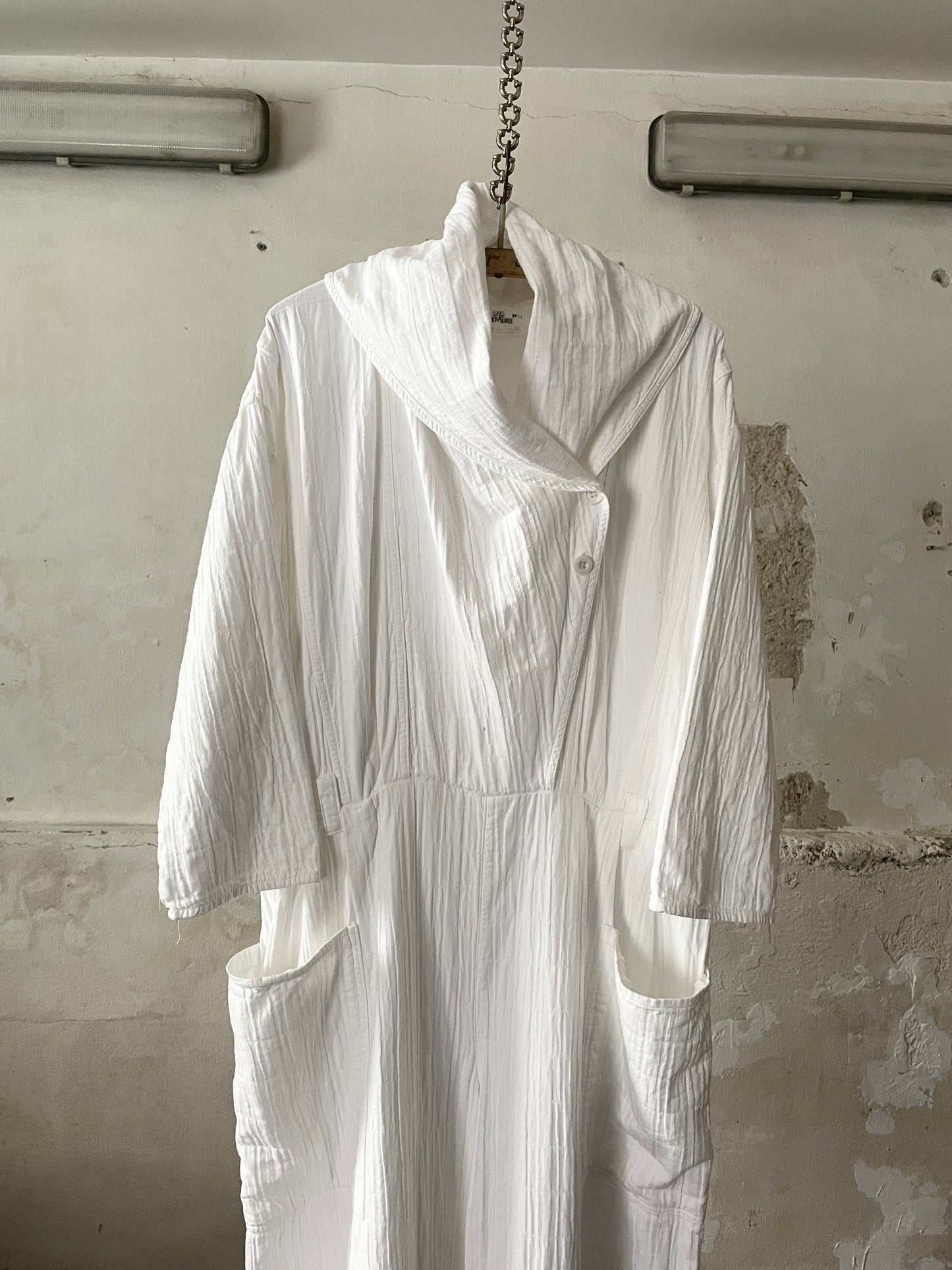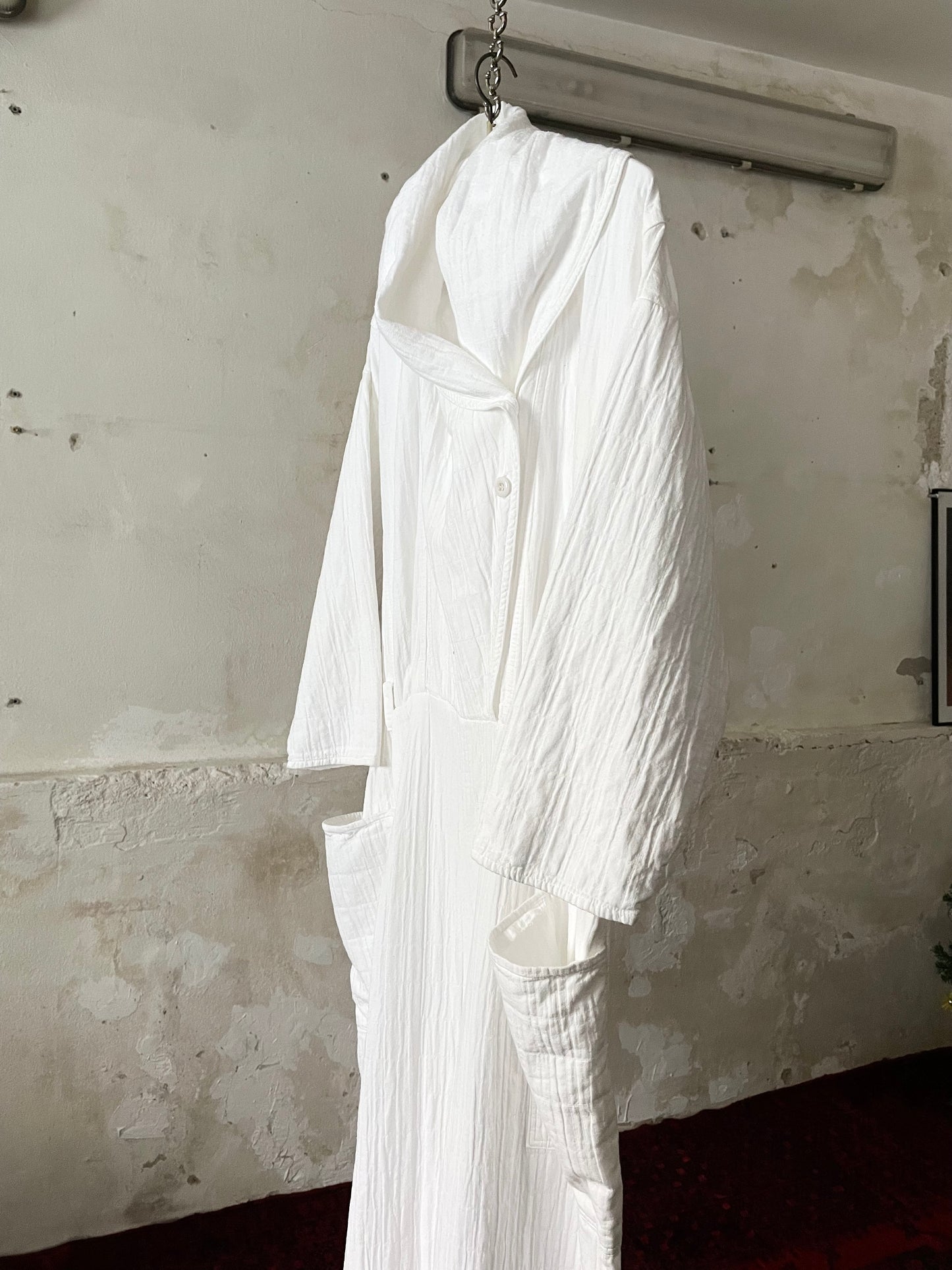 シボ加工のされた真っ白なおふとんジャンプスーツ。from Germany