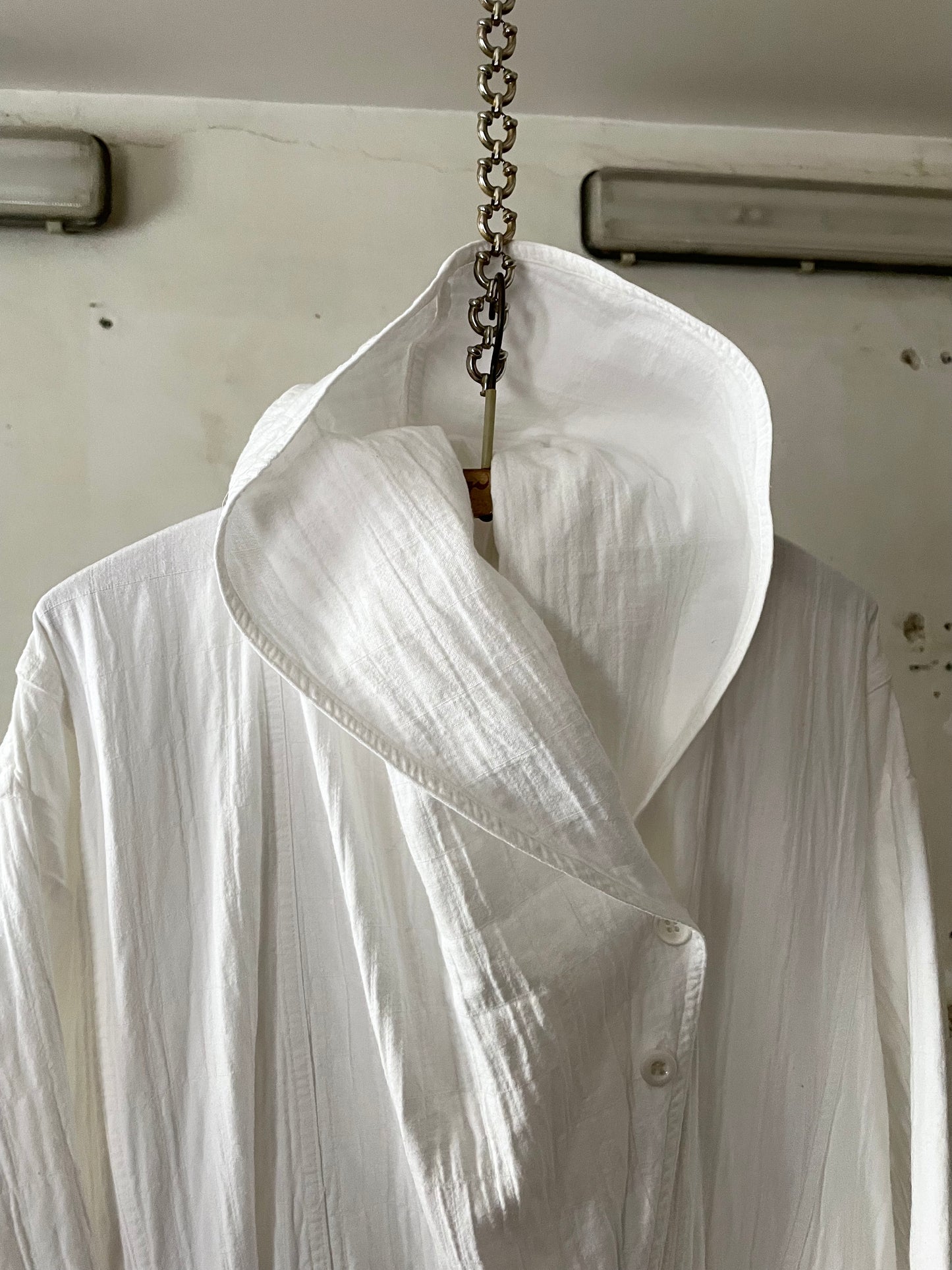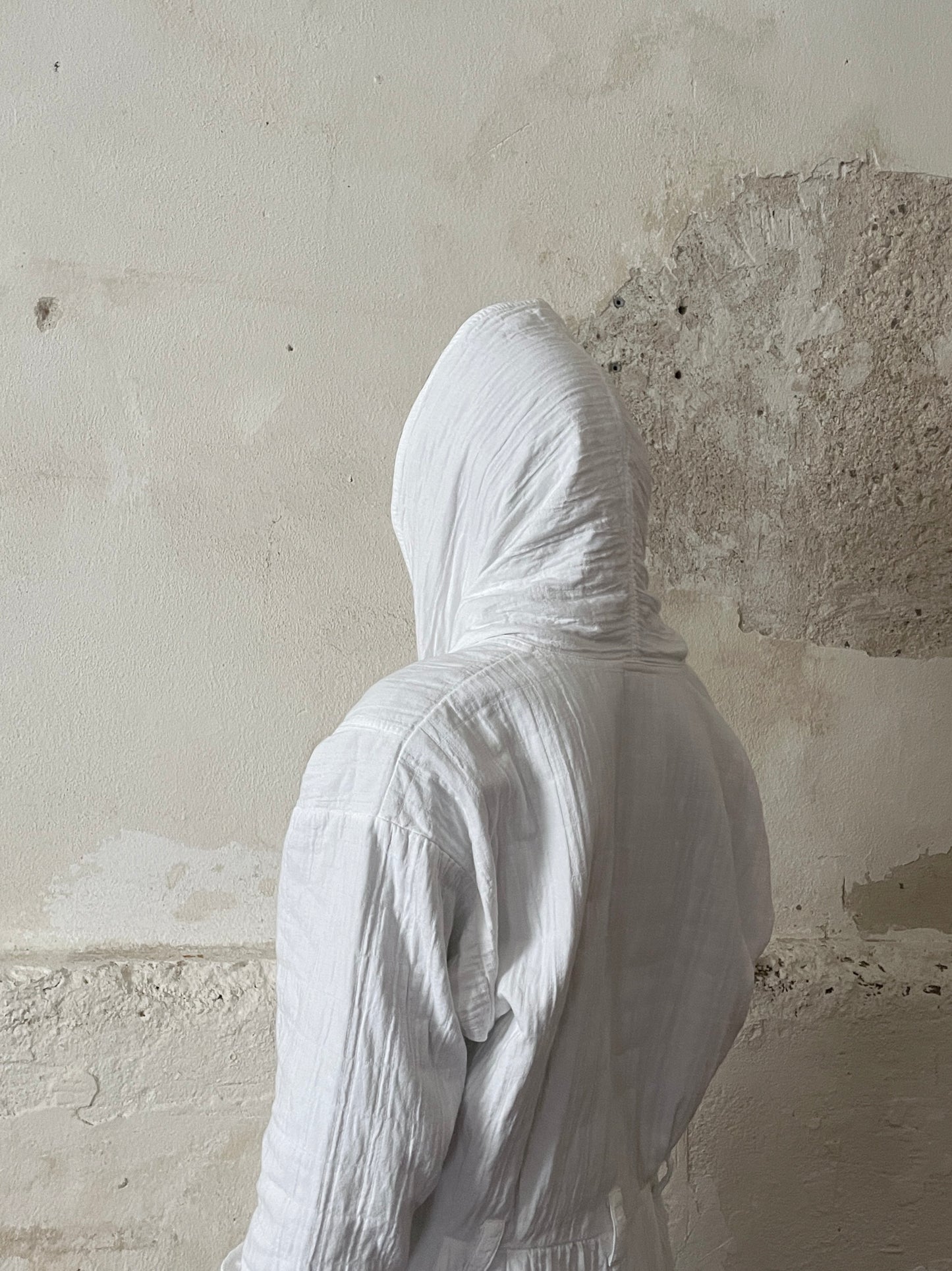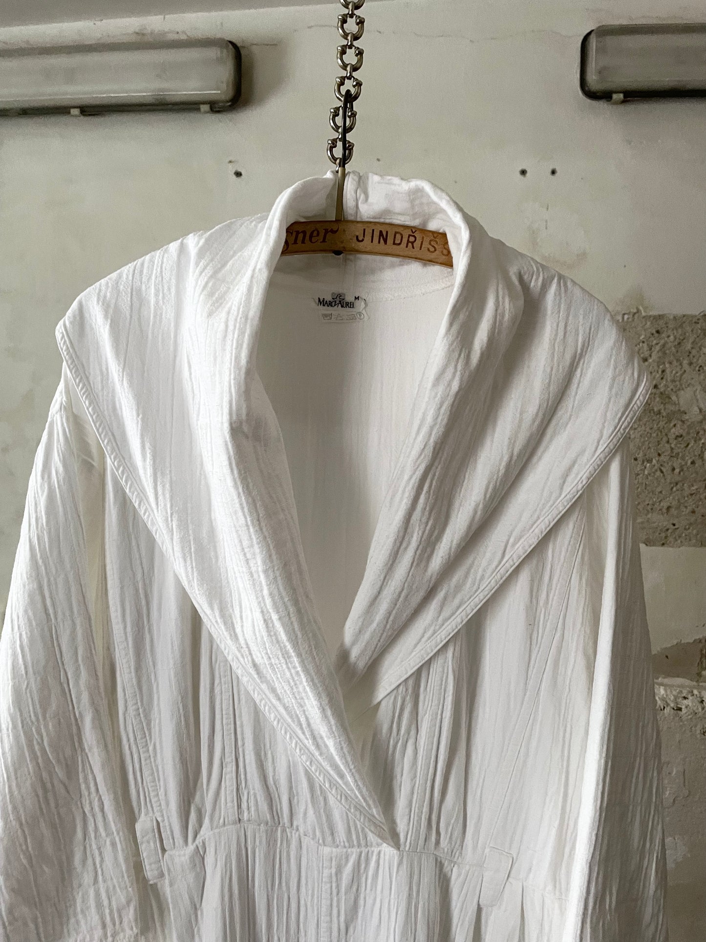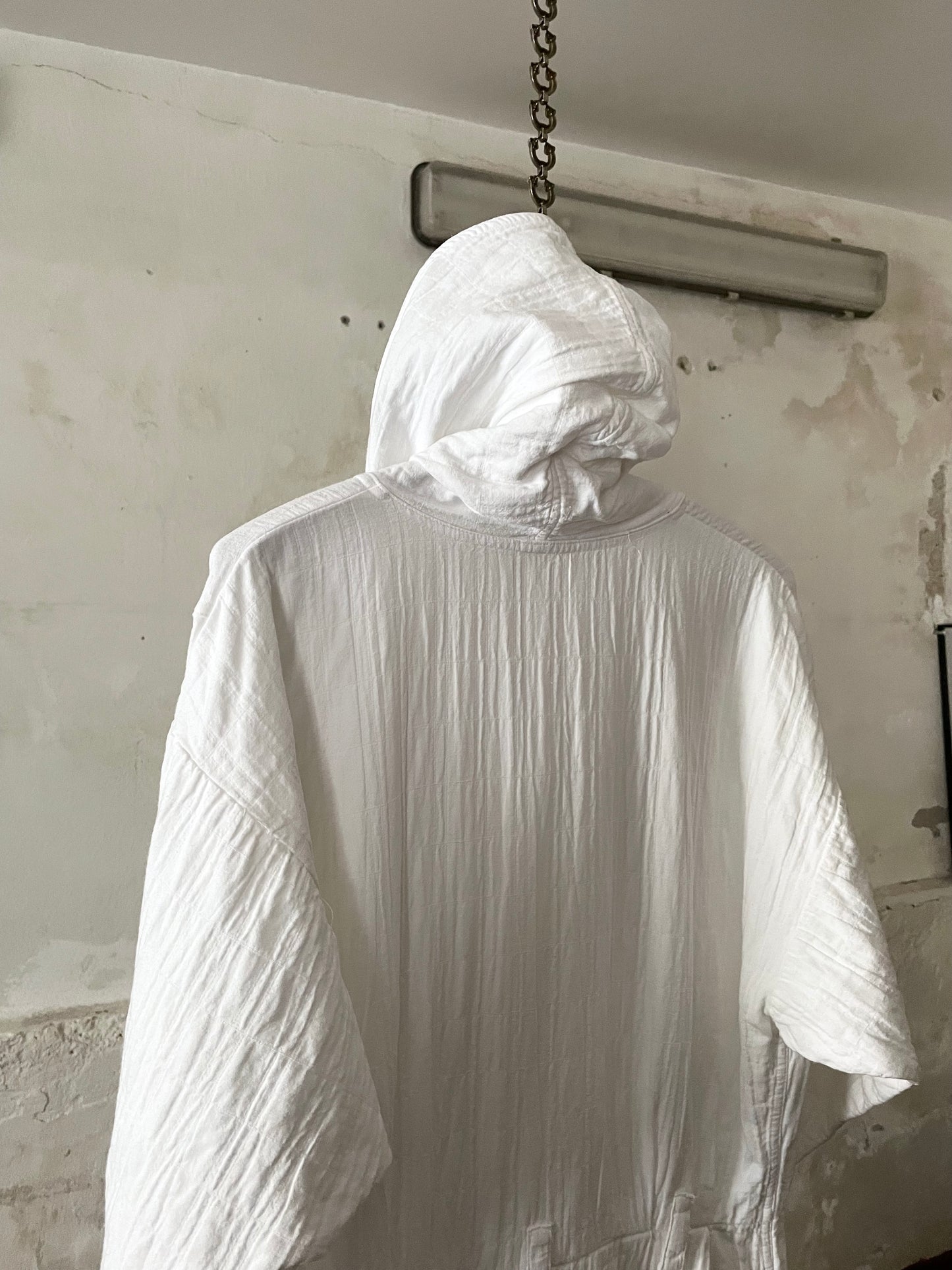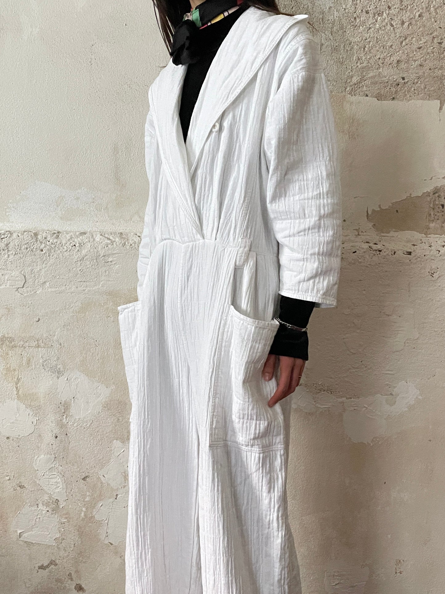 シボ加工のされた真っ白なおふとんジャンプスーツ。from Germany