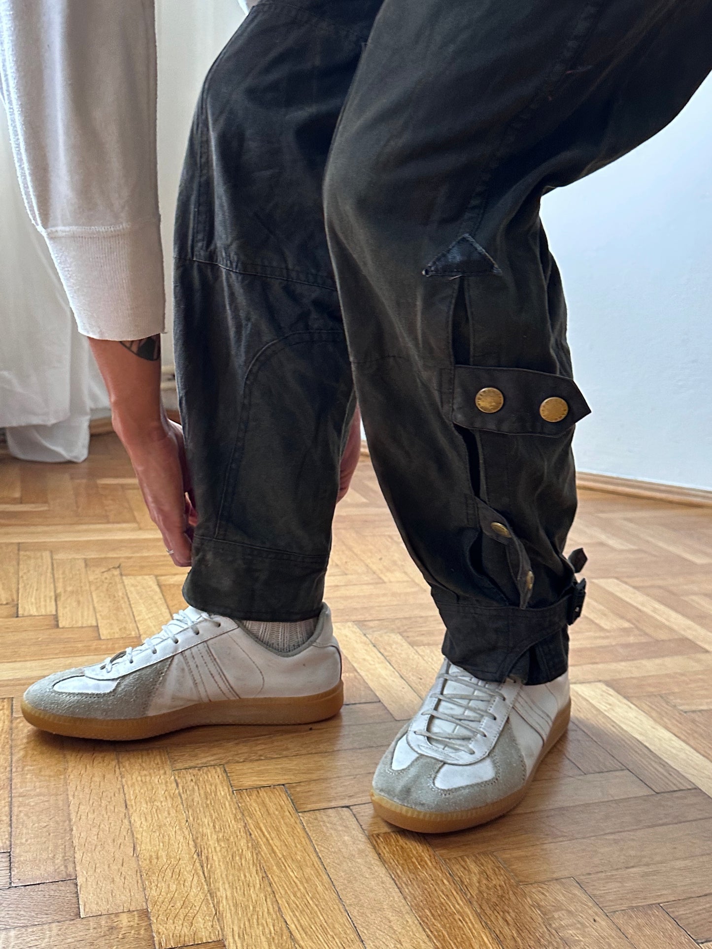 裾は絞れる仕様です、全開にあけて裾幅広く穿くの個人的に好きです。
