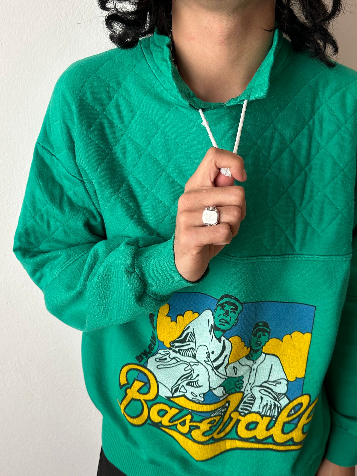 首元に少しデザインあったりと古着なスウェットシャツ。
