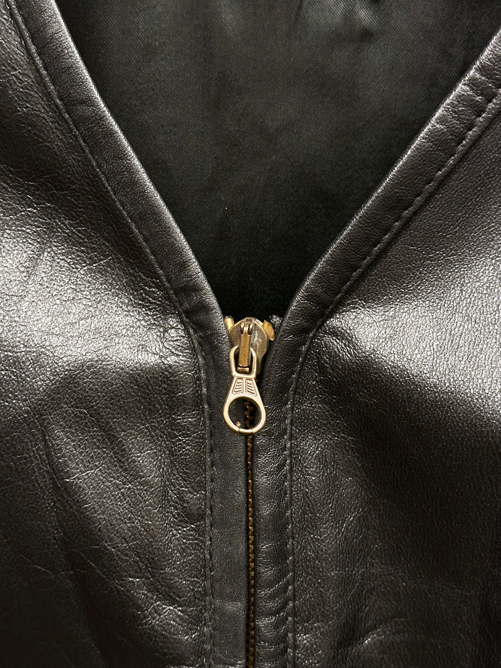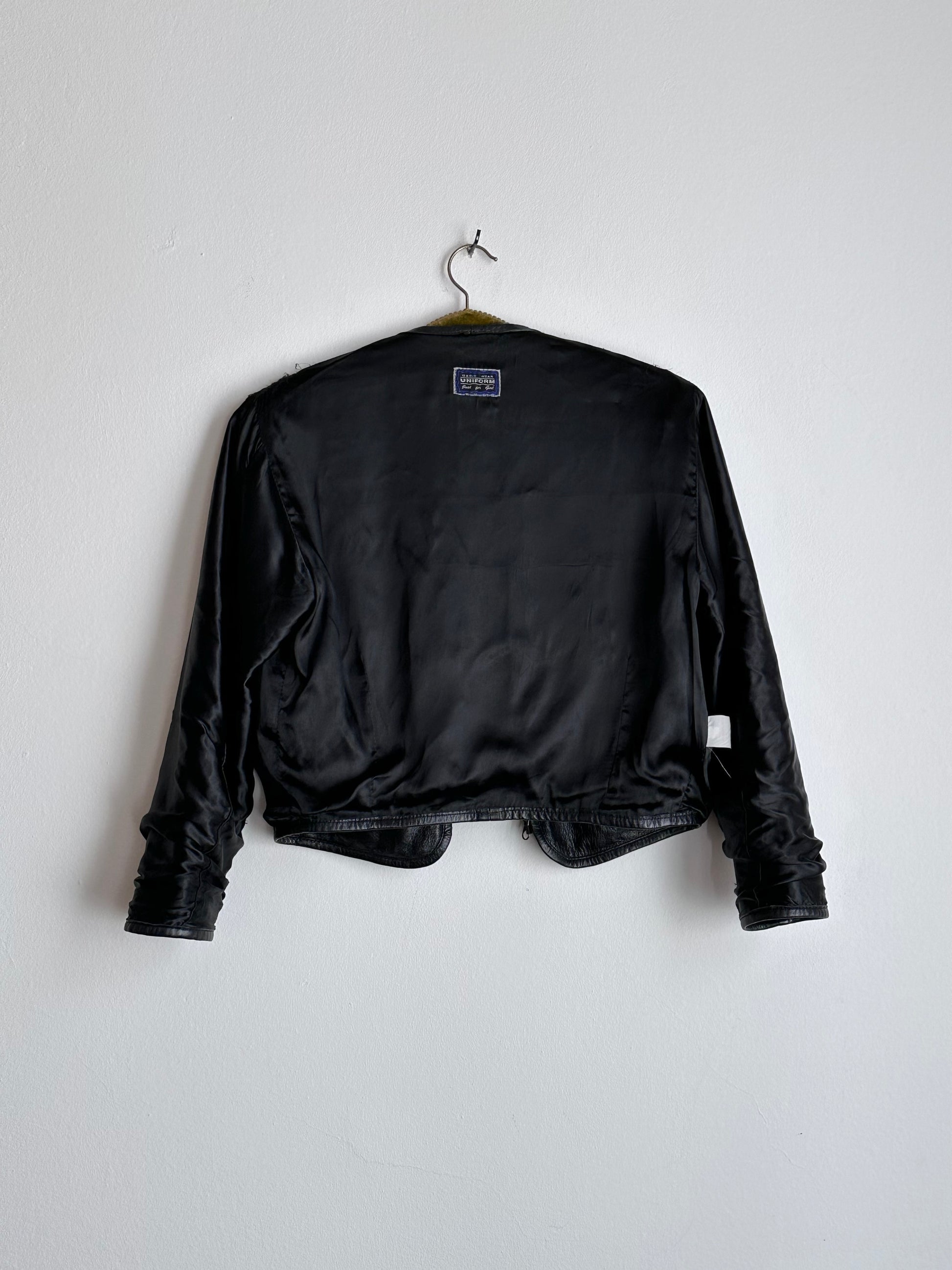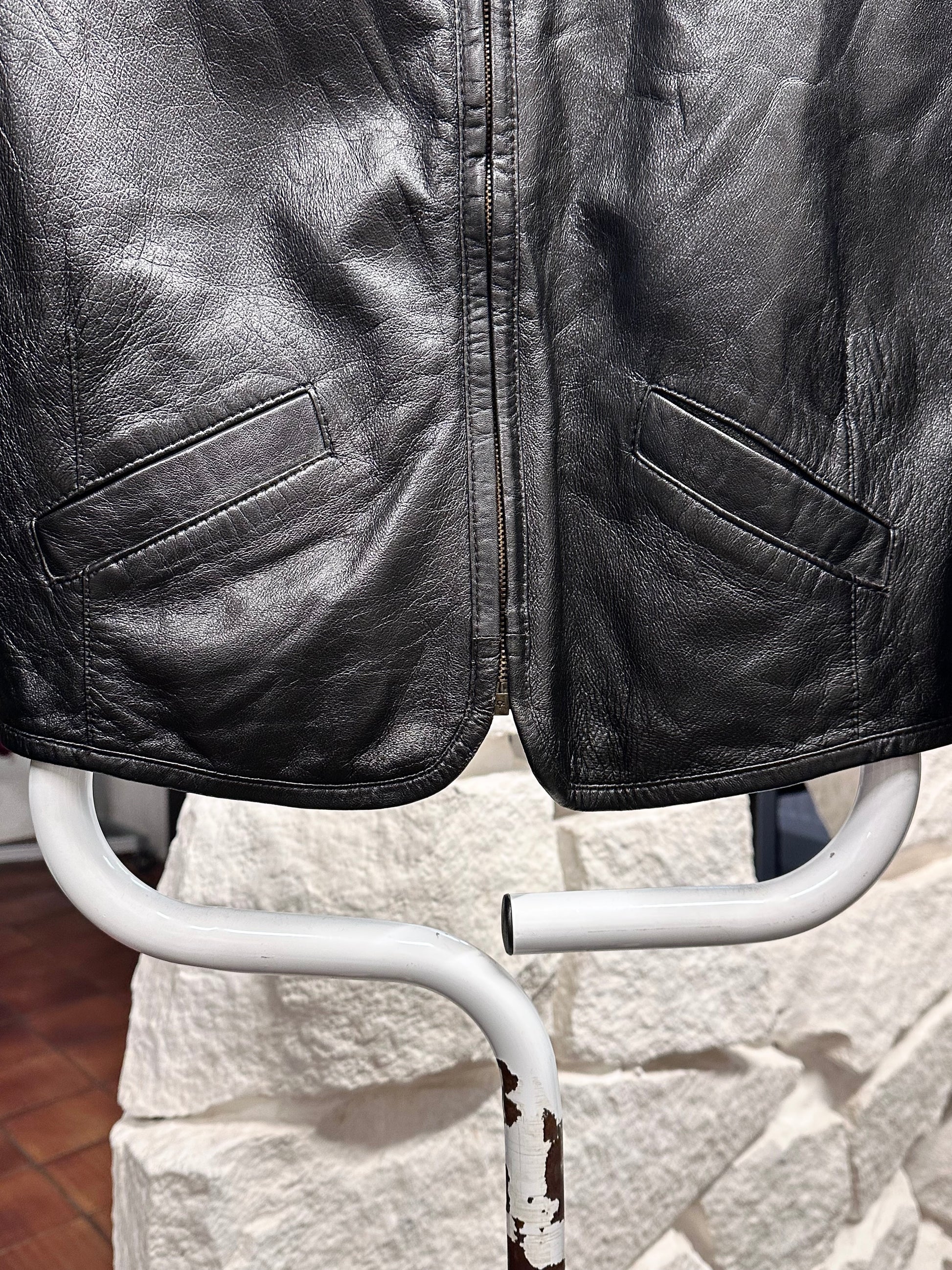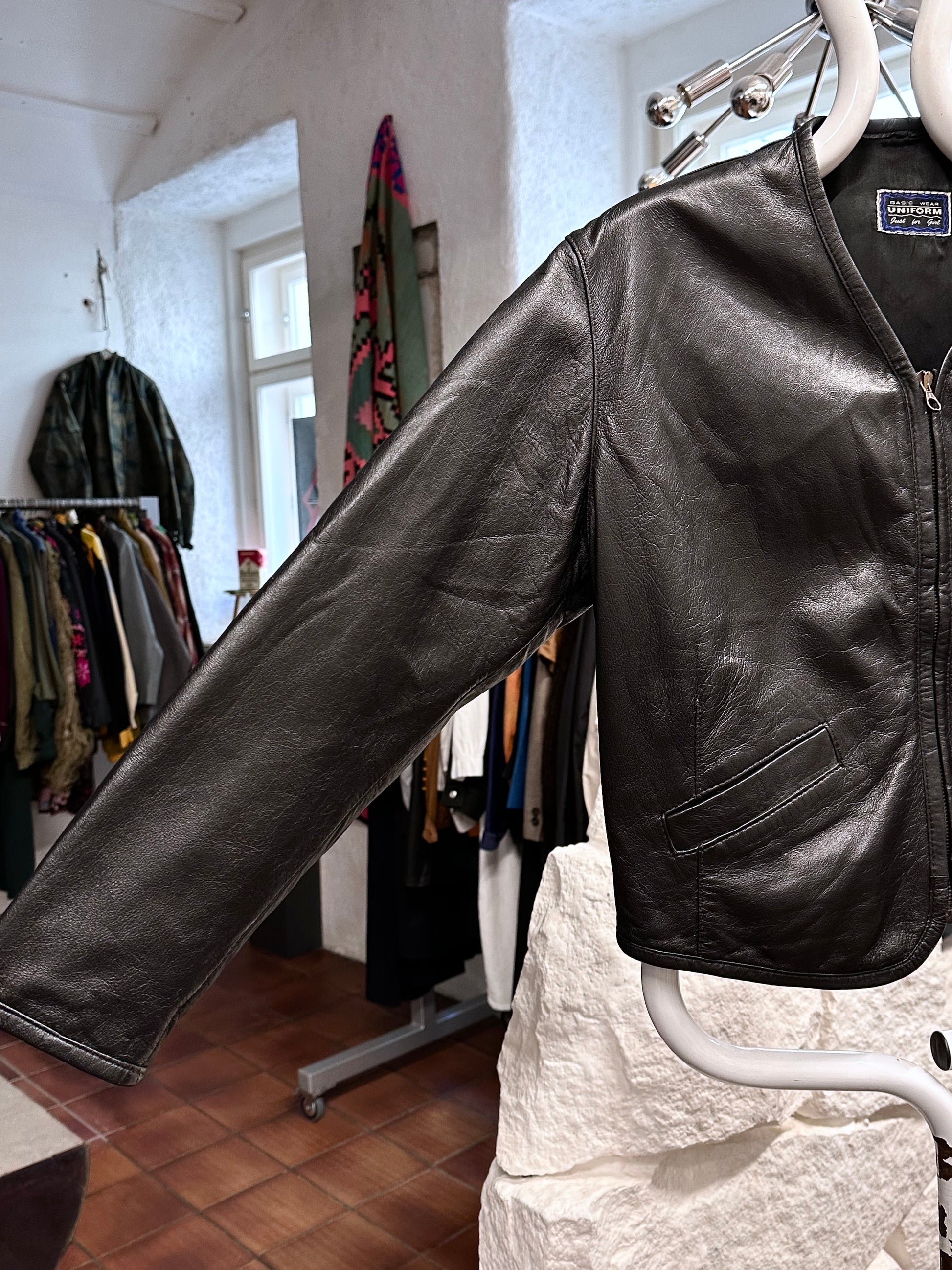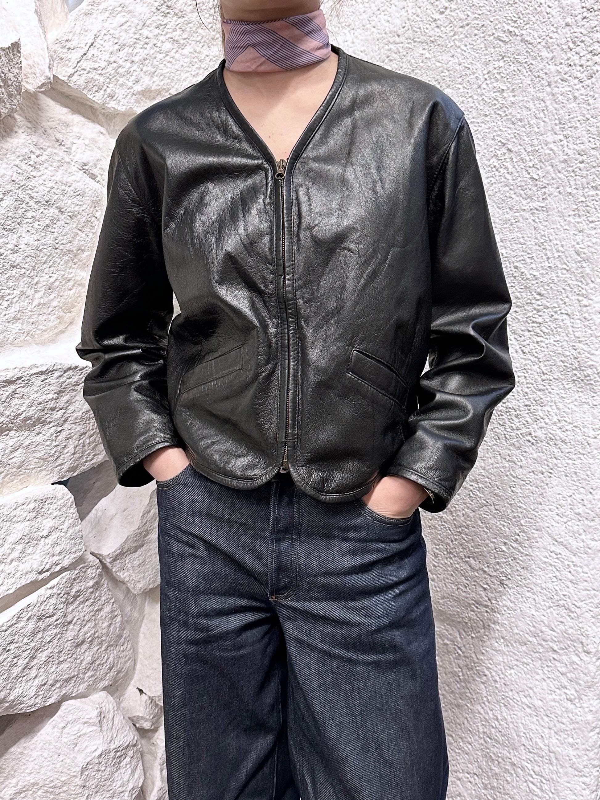 80s Italy lamb leather collarless jacket