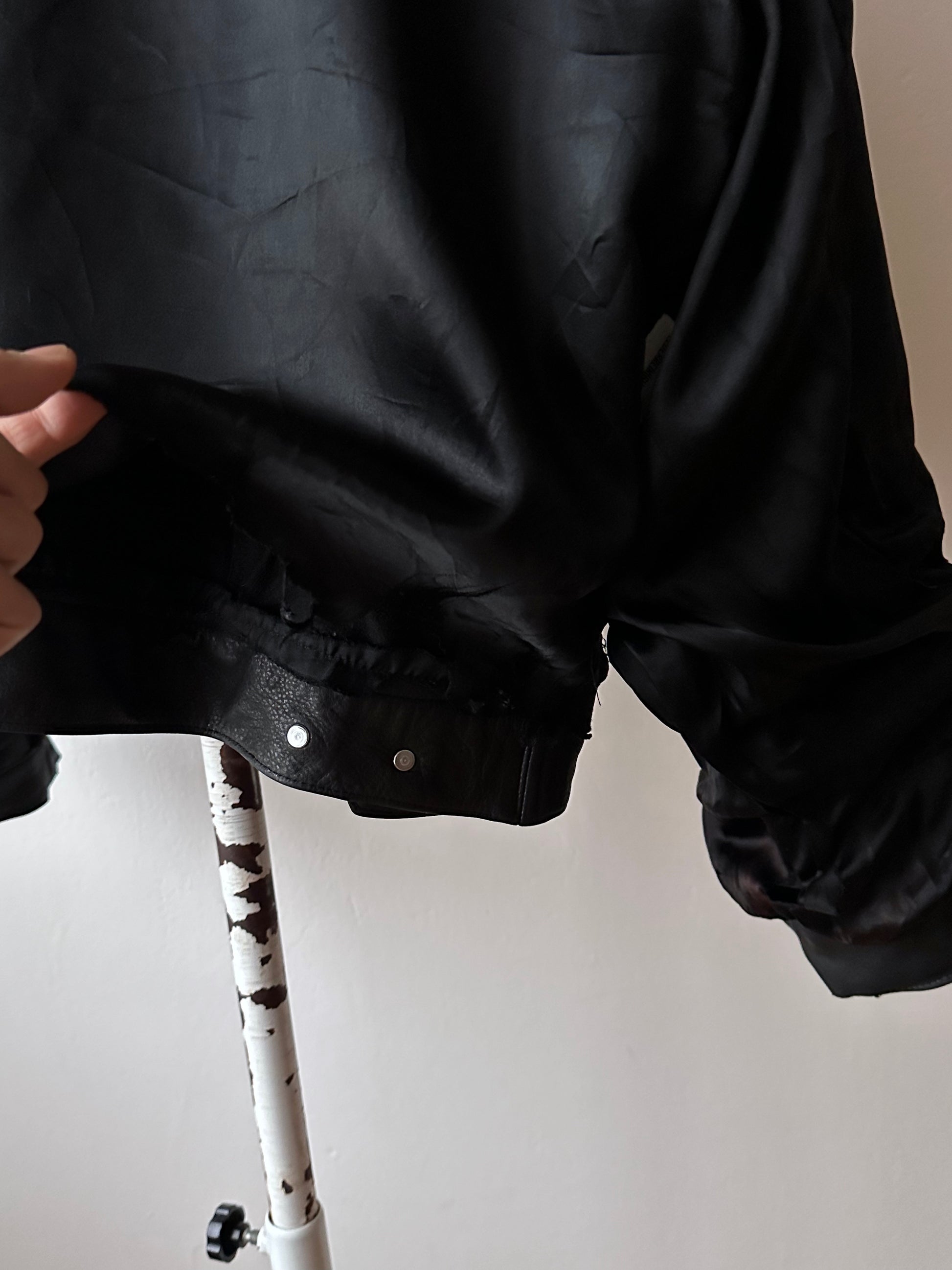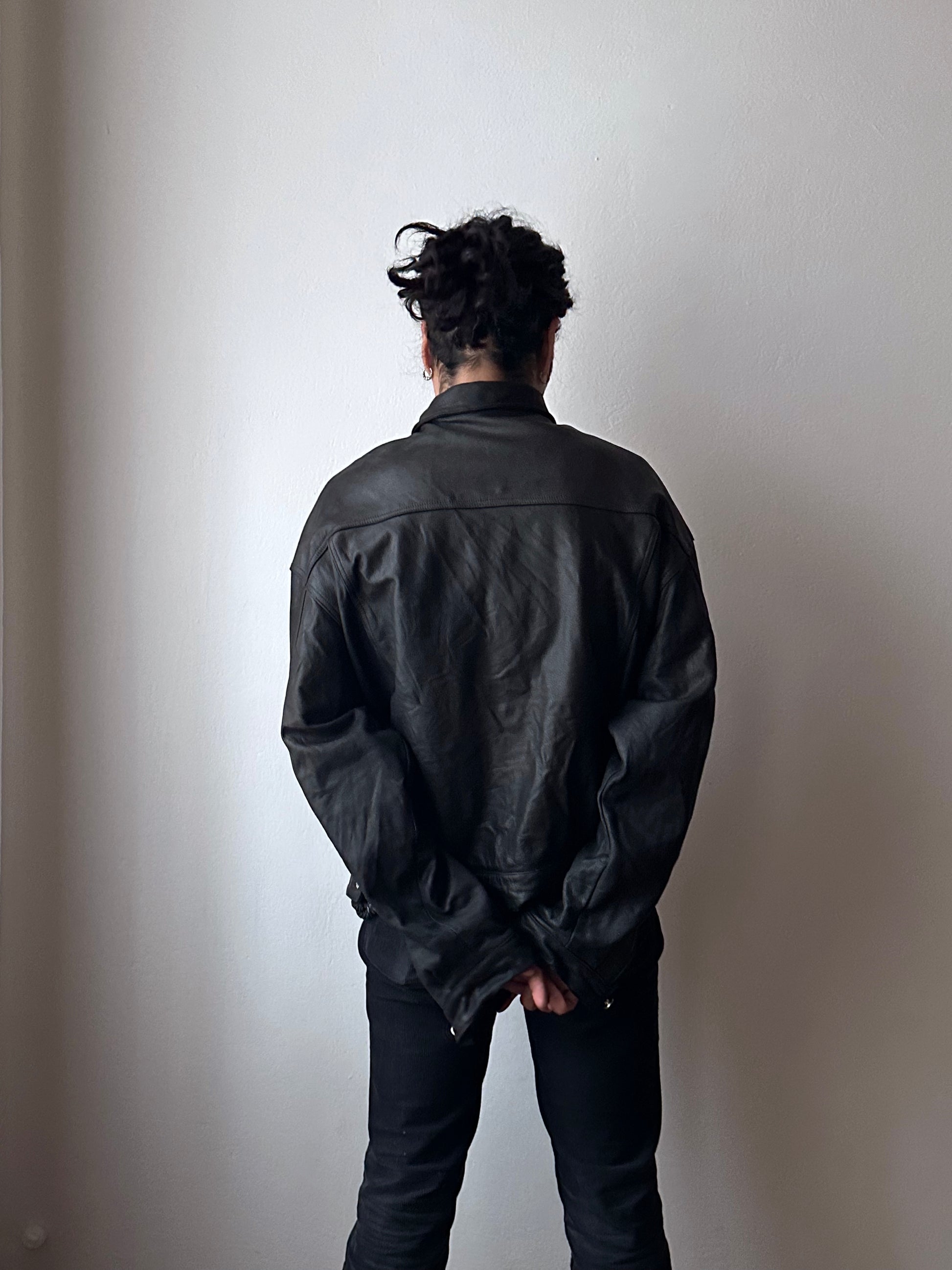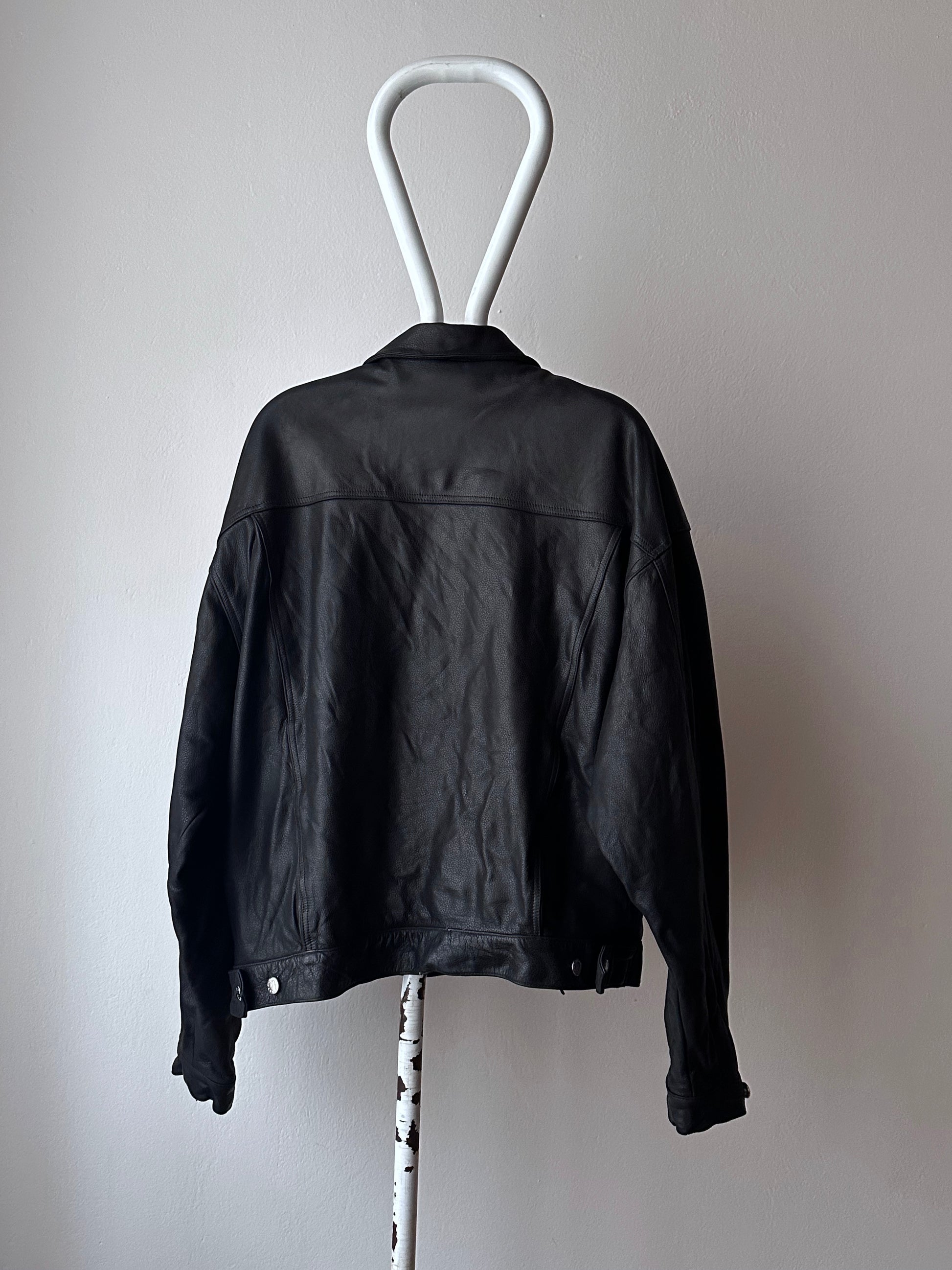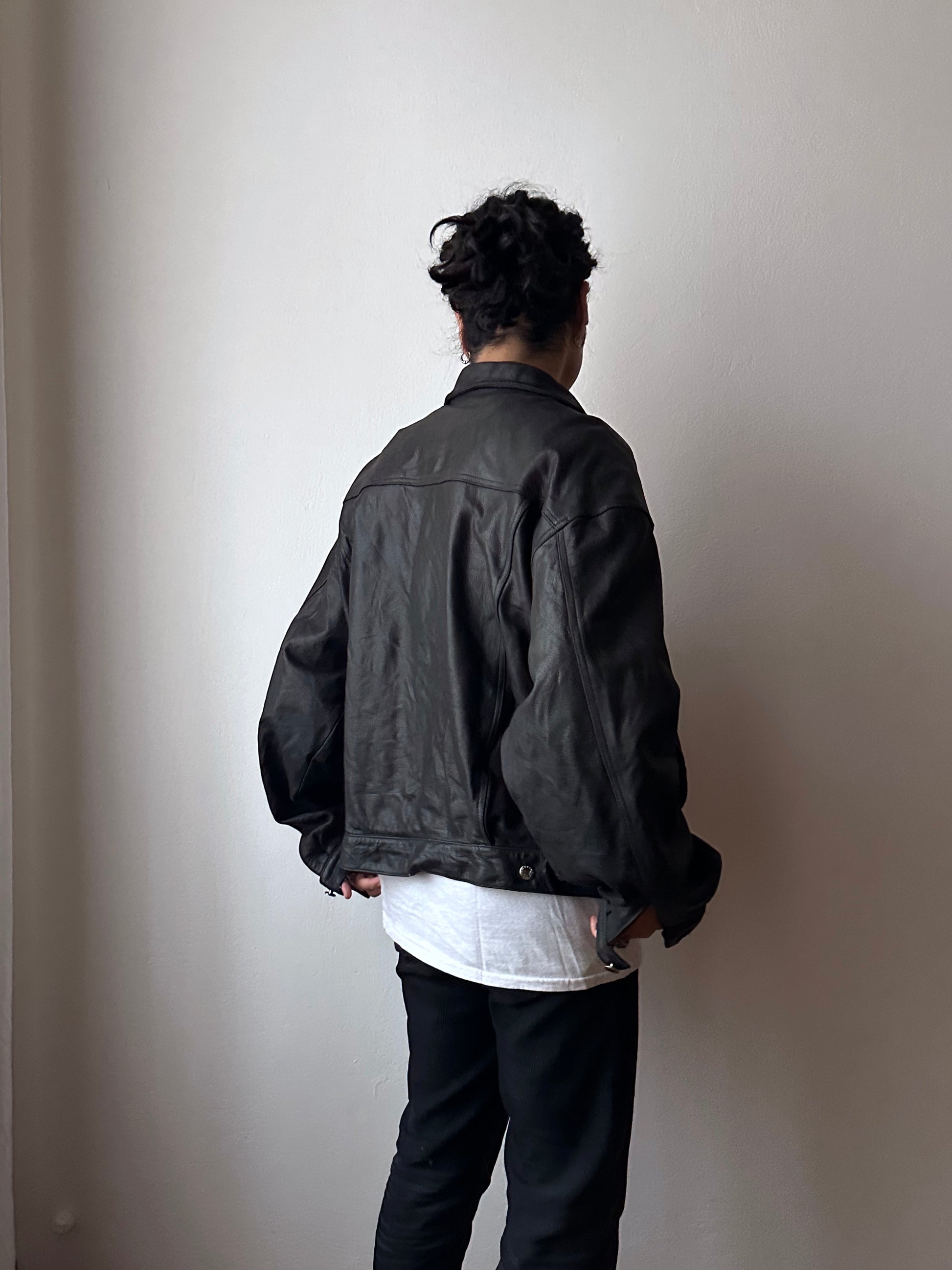 90年代もっちもちレザーのトラッカージャケット。真っ黒。