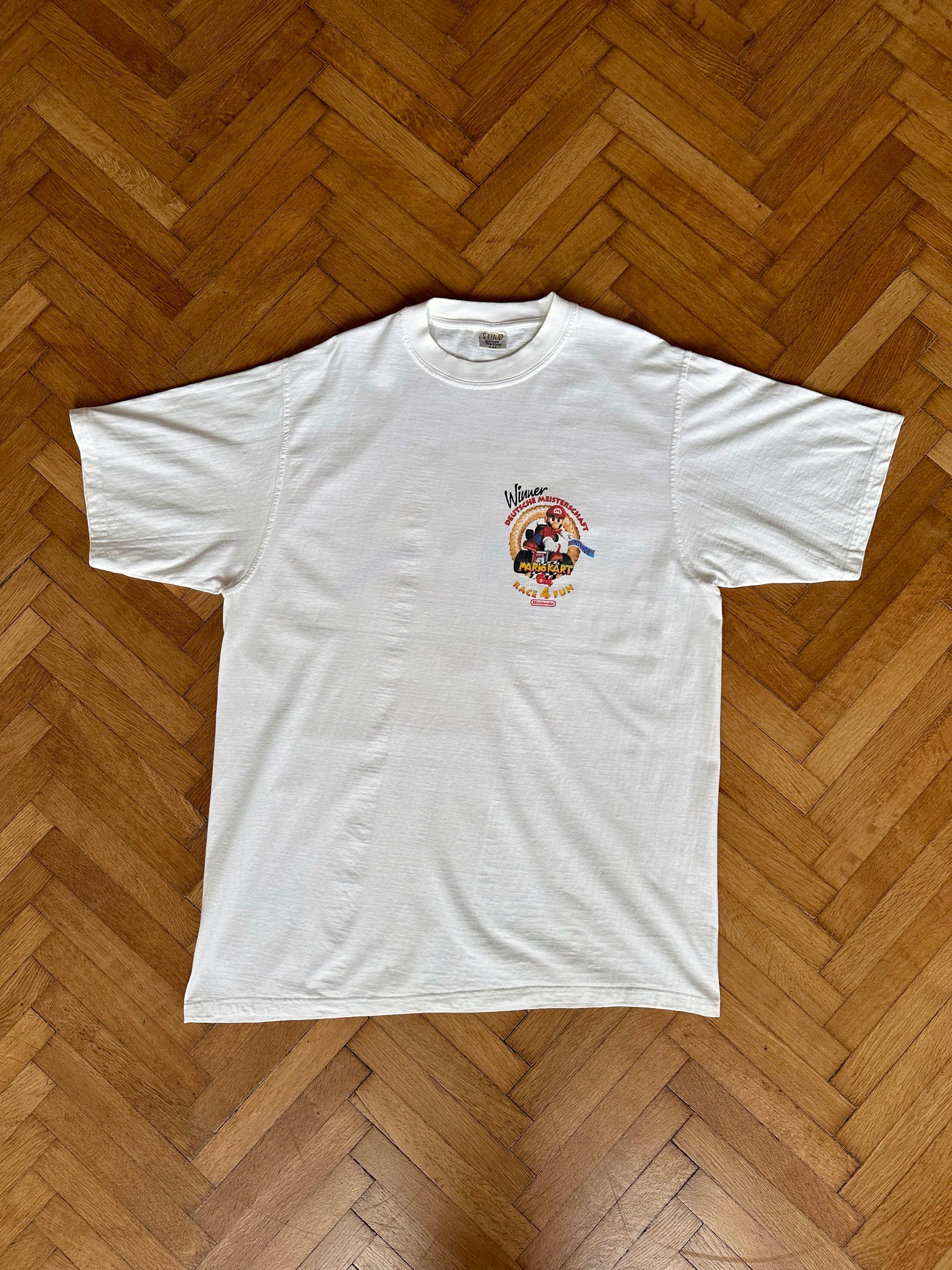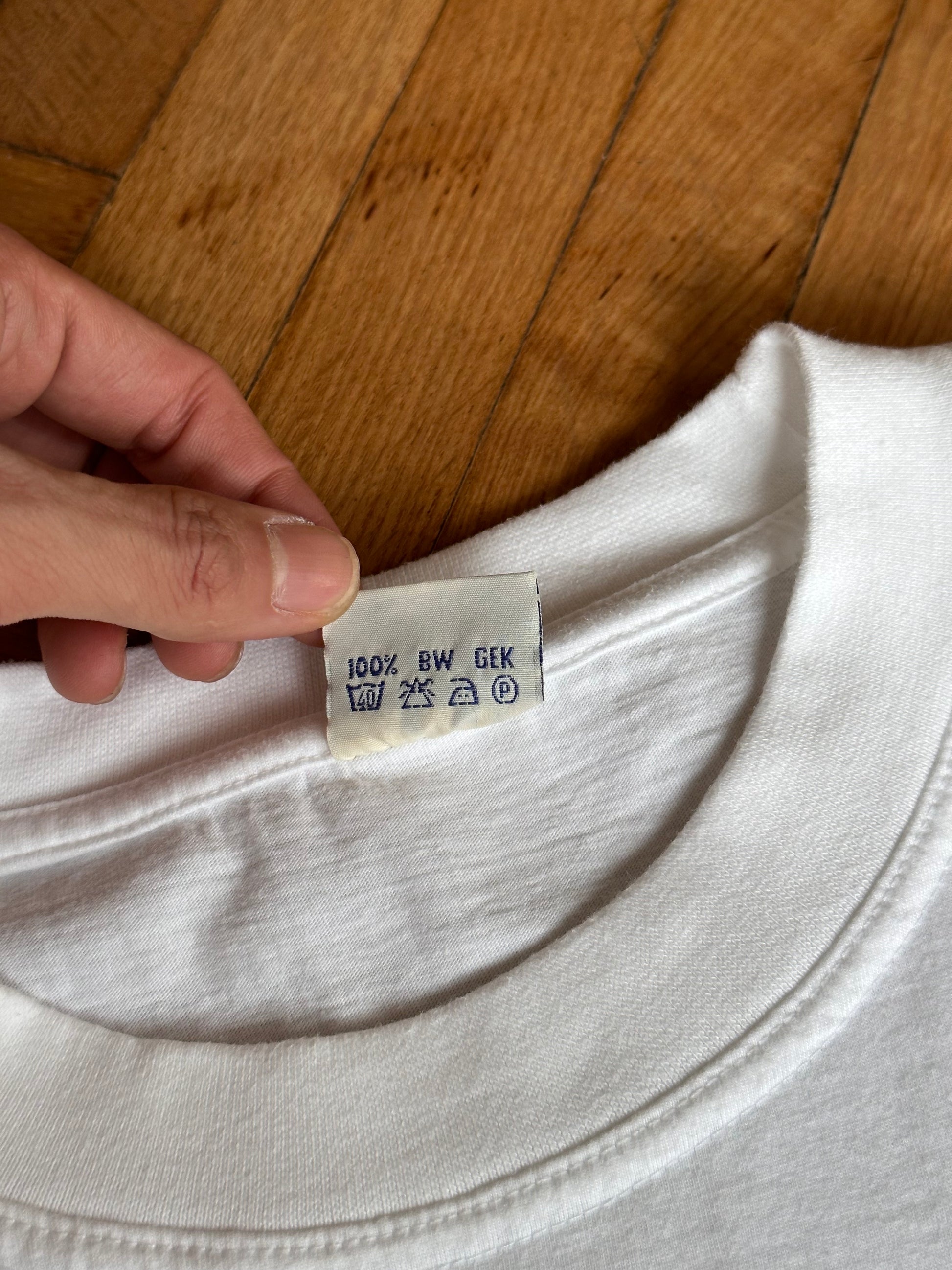 それだけじゃなくて、プリントノリも良いですし、ボディーも90年代の綿100の良いボディ。何が良いって表現が難しいんですが、古いTシャツの質、形はほんまに良いです。病みつきになる。
