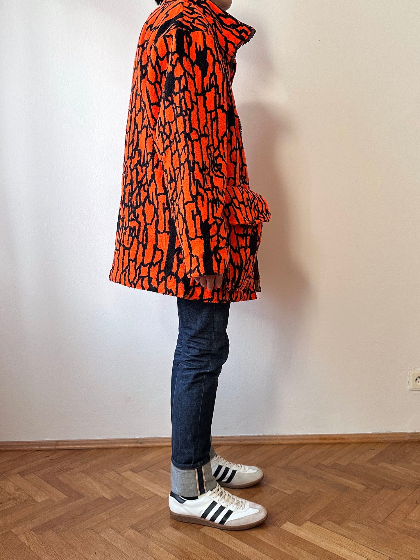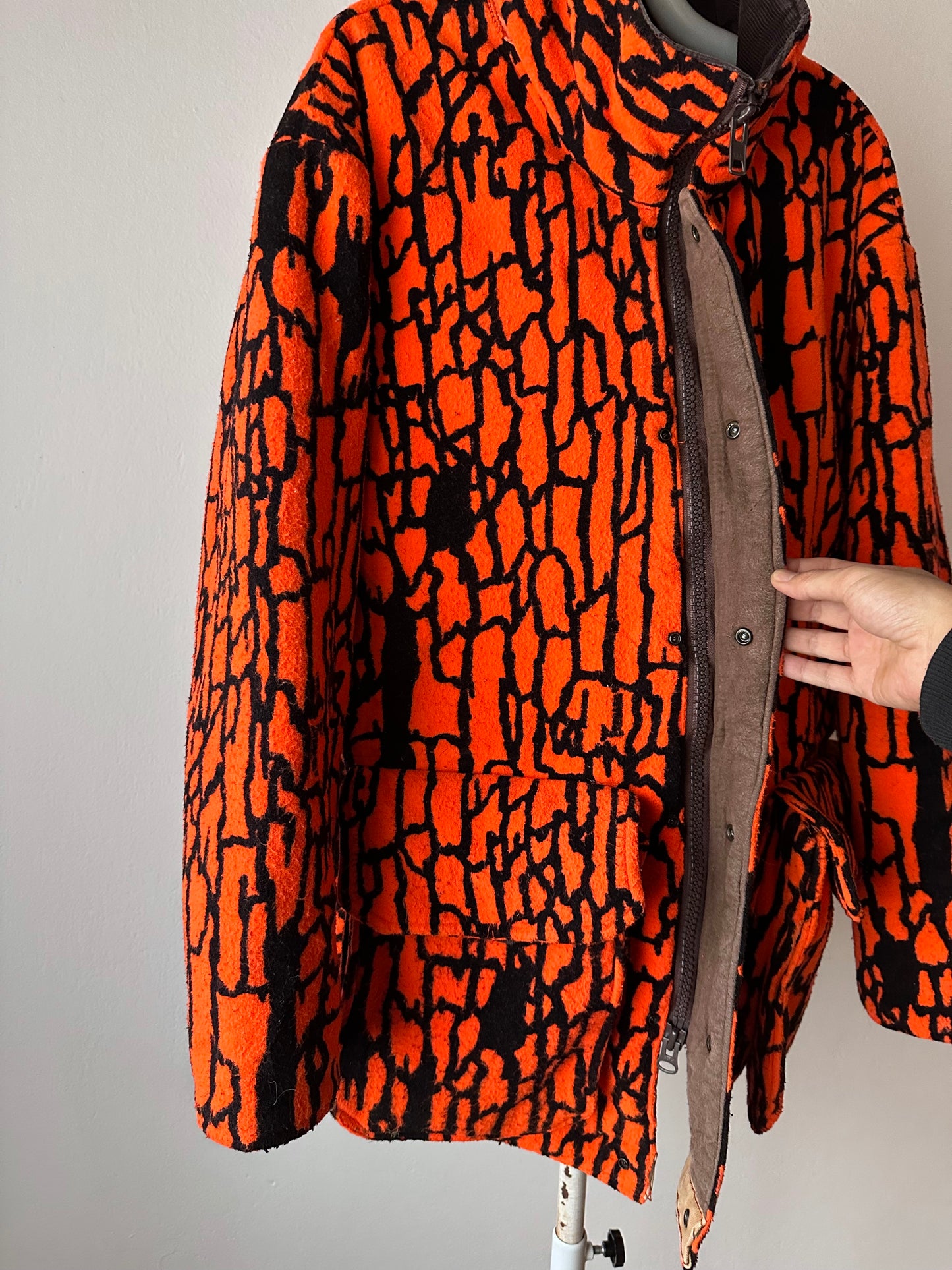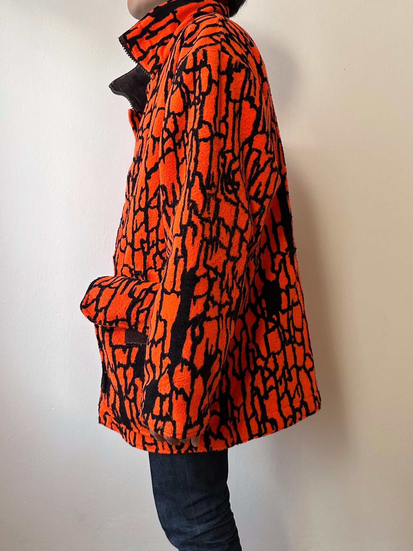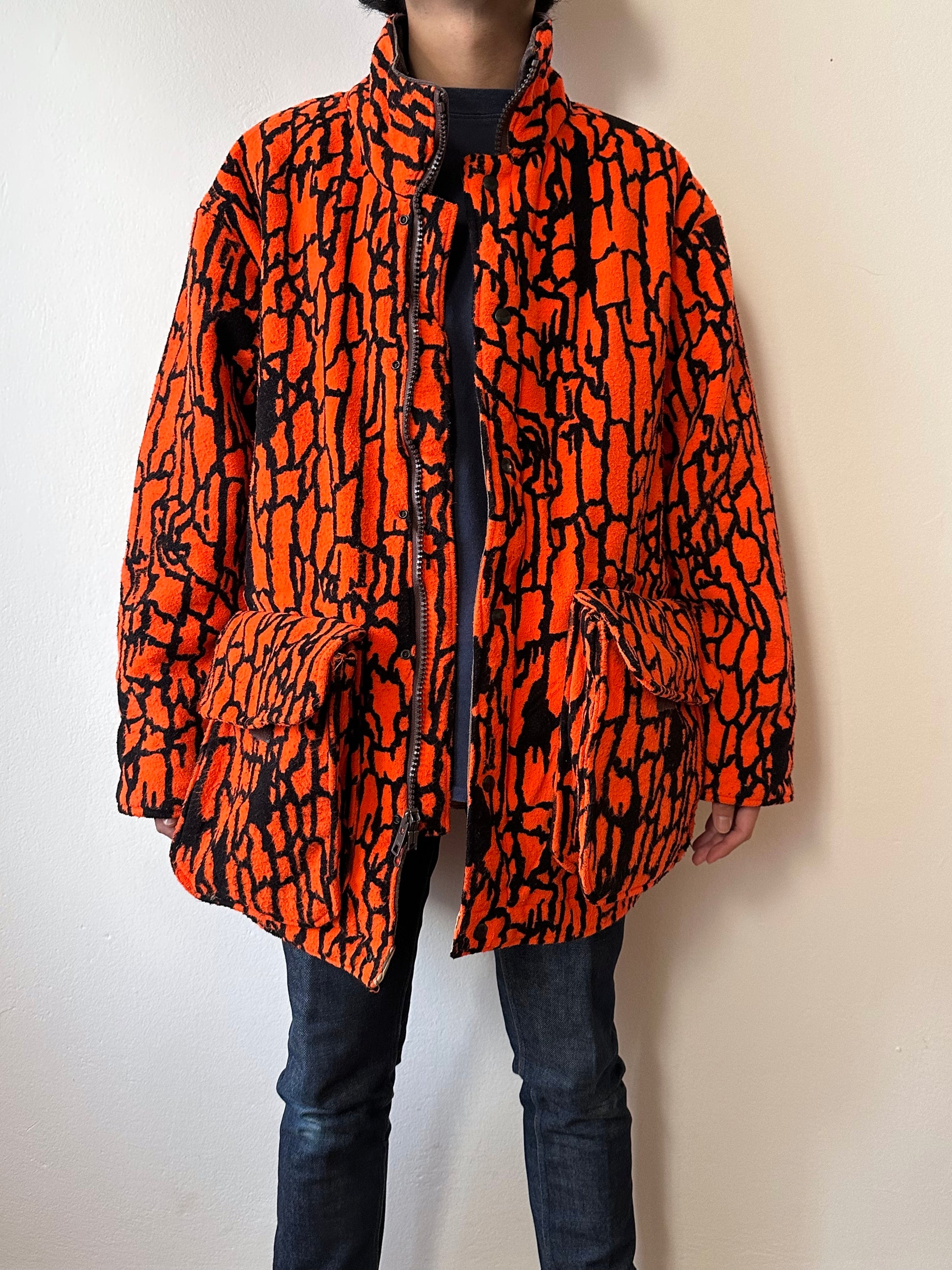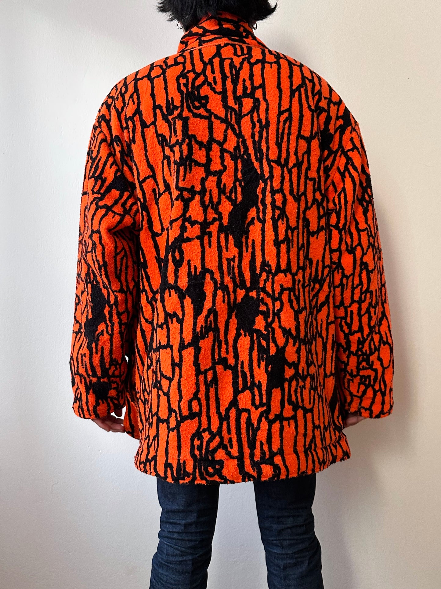 表面はフリース素材に少しウールが混ざったような質感です。若干フワッとしてて可愛いです、この無骨な柄、デザインに対してのこの生地良いですね。