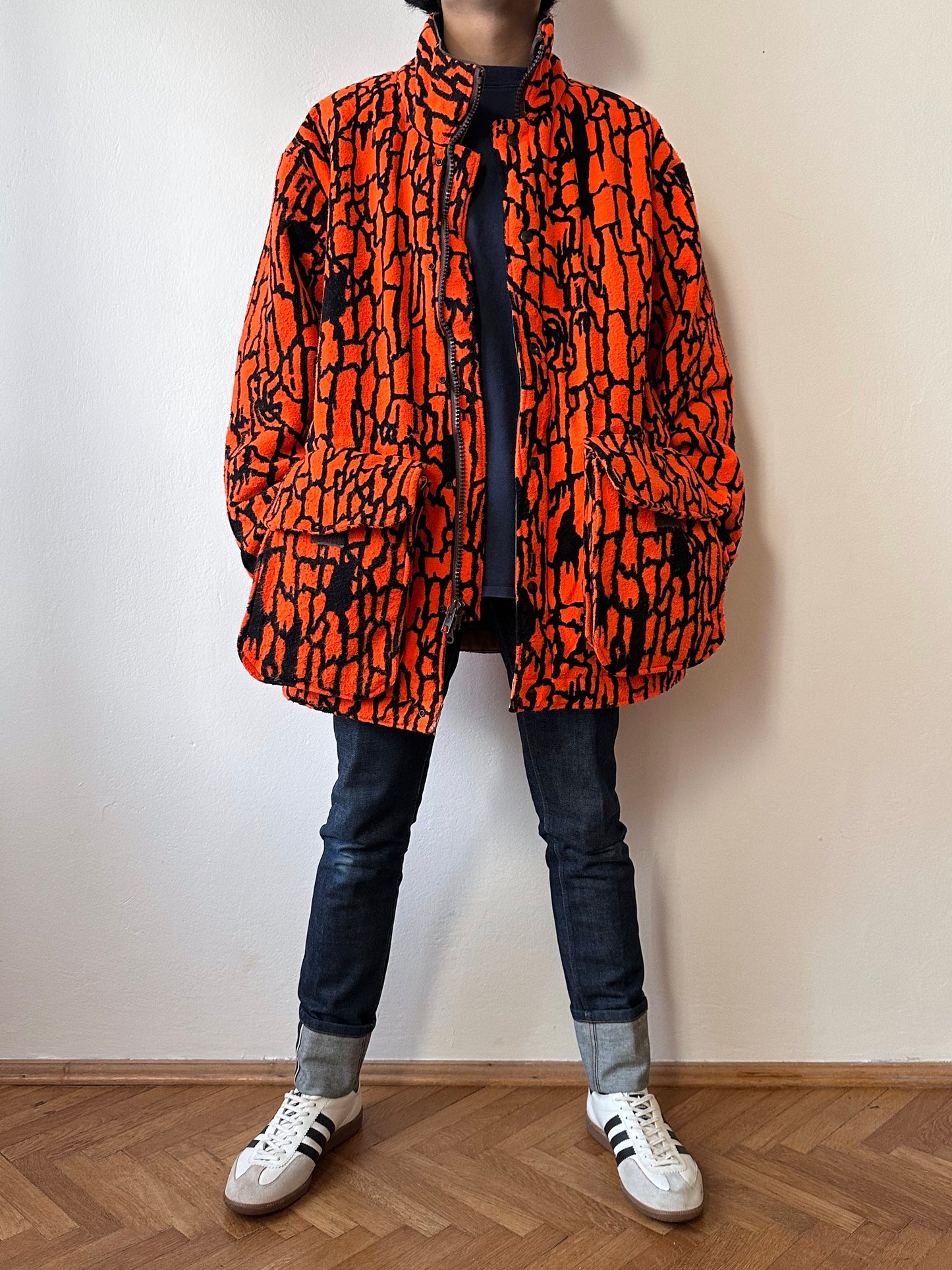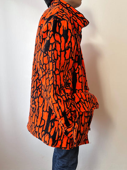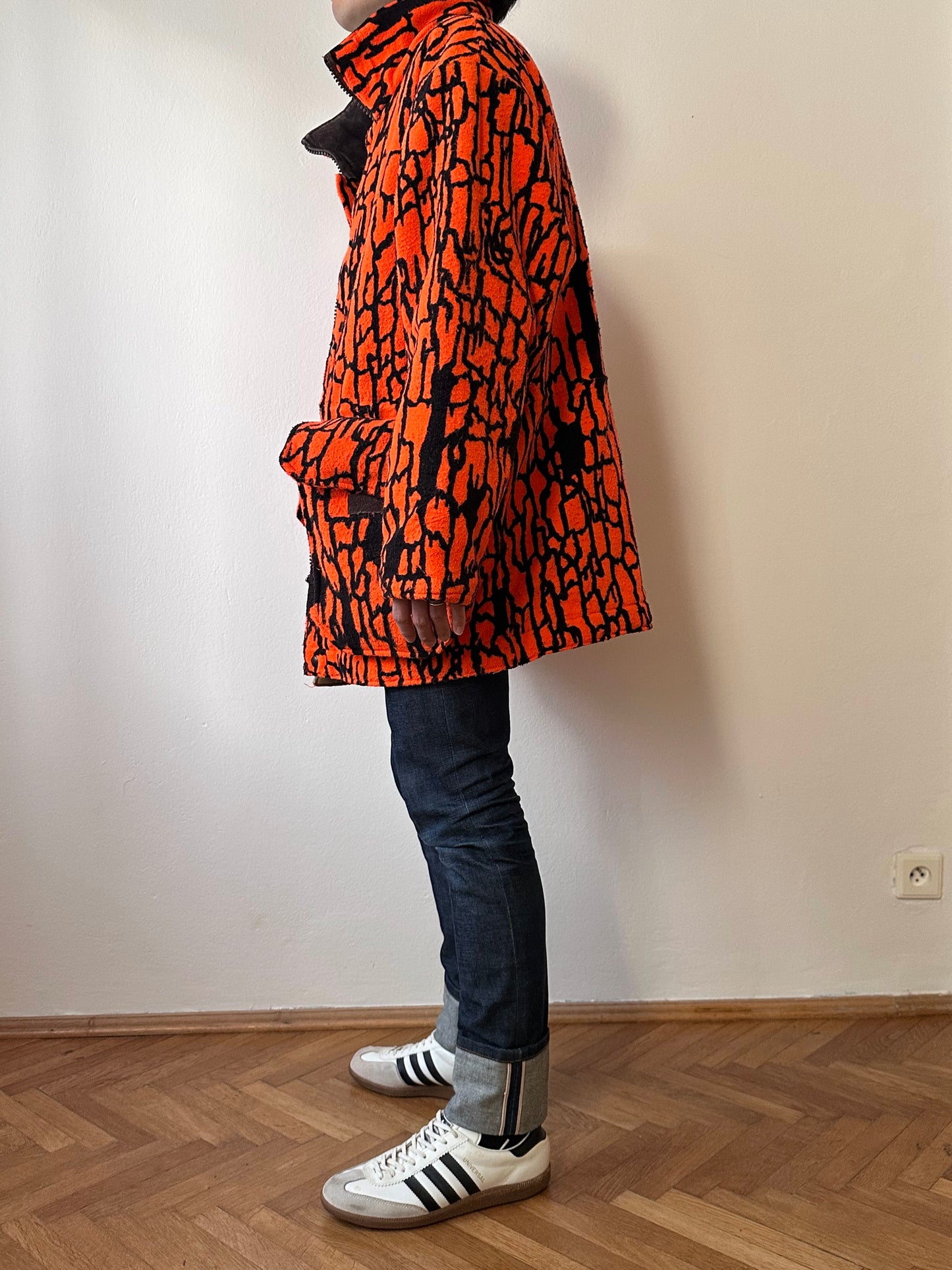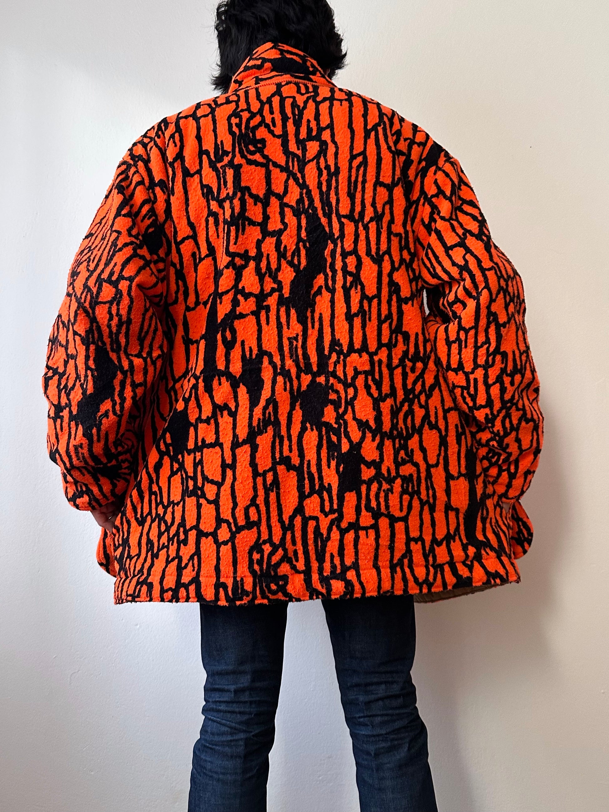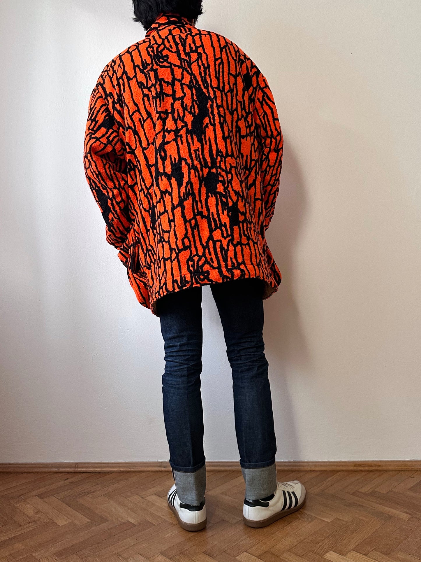 表面はフリース素材に少しウールが混ざったような質感です。若干フワッとしてて可愛いです、この無骨な柄、デザインに対してのこの生地良いですね。