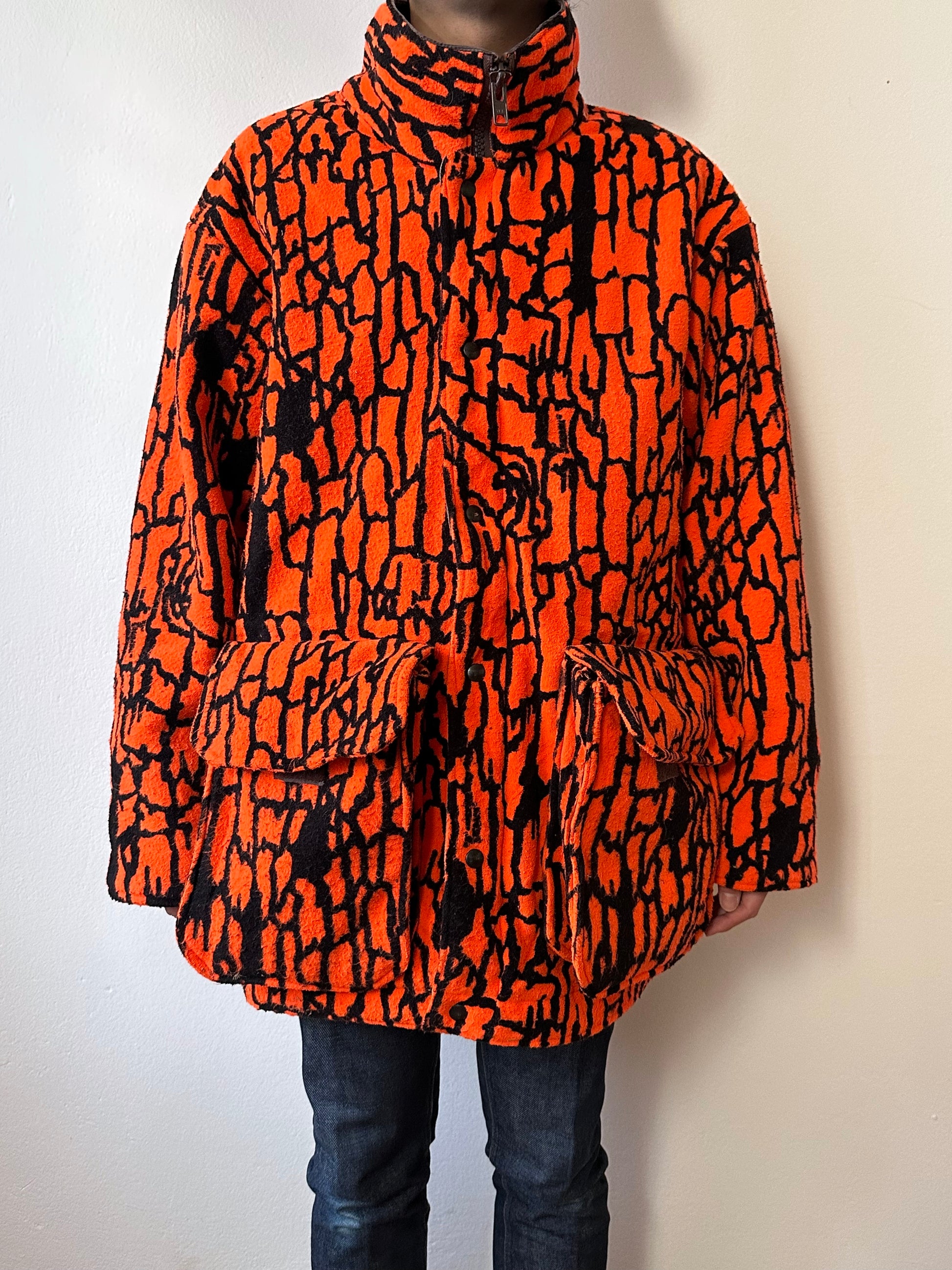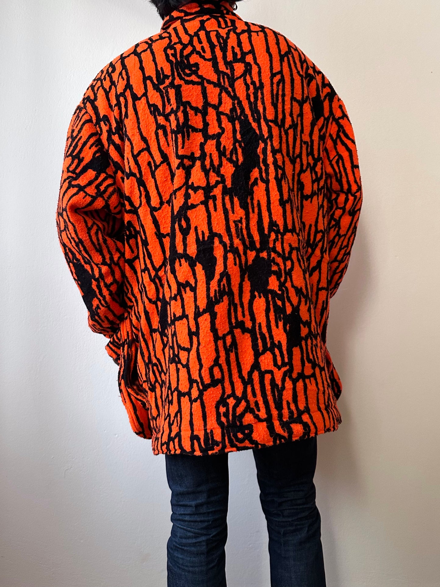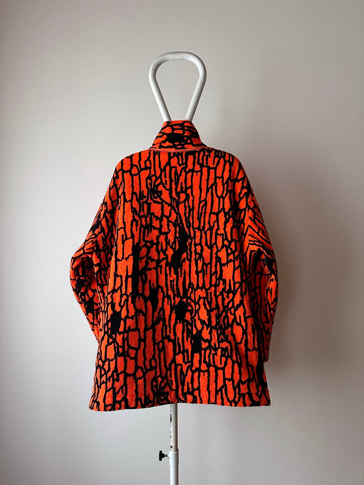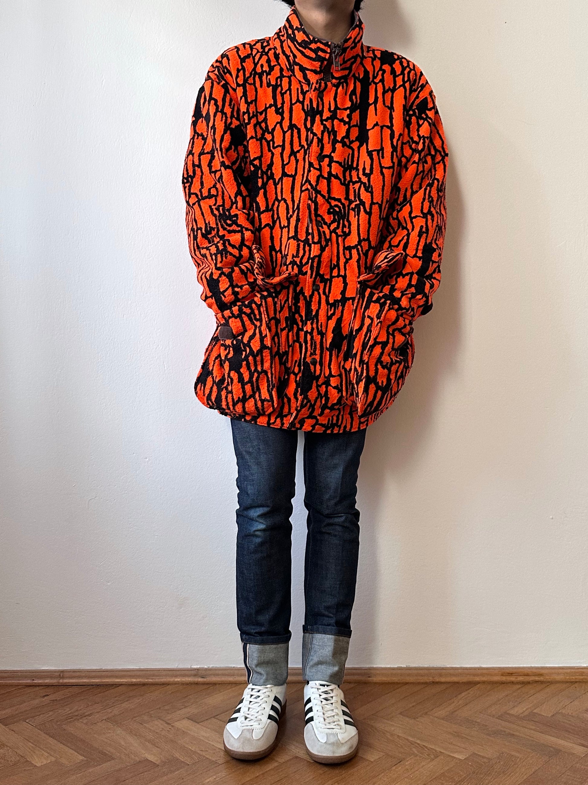 表面はフリース素材に少しウールが混ざったような質感です。若干フワッとしてて可愛いです、この無骨な柄、デザインに対してのこの生地良いですね。