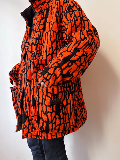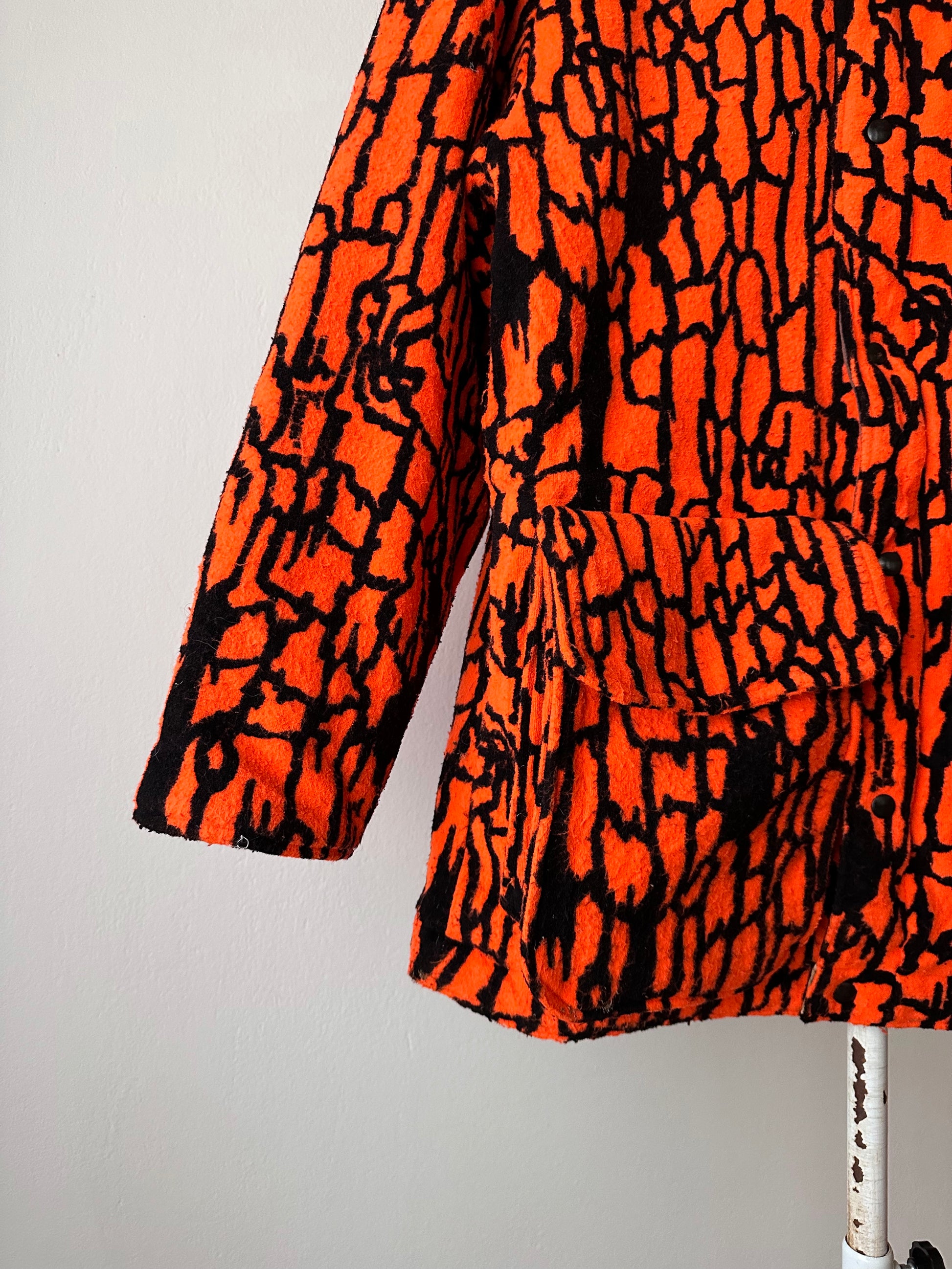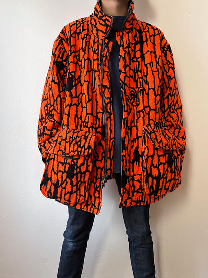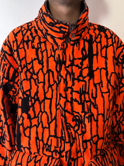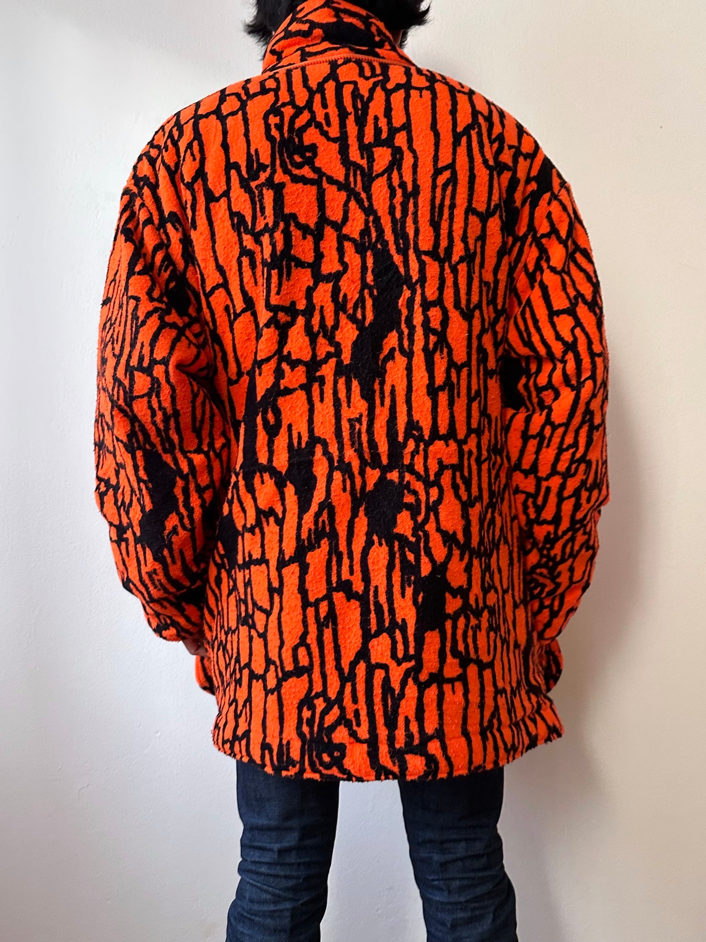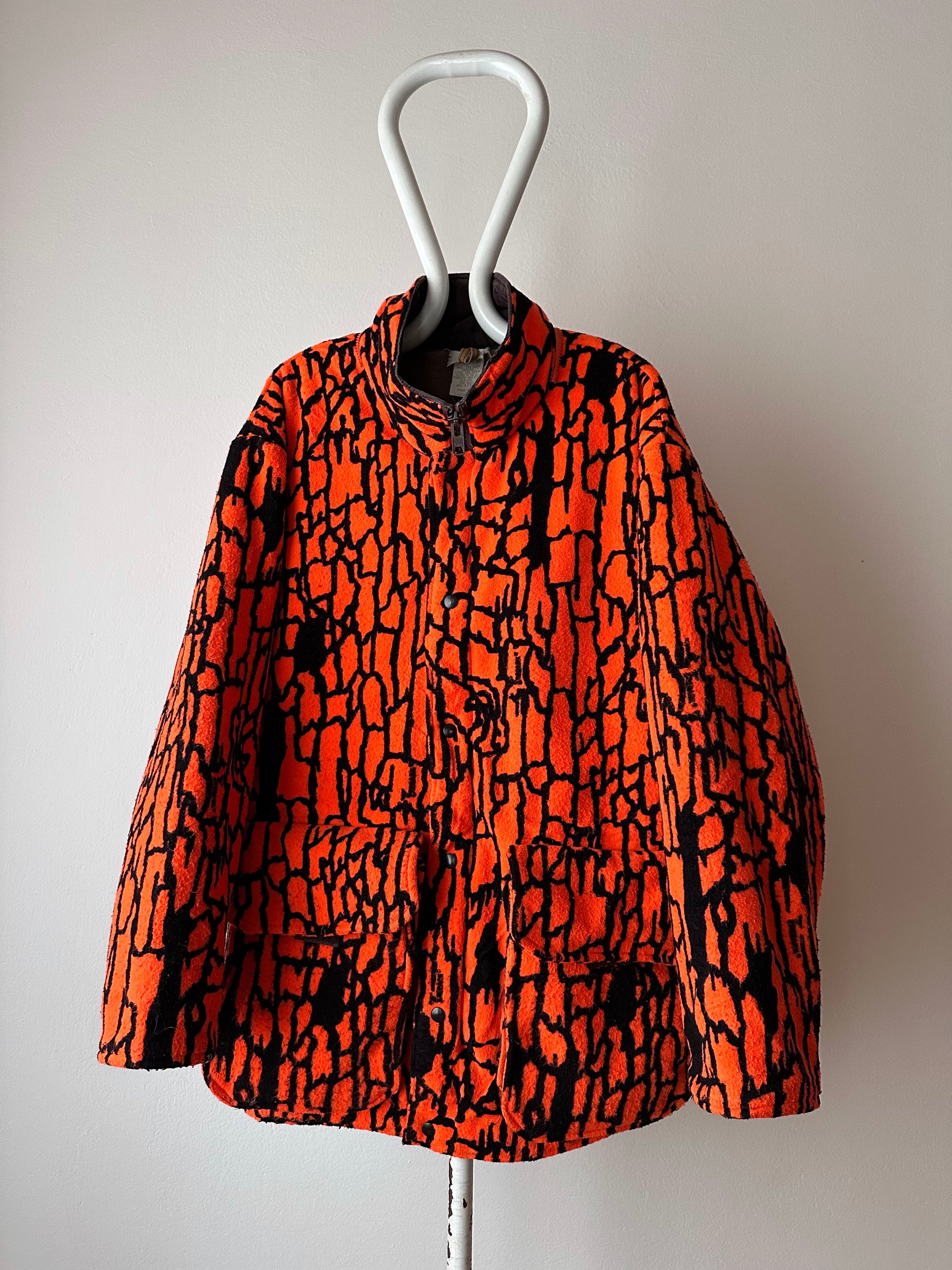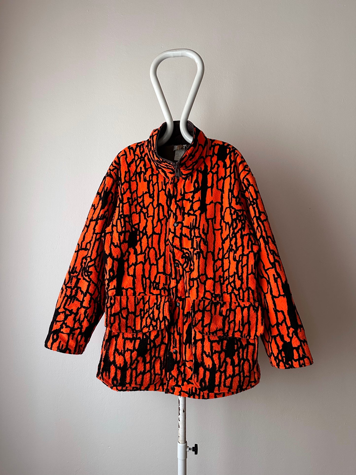 表面はフリース素材に少しウールが混ざったような質感です。若干フワッとしてて可愛いです、この無骨な柄、デザインに対してのこの生地良いですね。