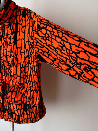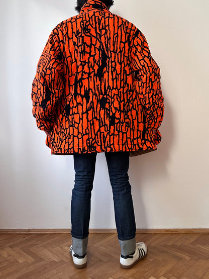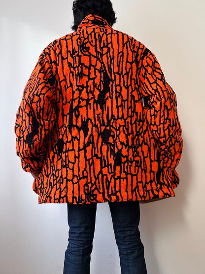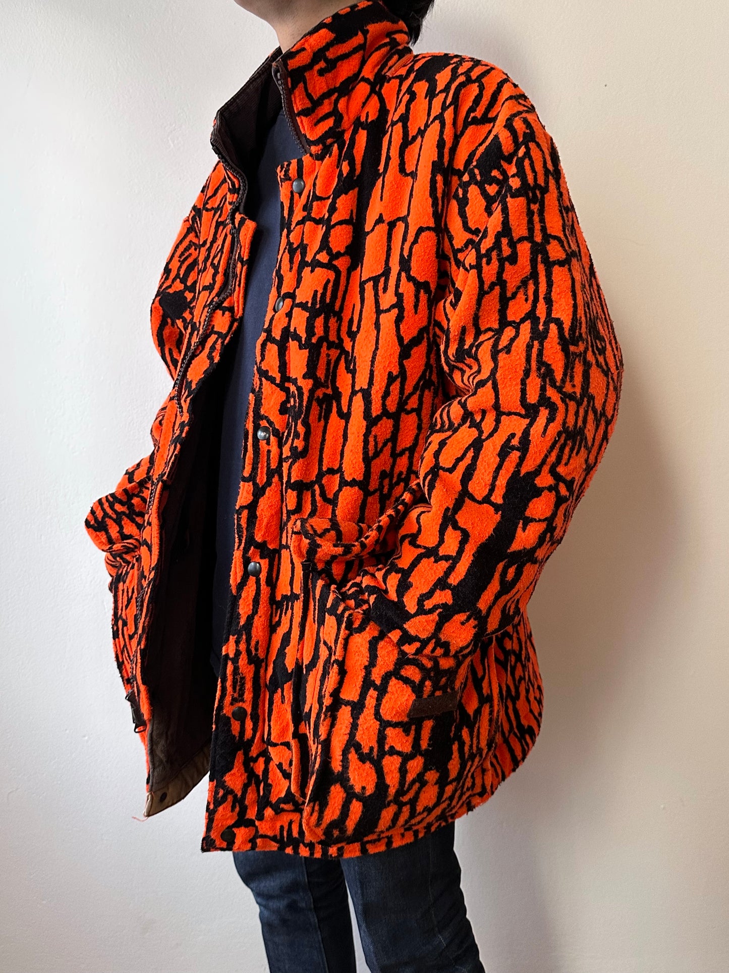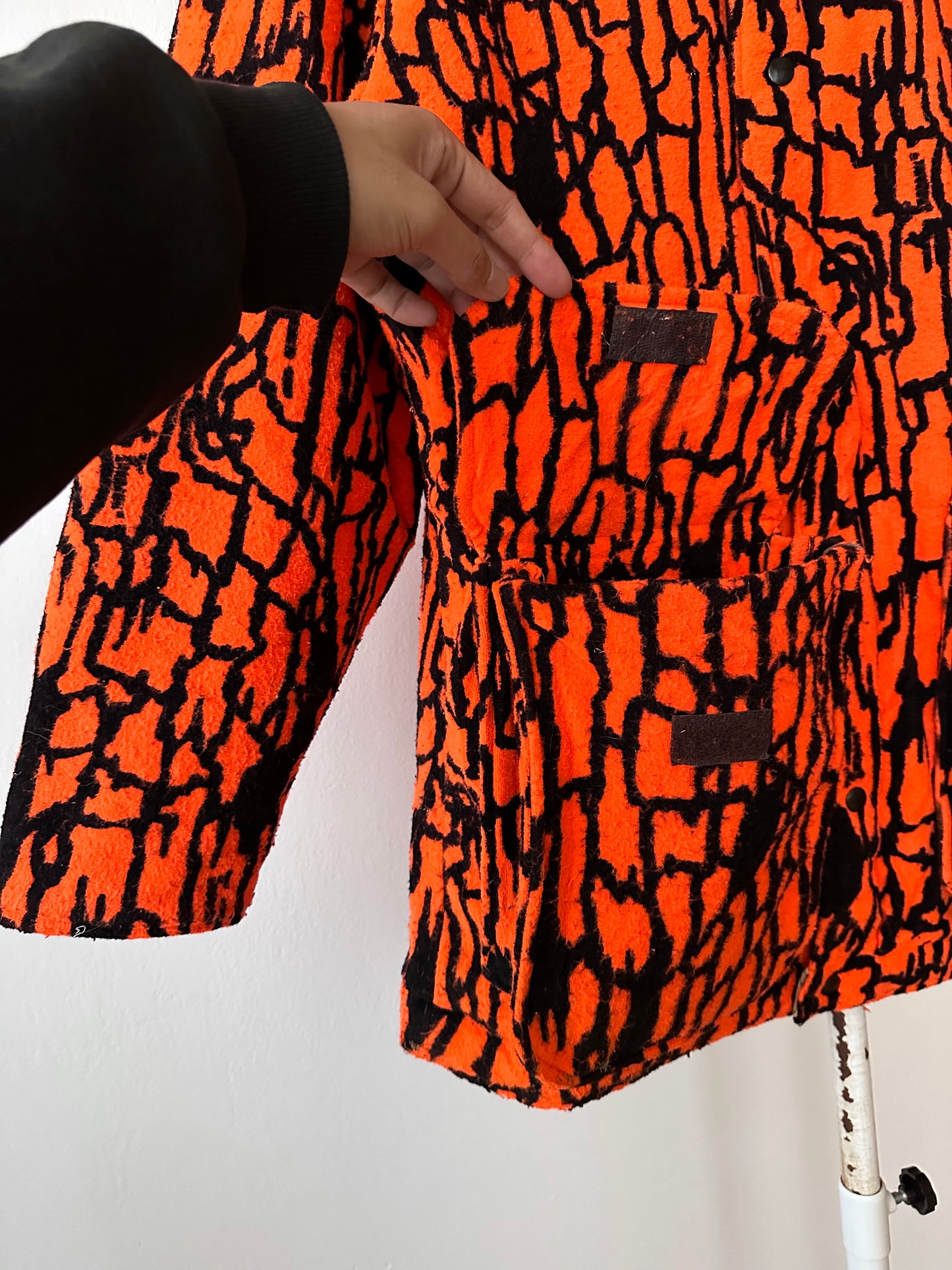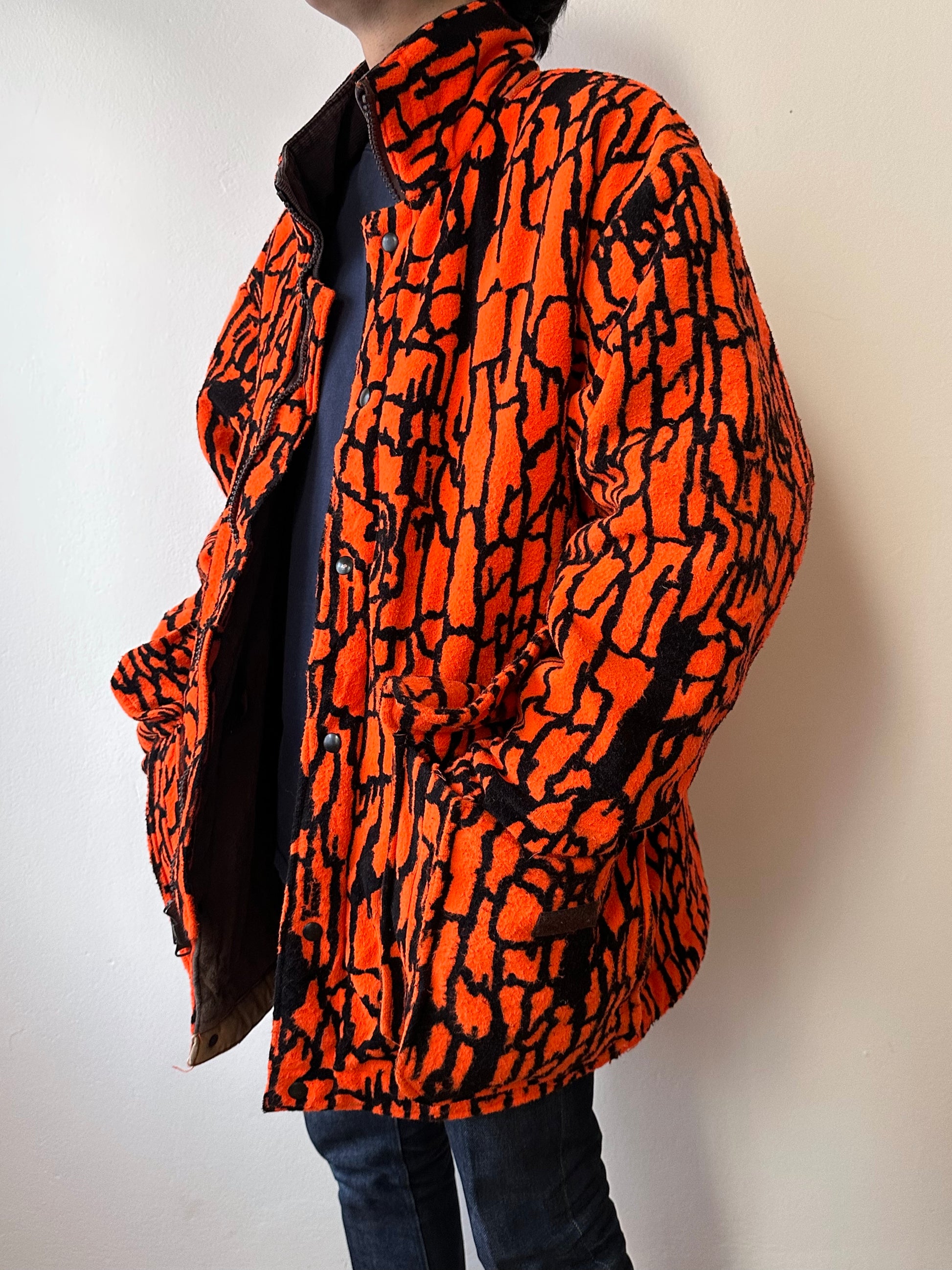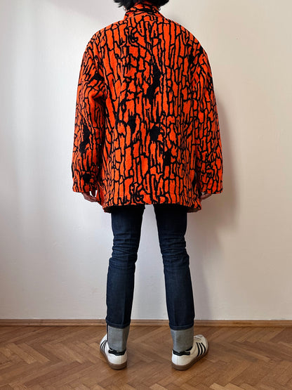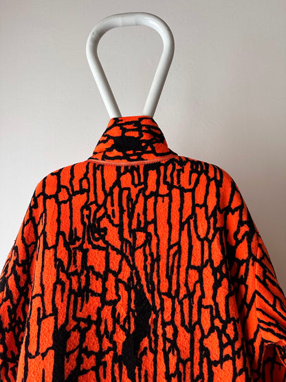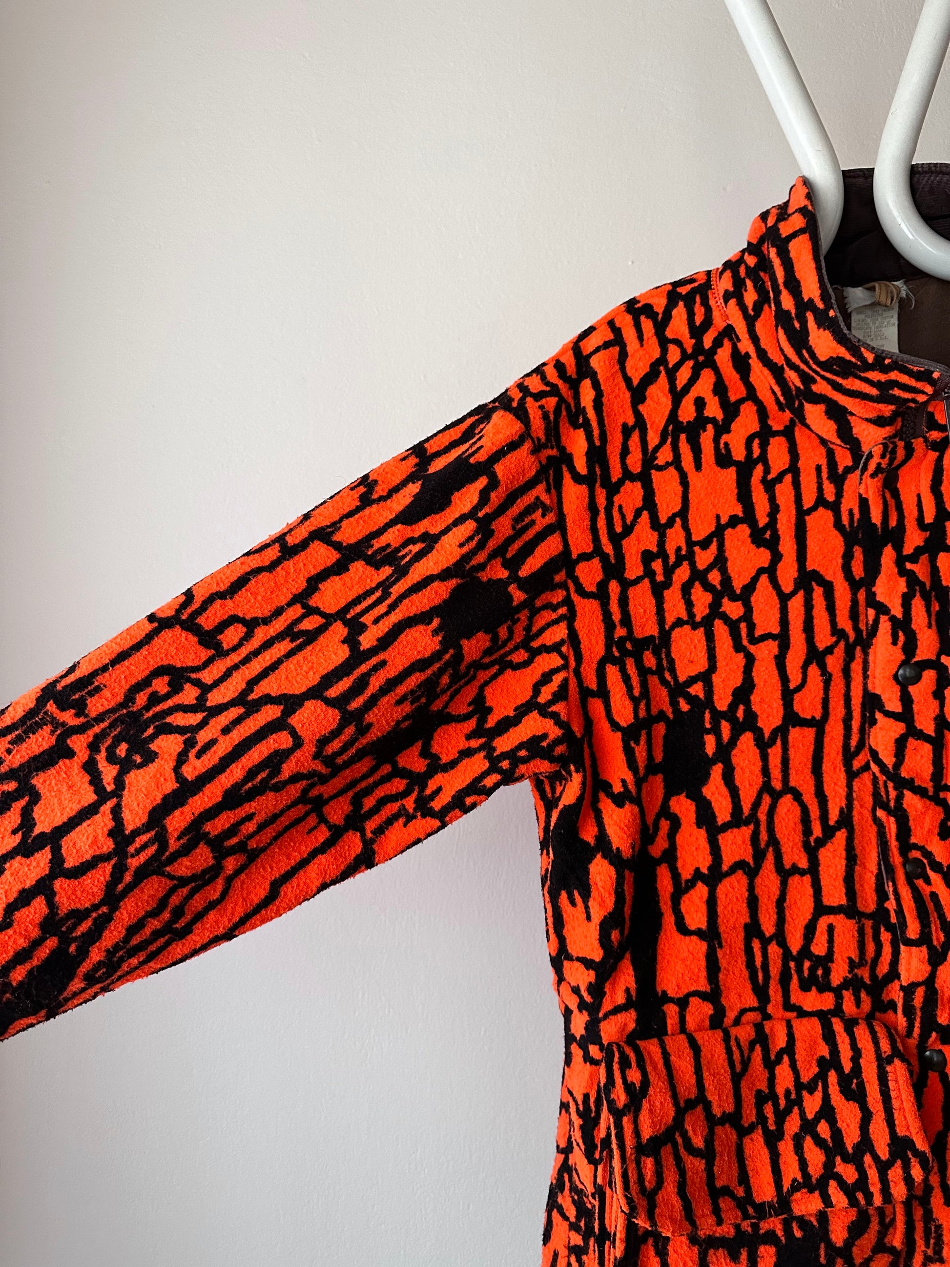 表面はフリース素材に少しウールが混ざったような質感です。若干フワッとしてて可愛いです、この無骨な柄、デザインに対してのこの生地良いですね。