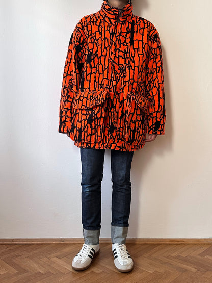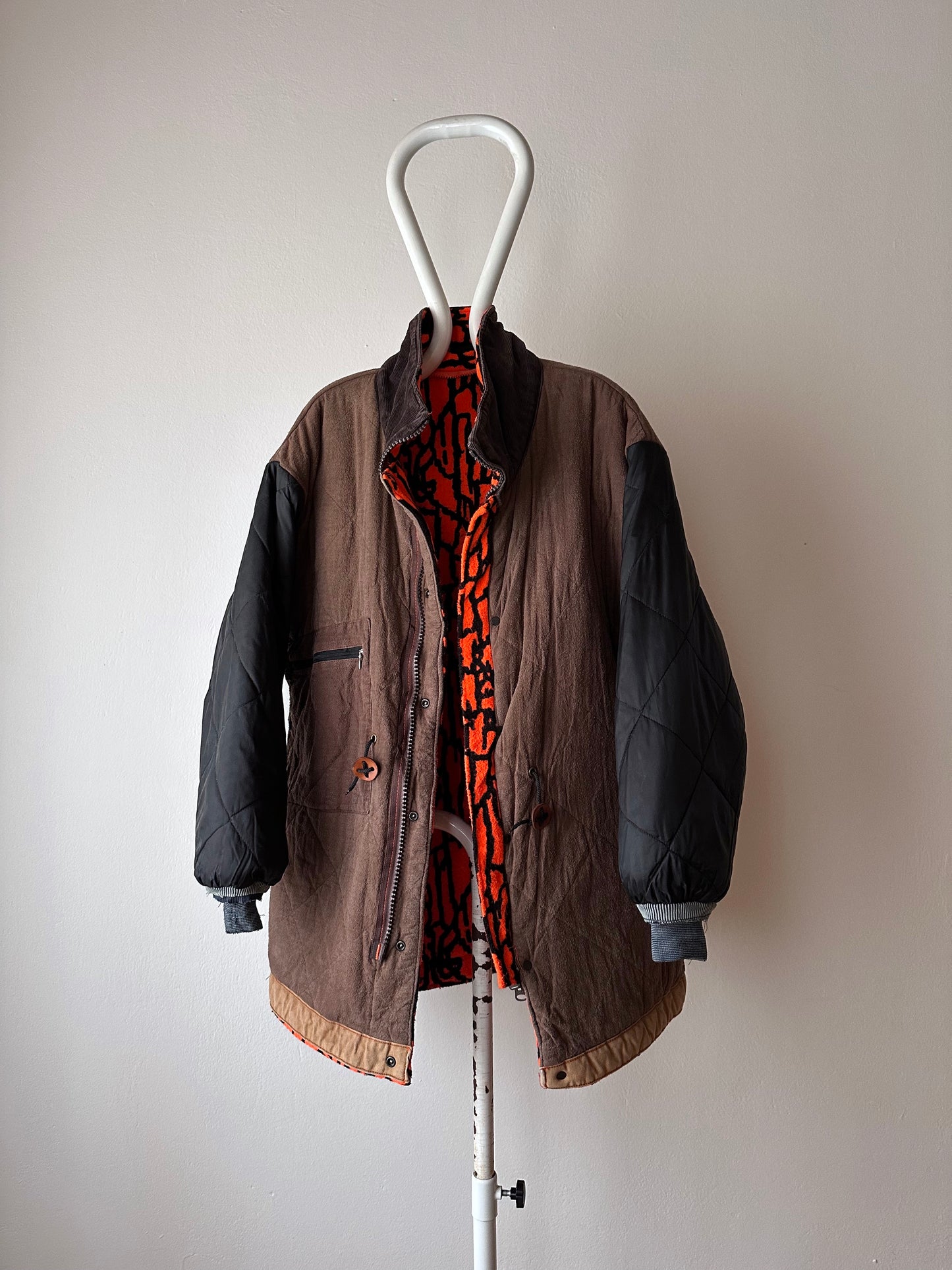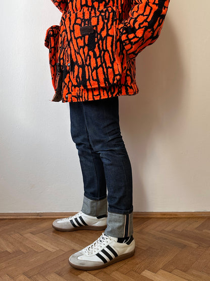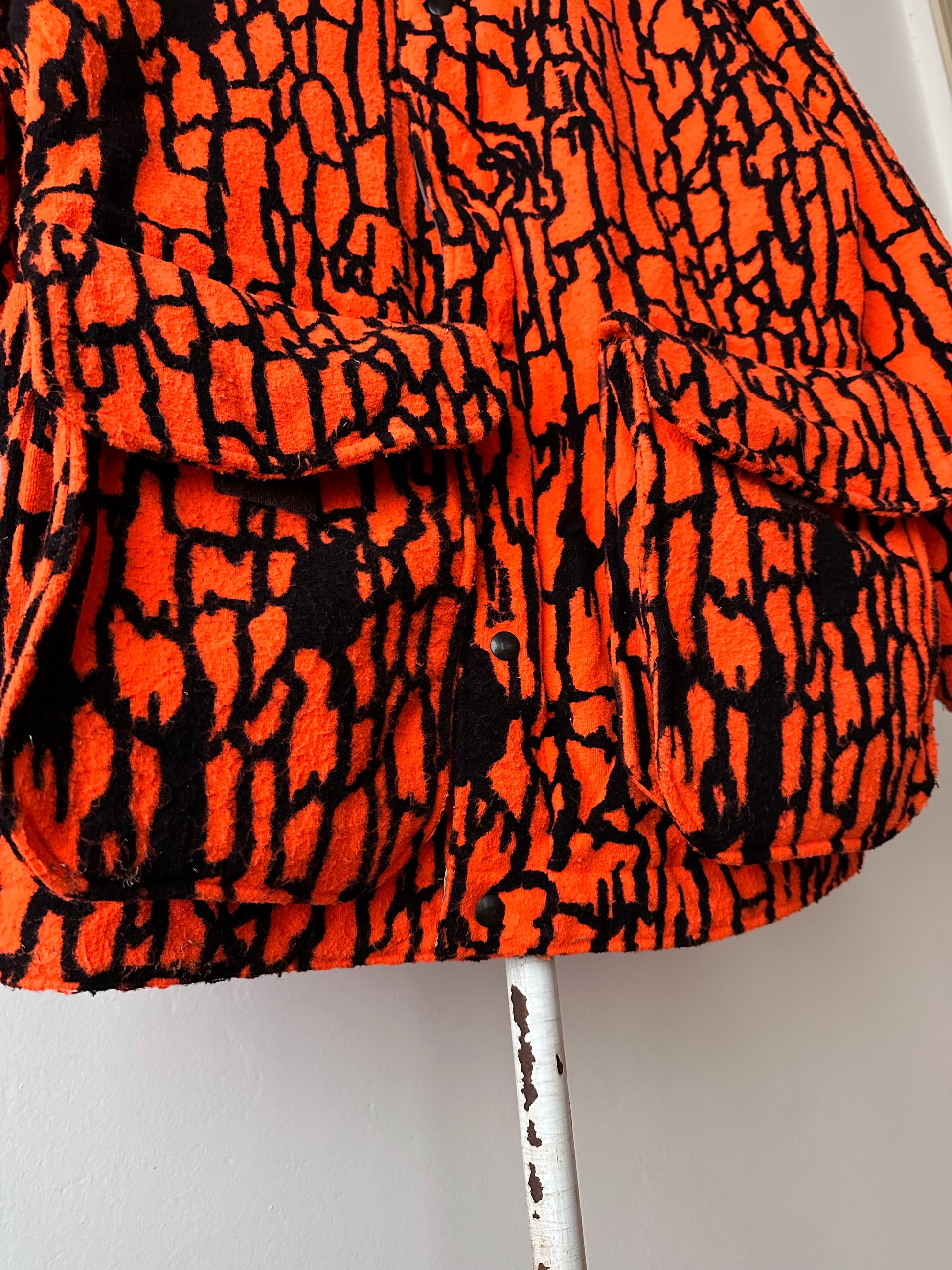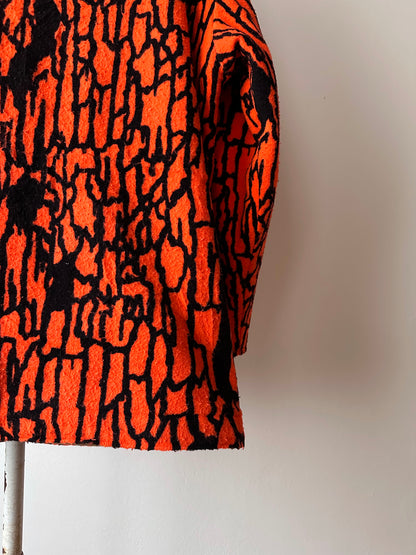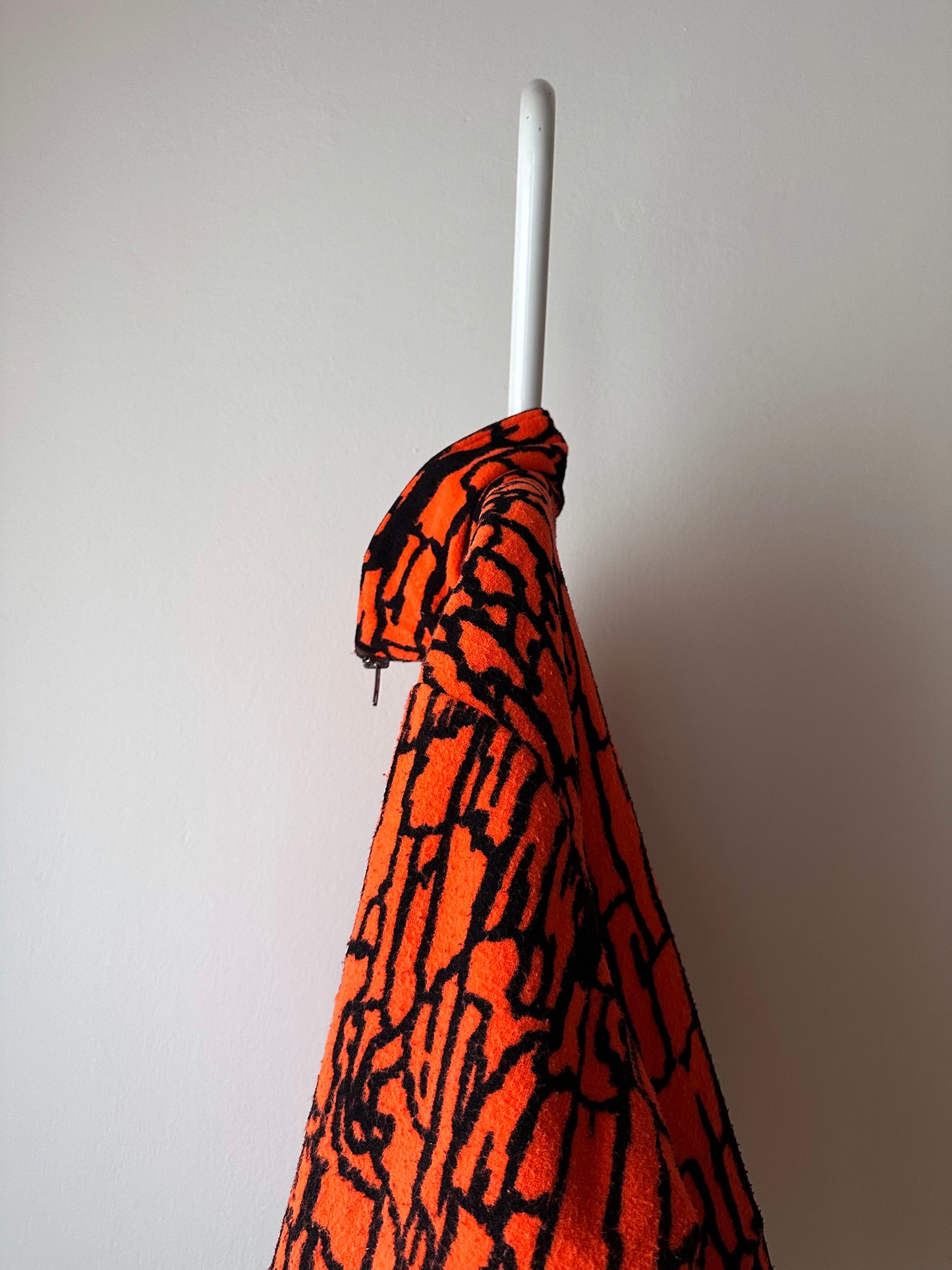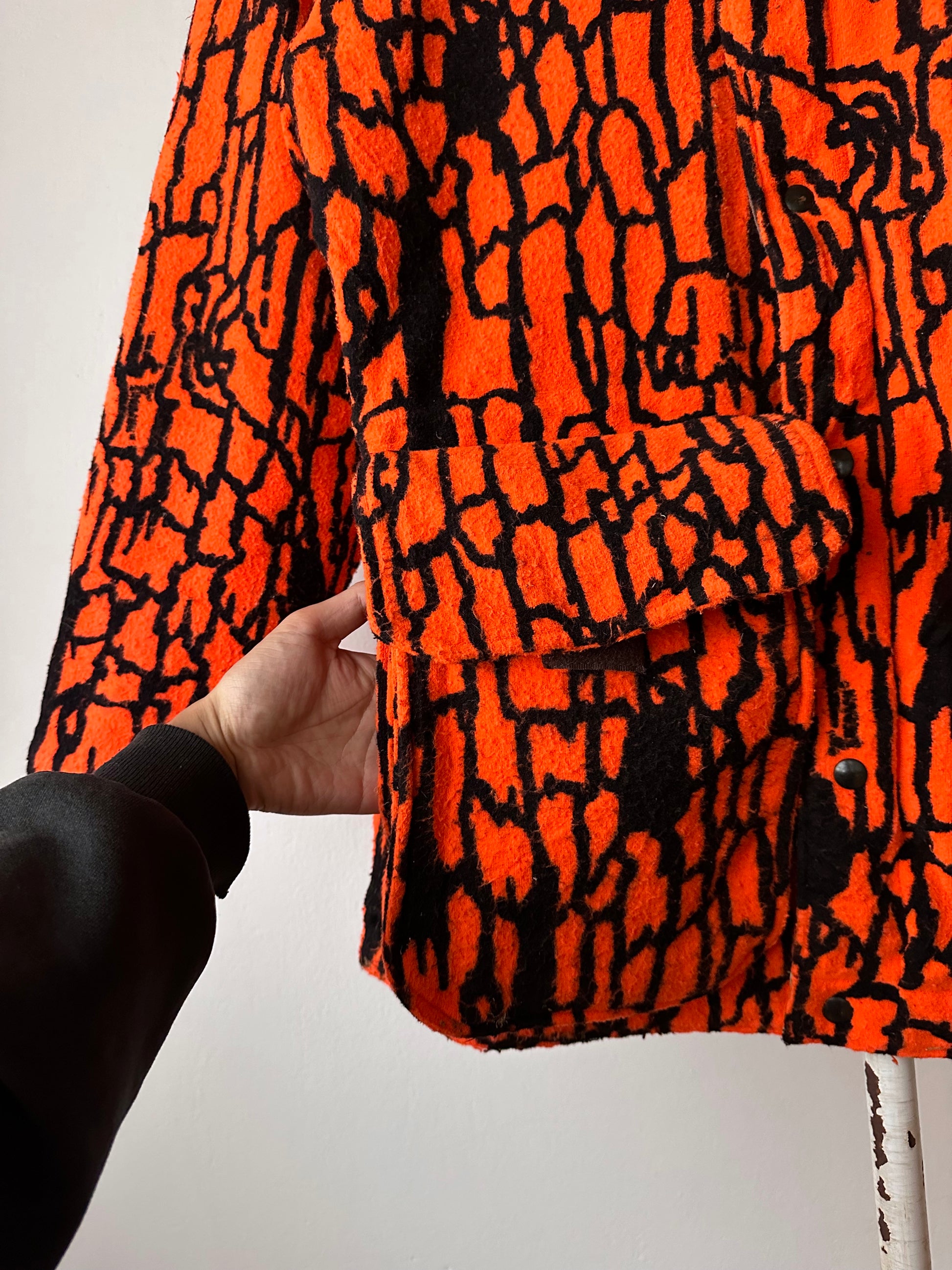 表面はフリース素材に少しウールが混ざったような質感です。若干フワッとしてて可愛いです、この無骨な柄、デザインに対してのこの生地良いですね。
