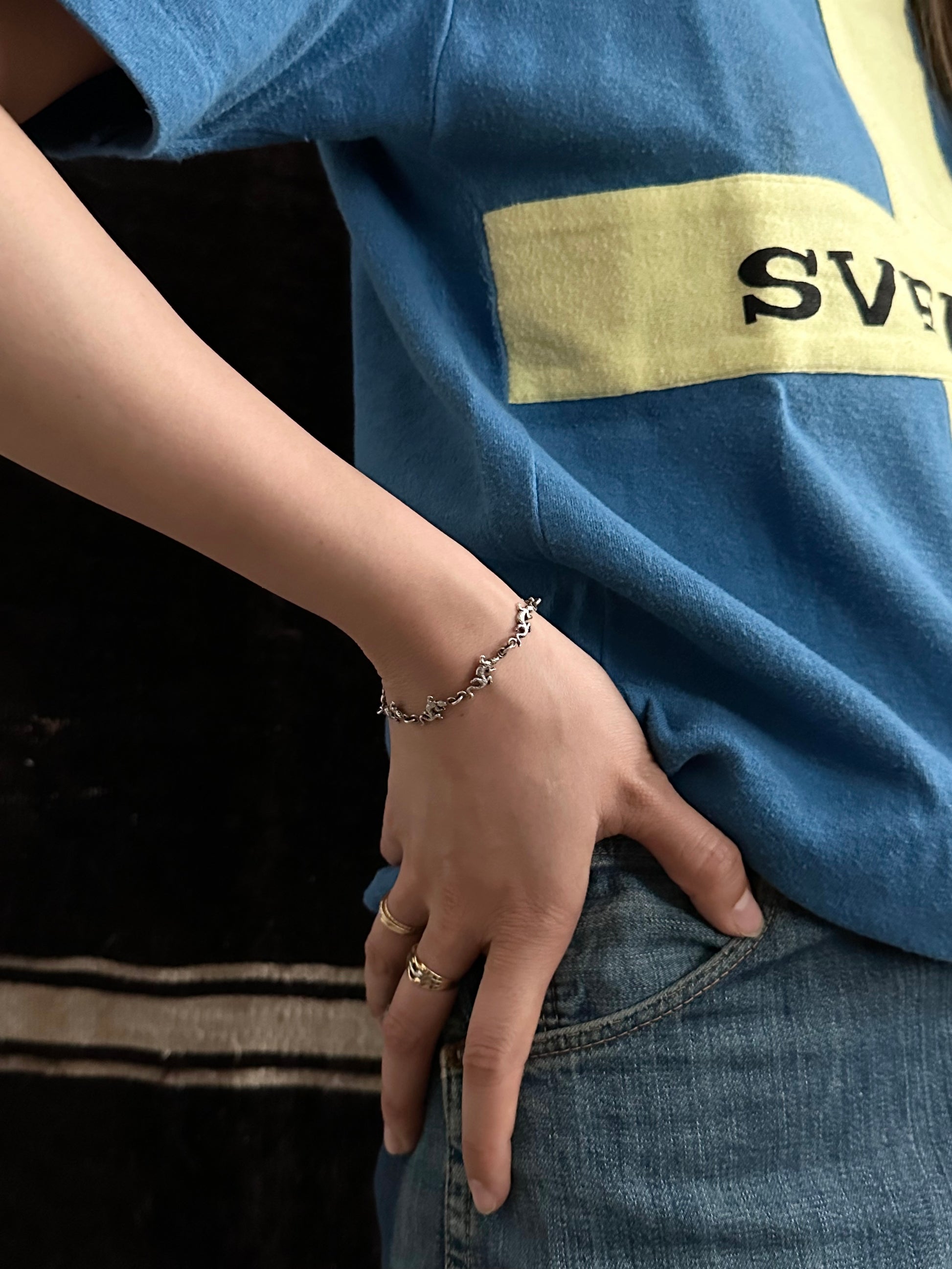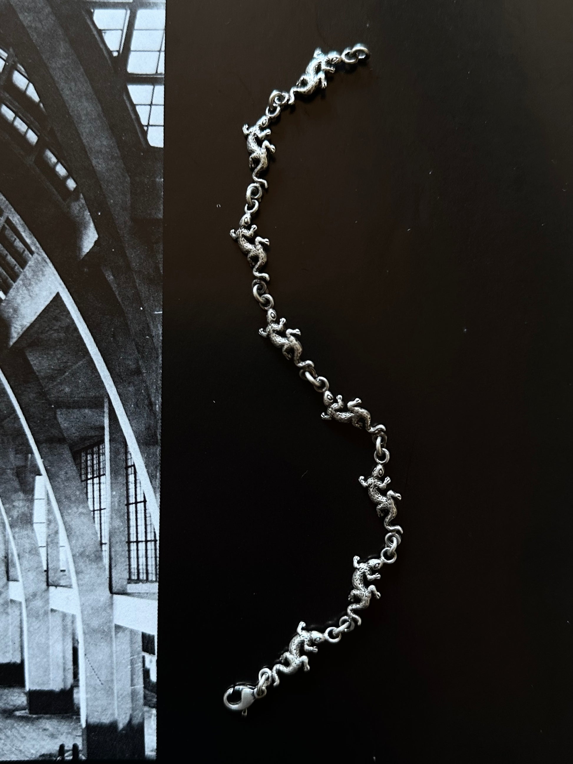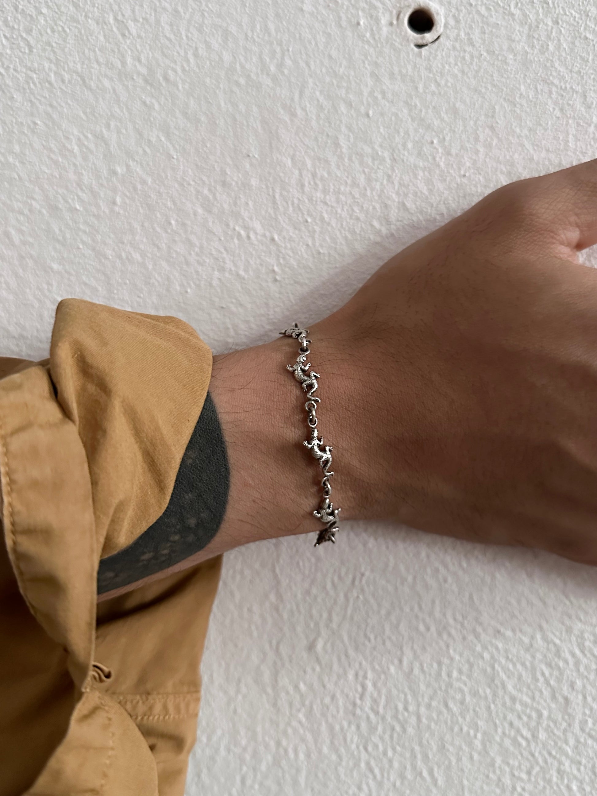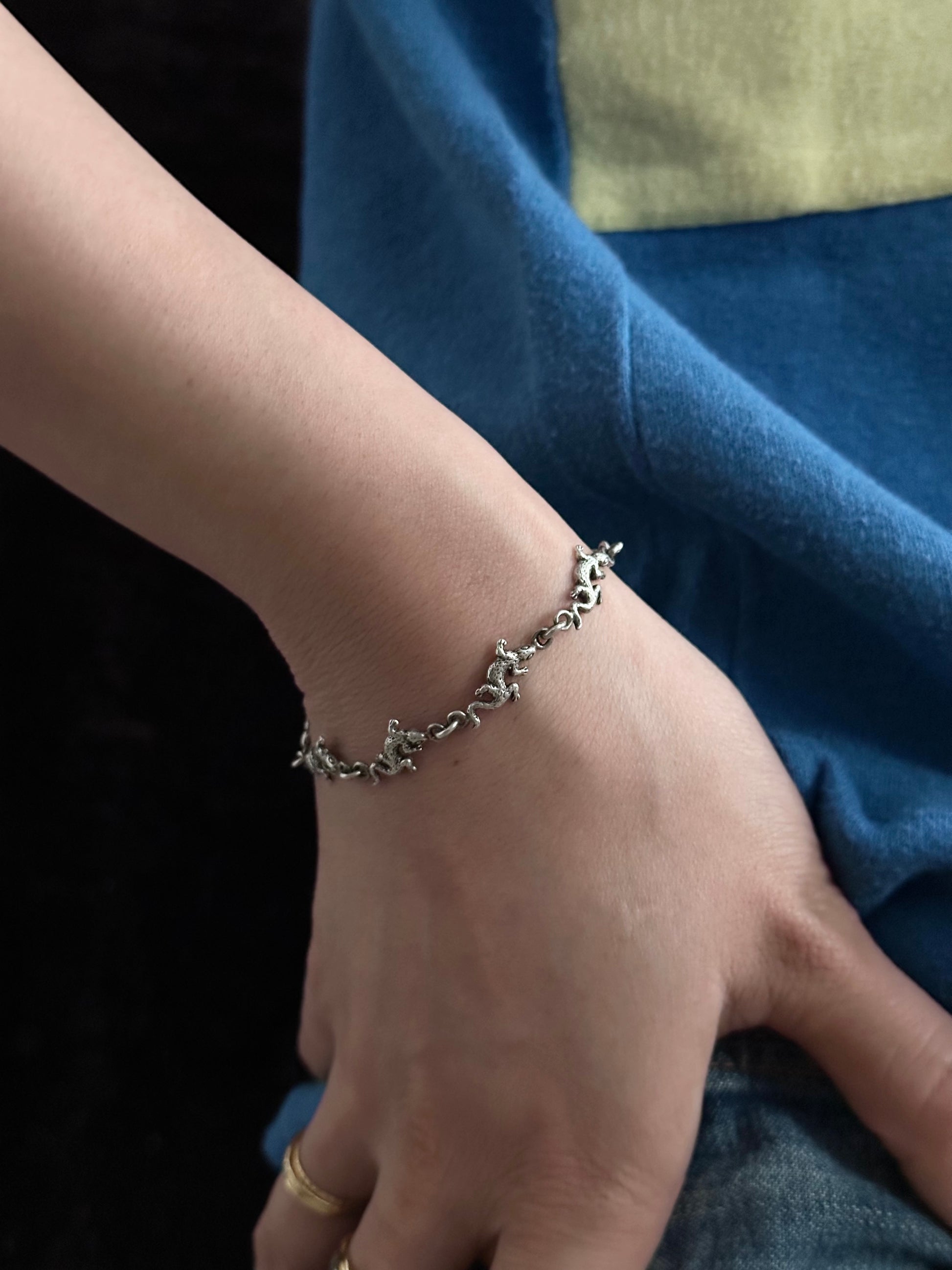 細かい小さいトカゲ?ヤモリ?が並んだチェーンブレスレット。