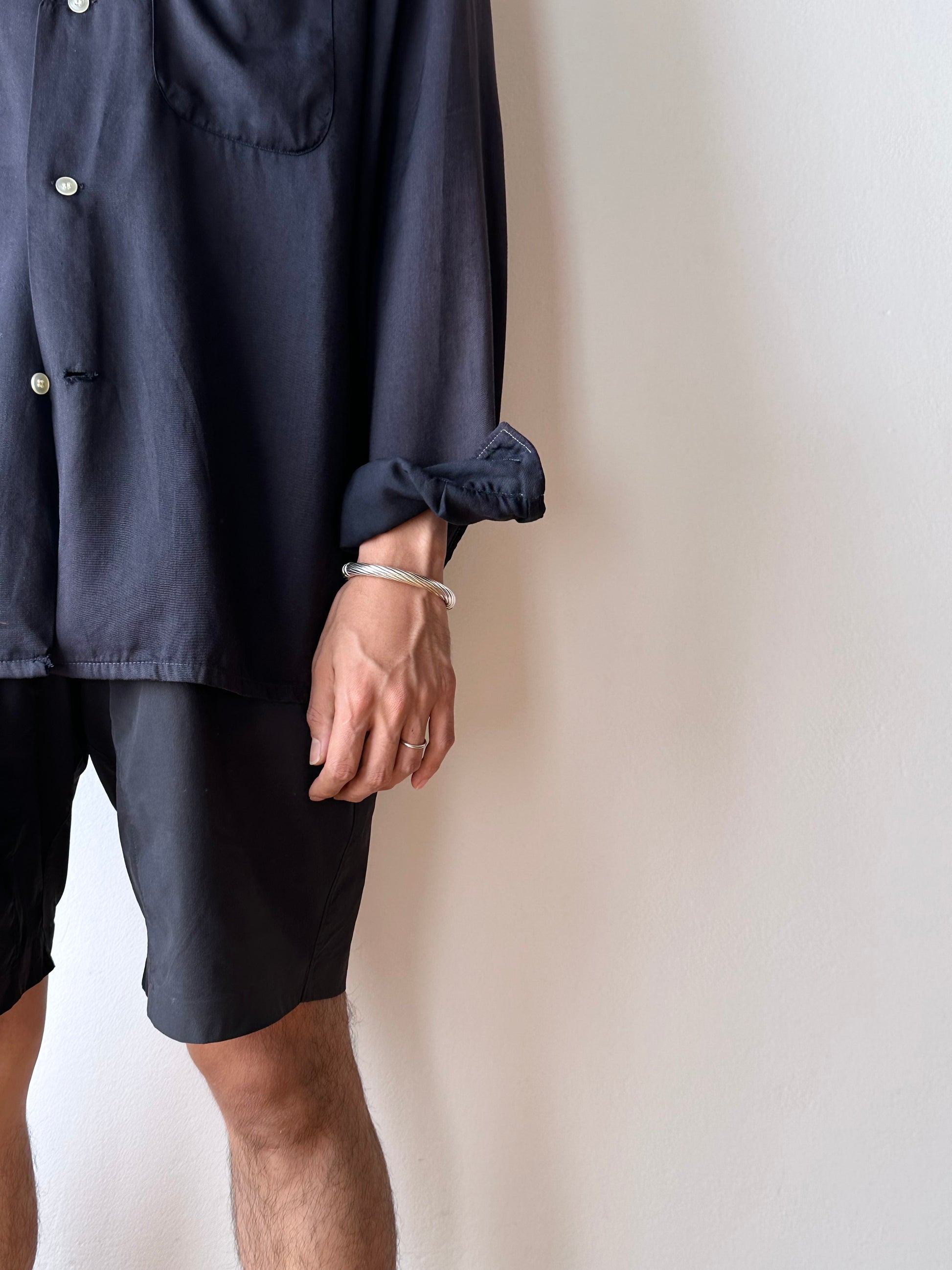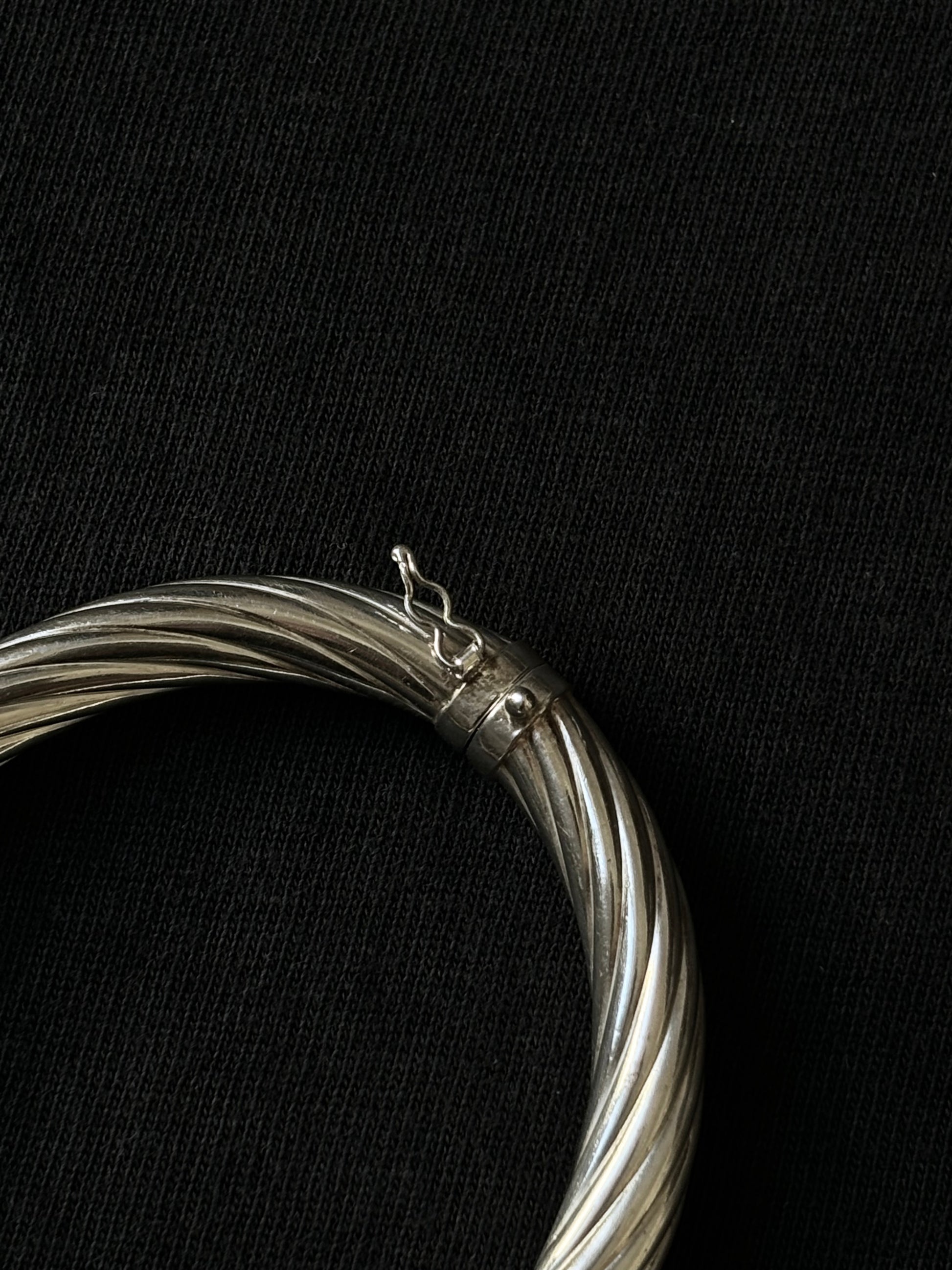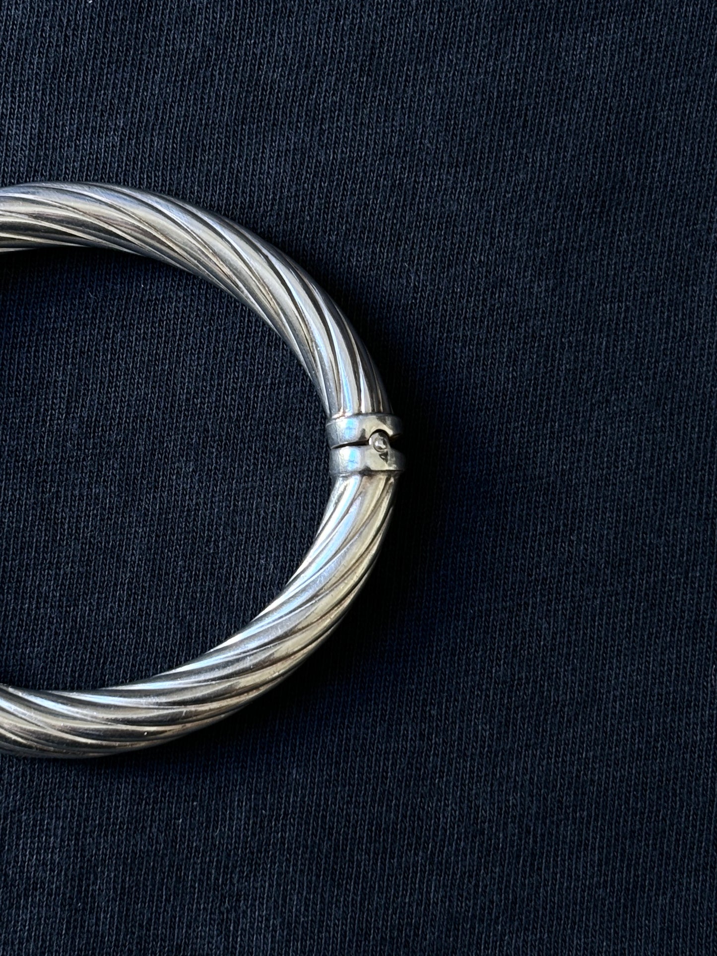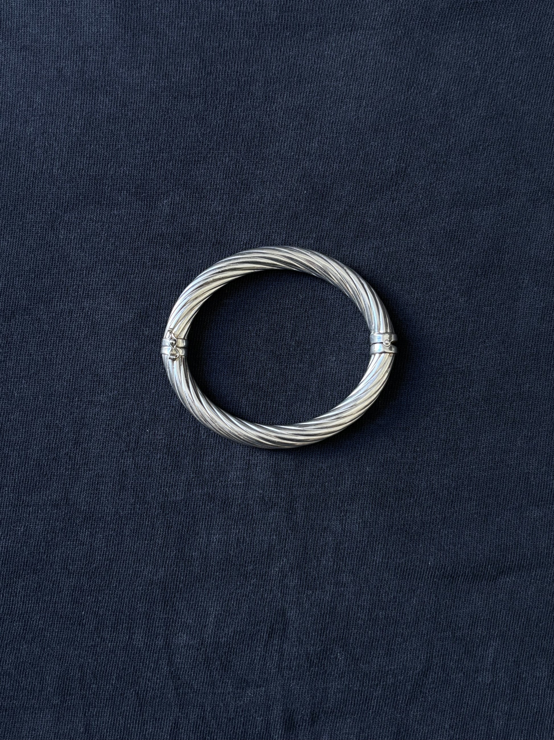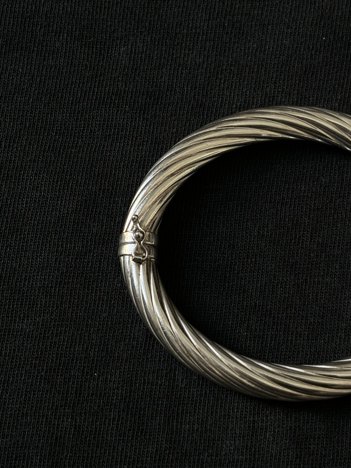 木の木目のような、自然で緩やかなねじれが美しいシルバーバングル。