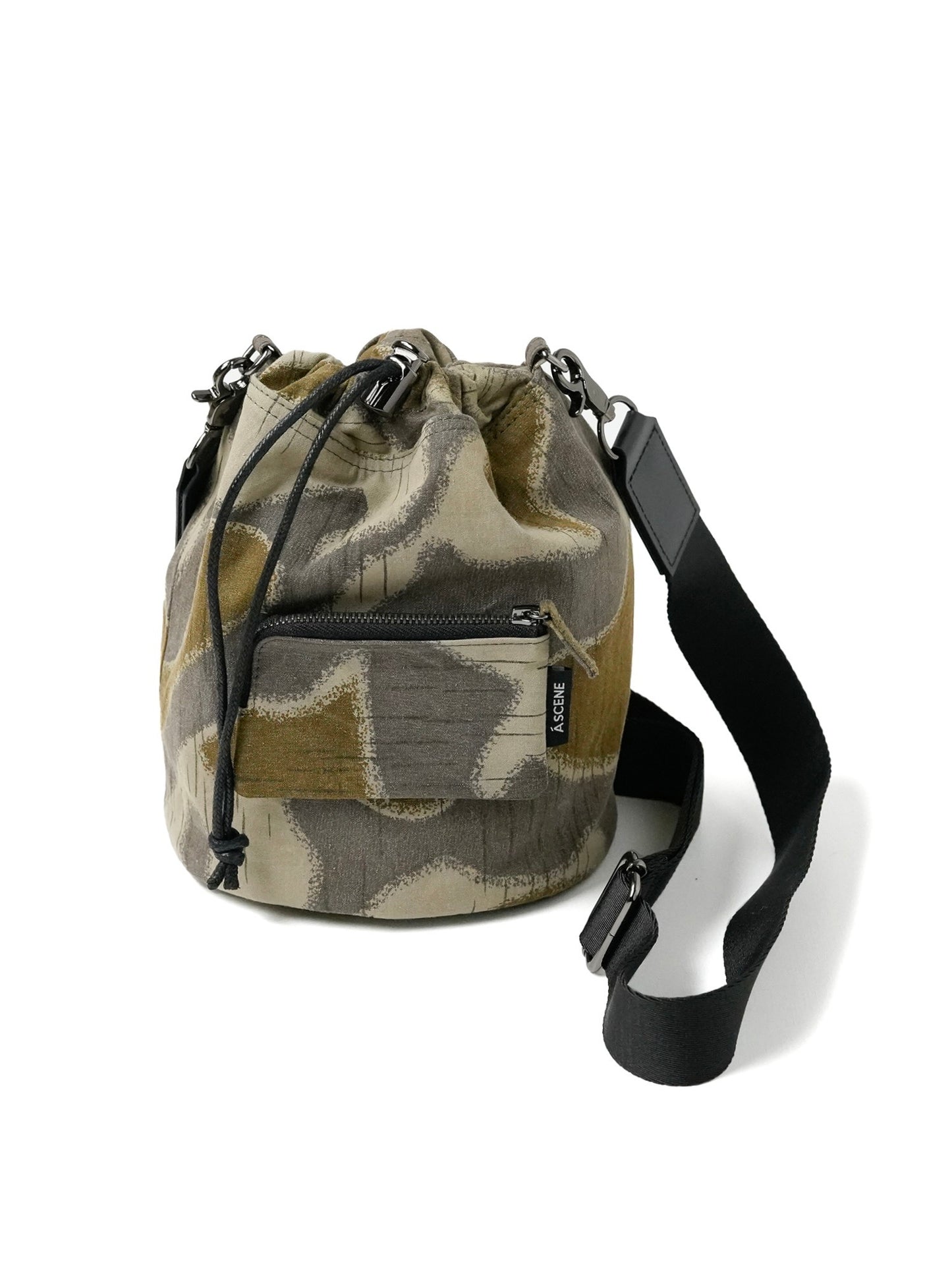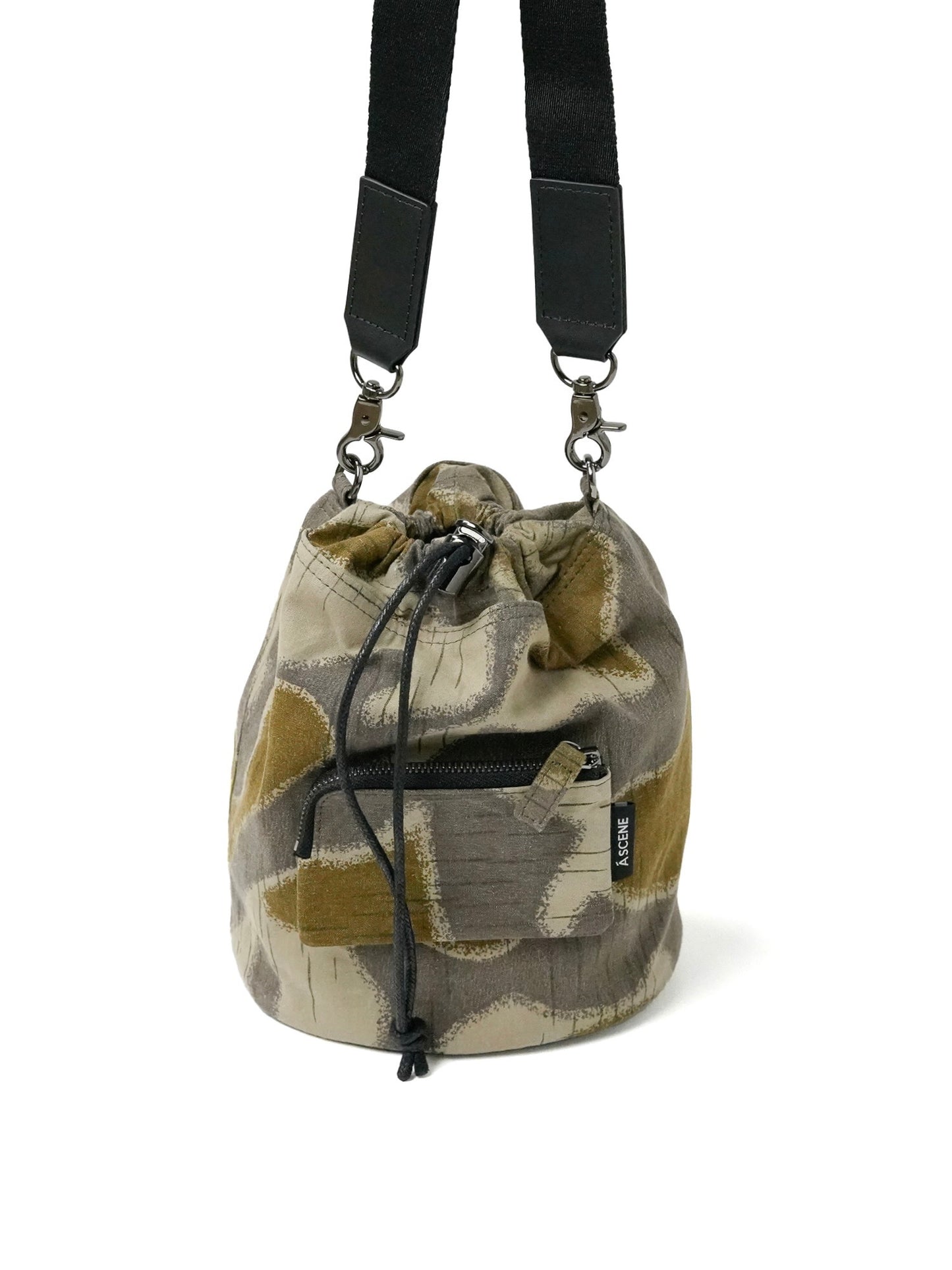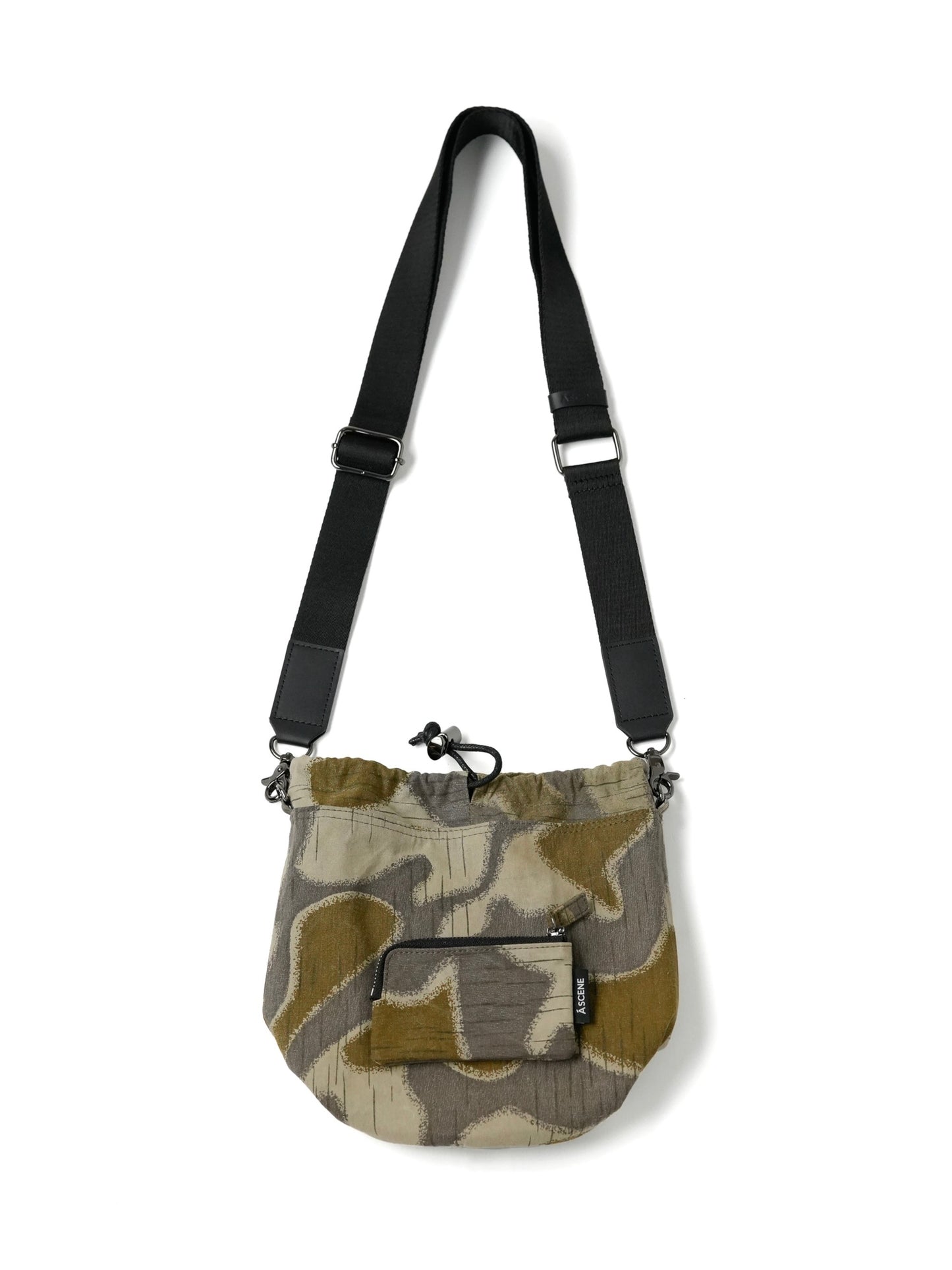 2025年のA SCENE新作アイテム”Kinchaku shoulder ”のディテールはそのままに、ボディ全面を上質なミリタリーファブリックで仕上げた。