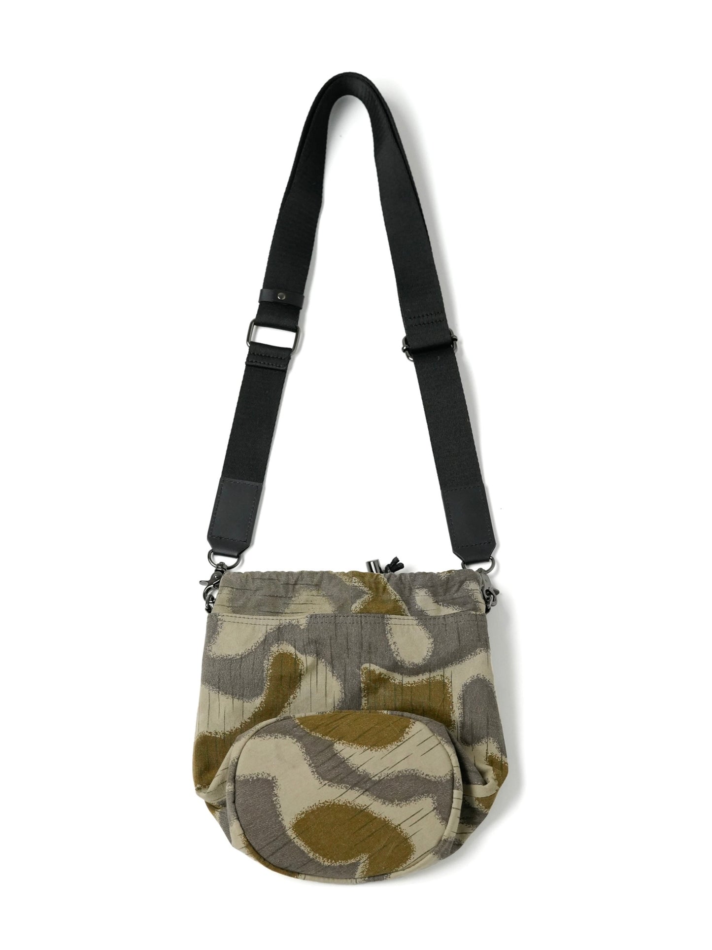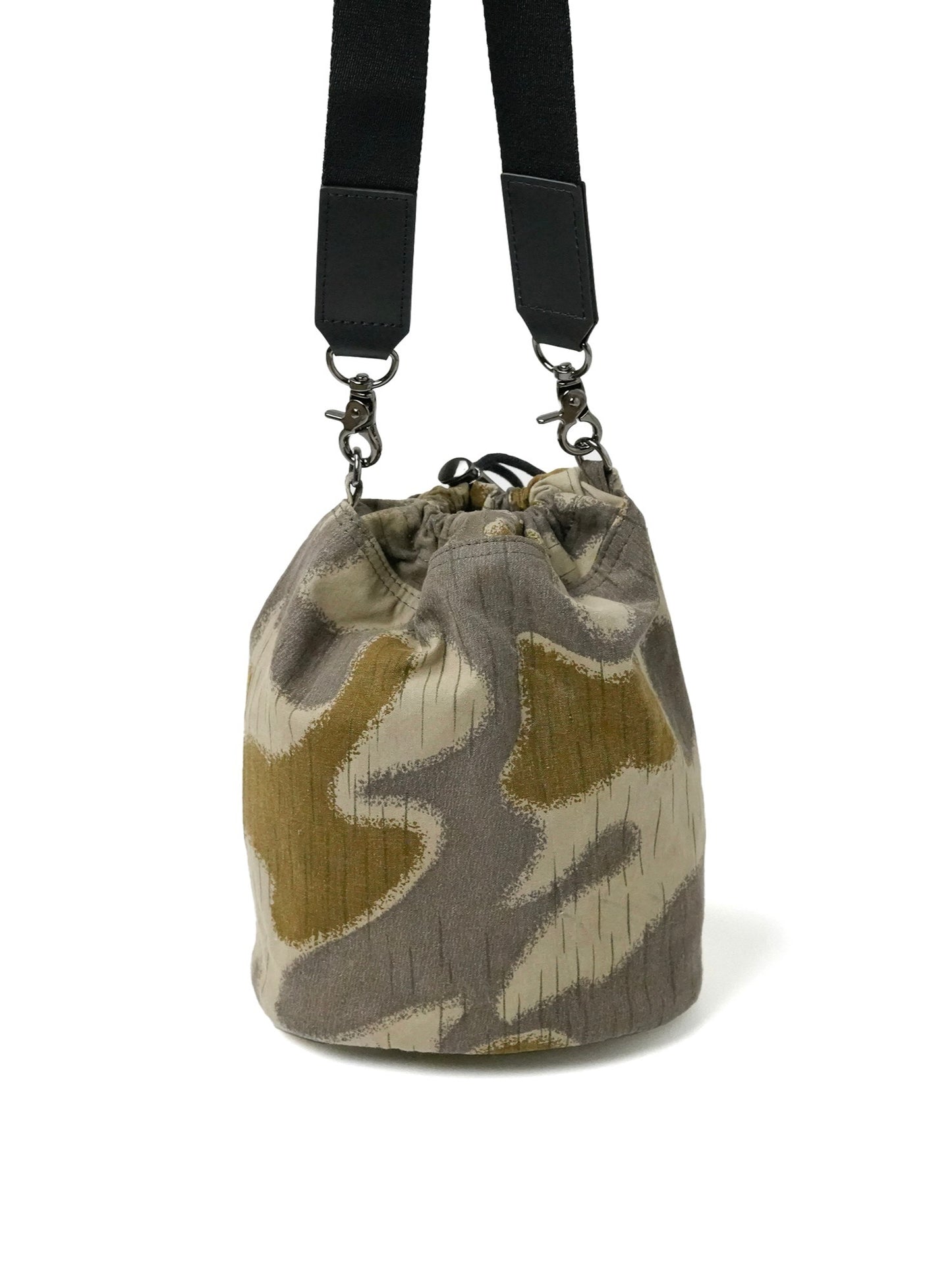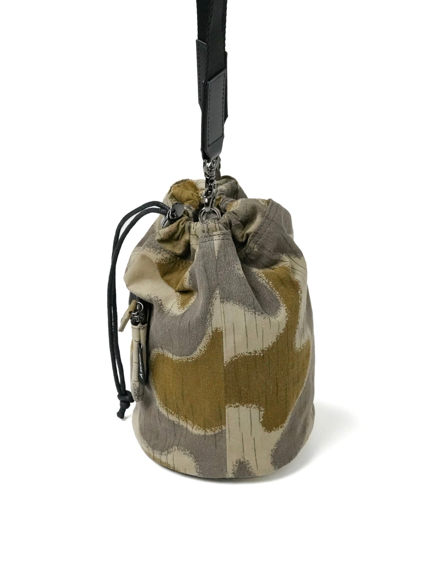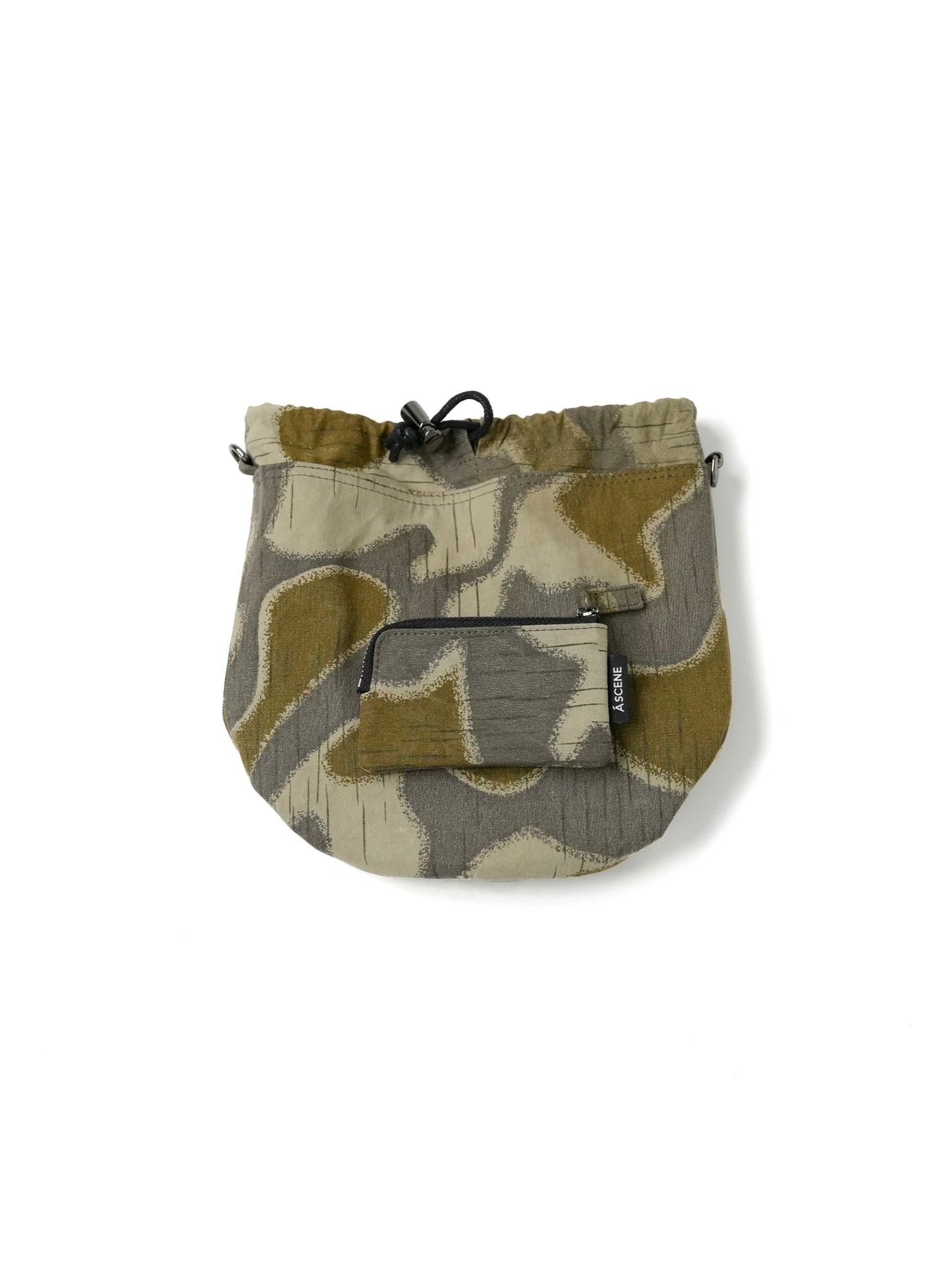 2025年のA SCENE新作アイテム”Kinchaku shoulder ”のディテールはそのままに、ボディ全面を上質なミリタリーファブリックで仕上げた。