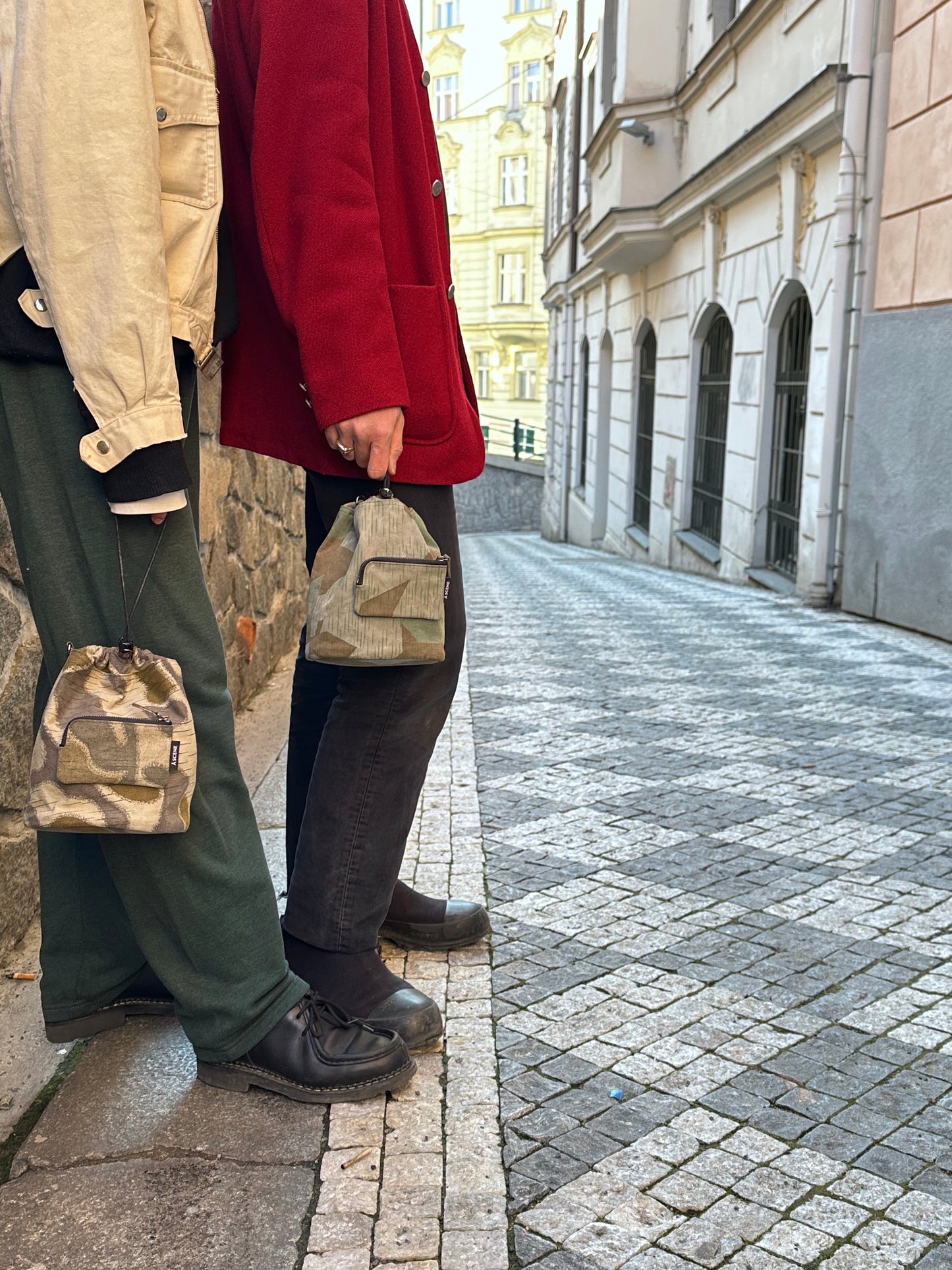 ミニマムなサイズ感でコロンとしたかわいいフォルムに仕上がっている。かっこよくもかわいくも感じられるカモフラ生地の良い部分を贅沢に使い、世代問わず使いやすく仕上げた。