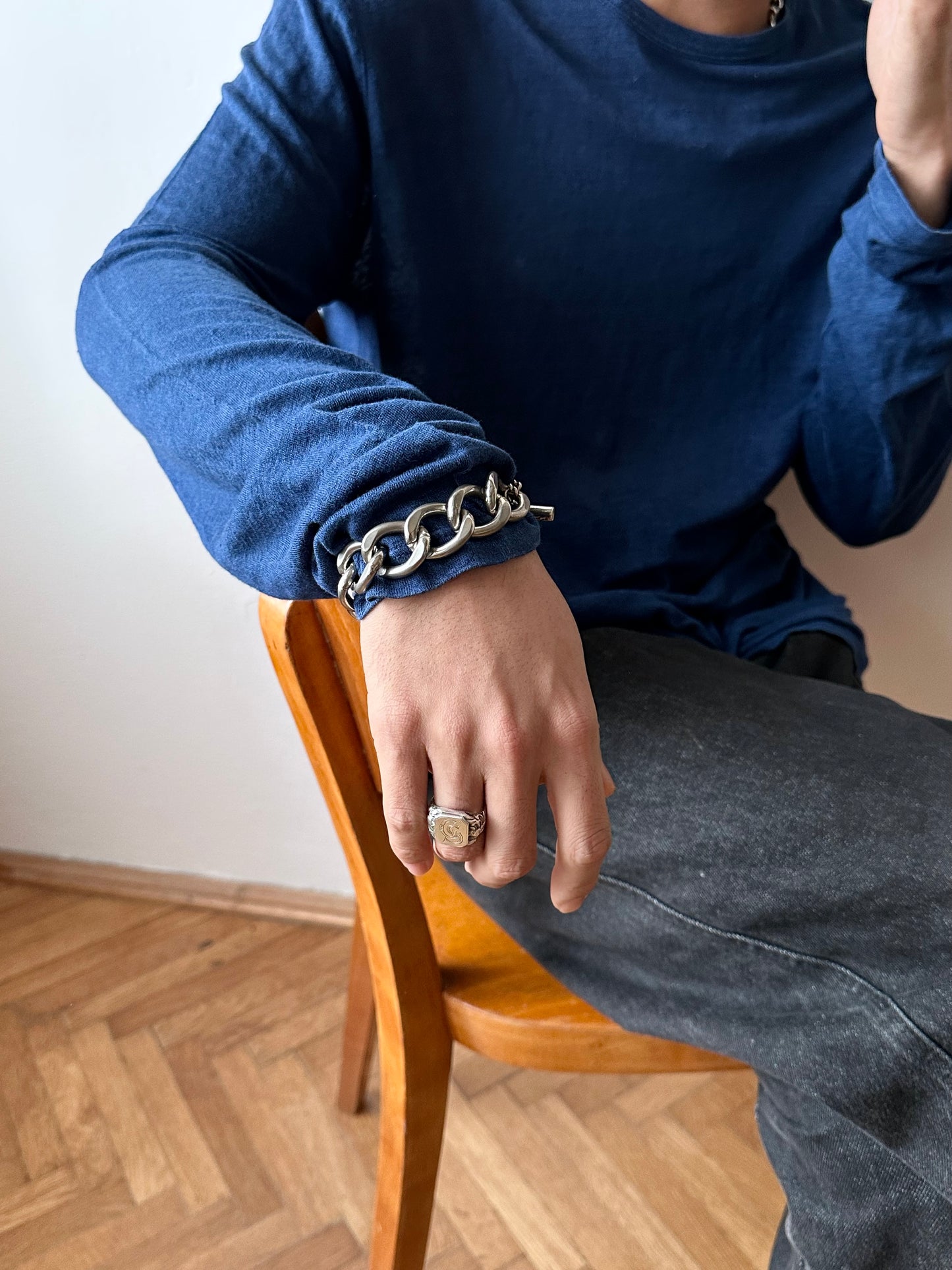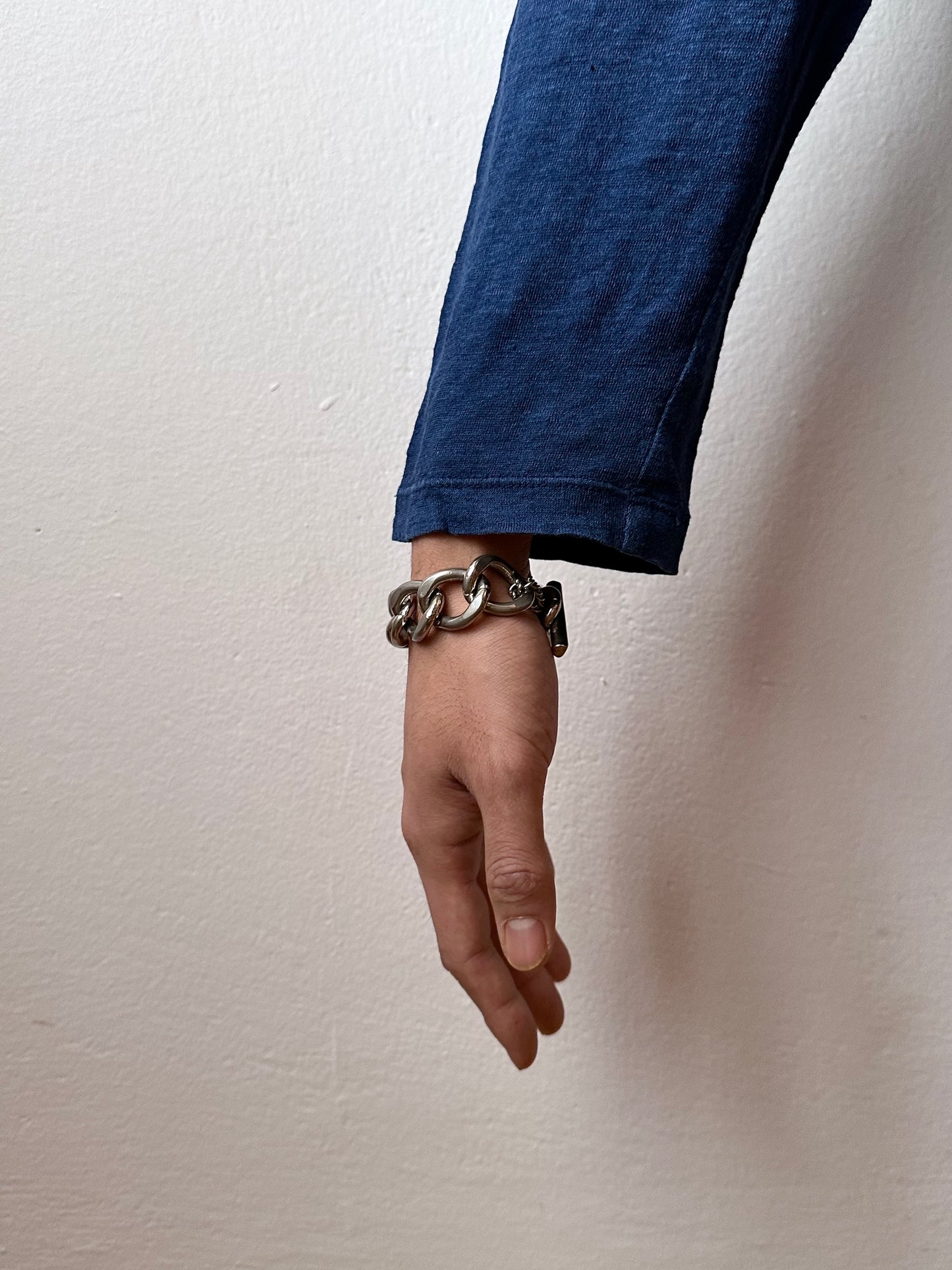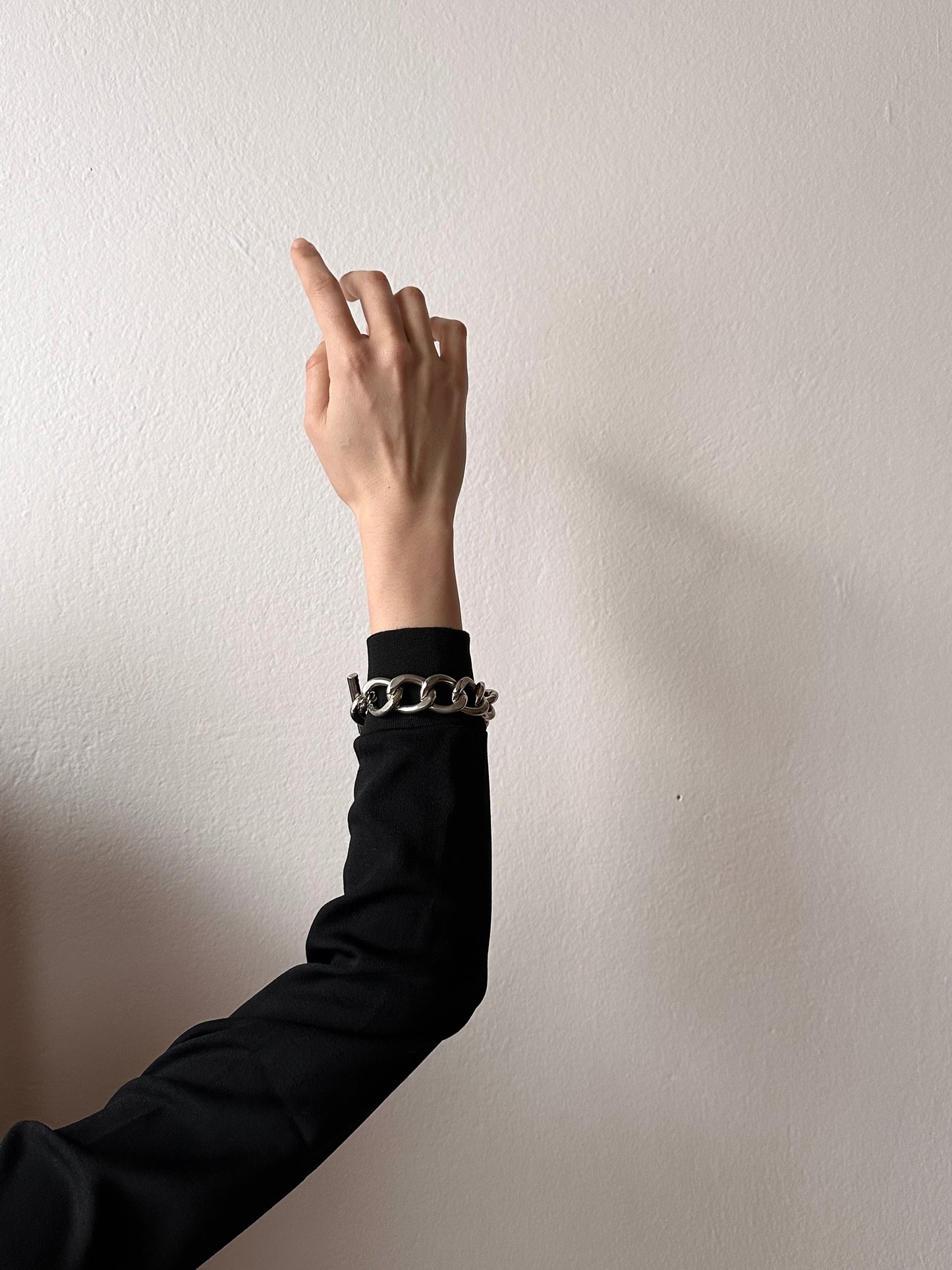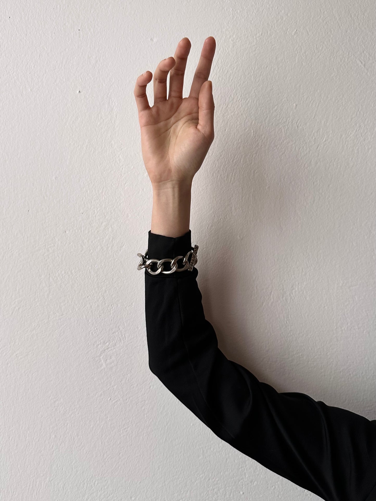 ずっしりと重たいメタルの素材で、見た目にも重厚感がありハードな手元に。