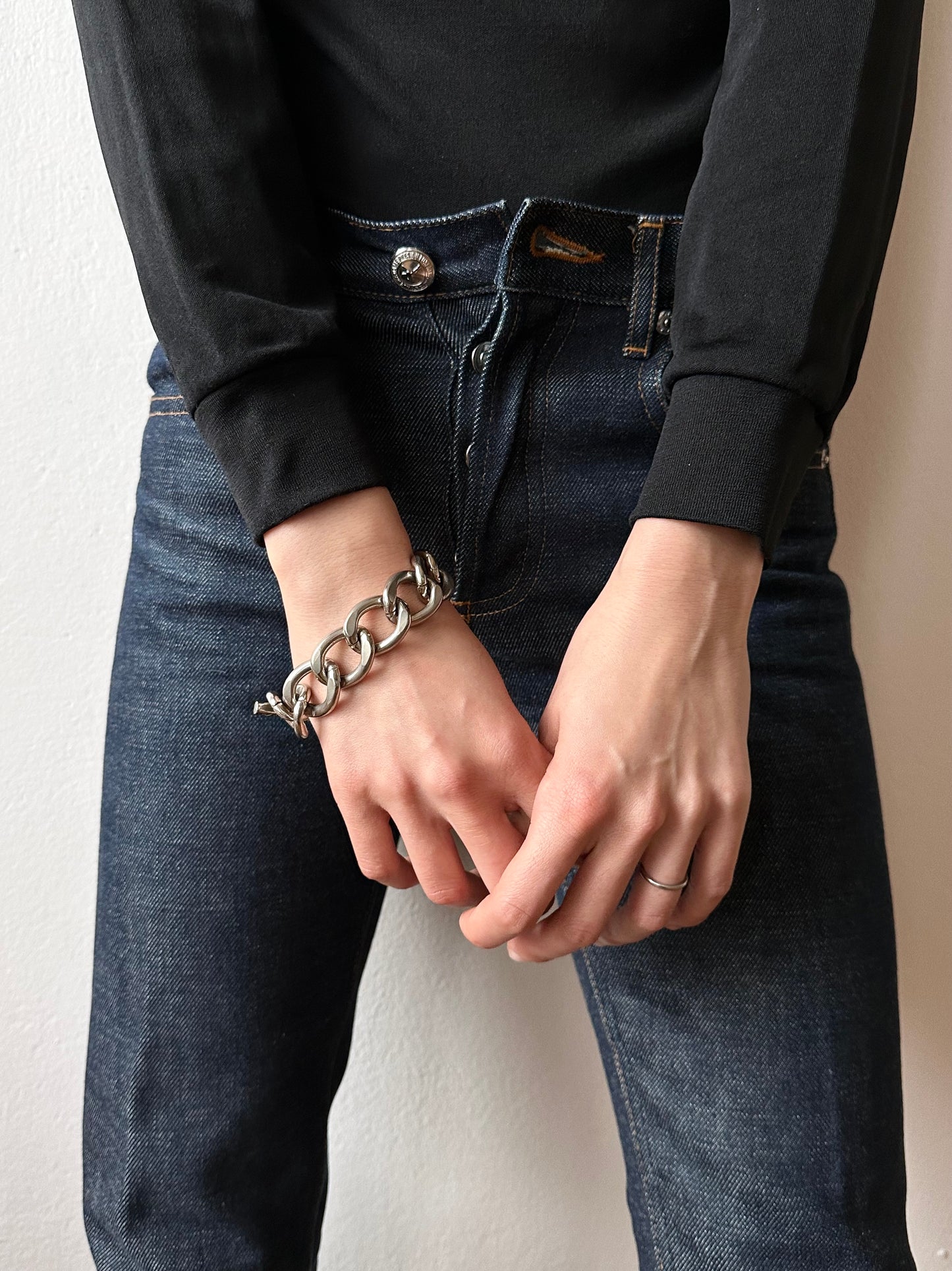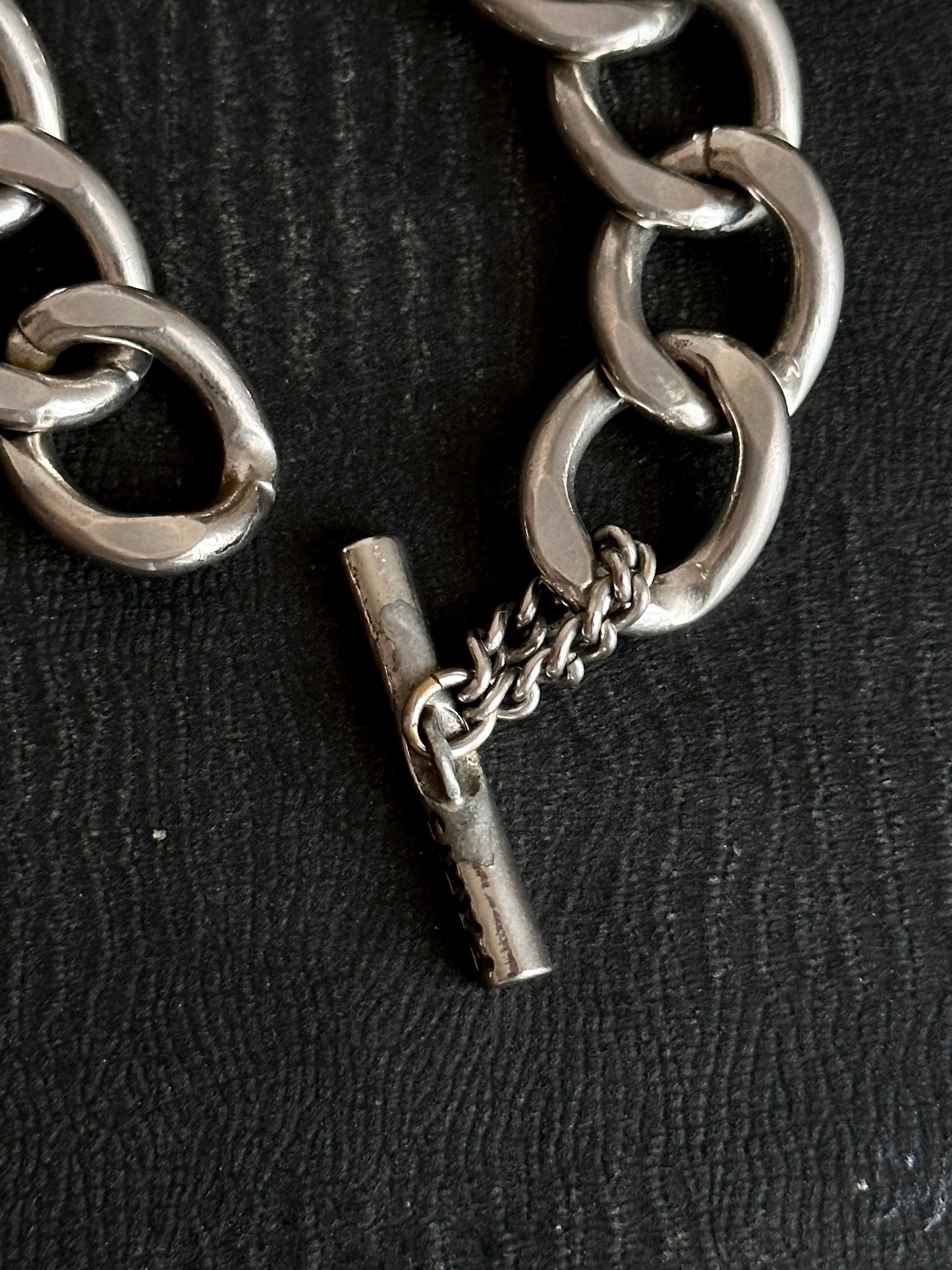でっぷりと分厚い大きなカーブチェーンにトグルクラスプ。