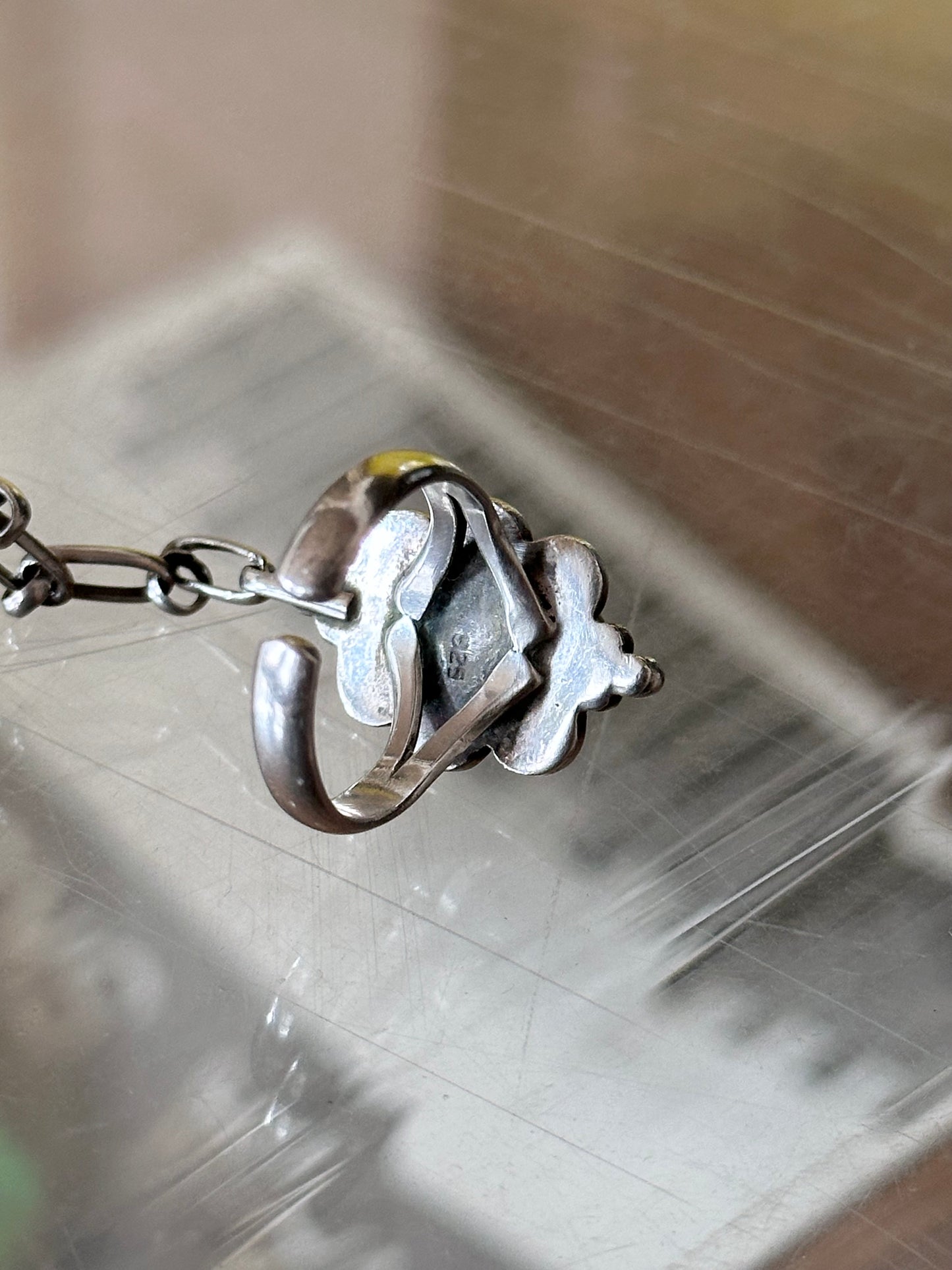 チェーンもただただパーツを繋ぎました、ではなく1つ1つに拘りを感じる形状のアーティザナルなクラフトジュエリー。年代は恐らく70-80年代かなと思います。