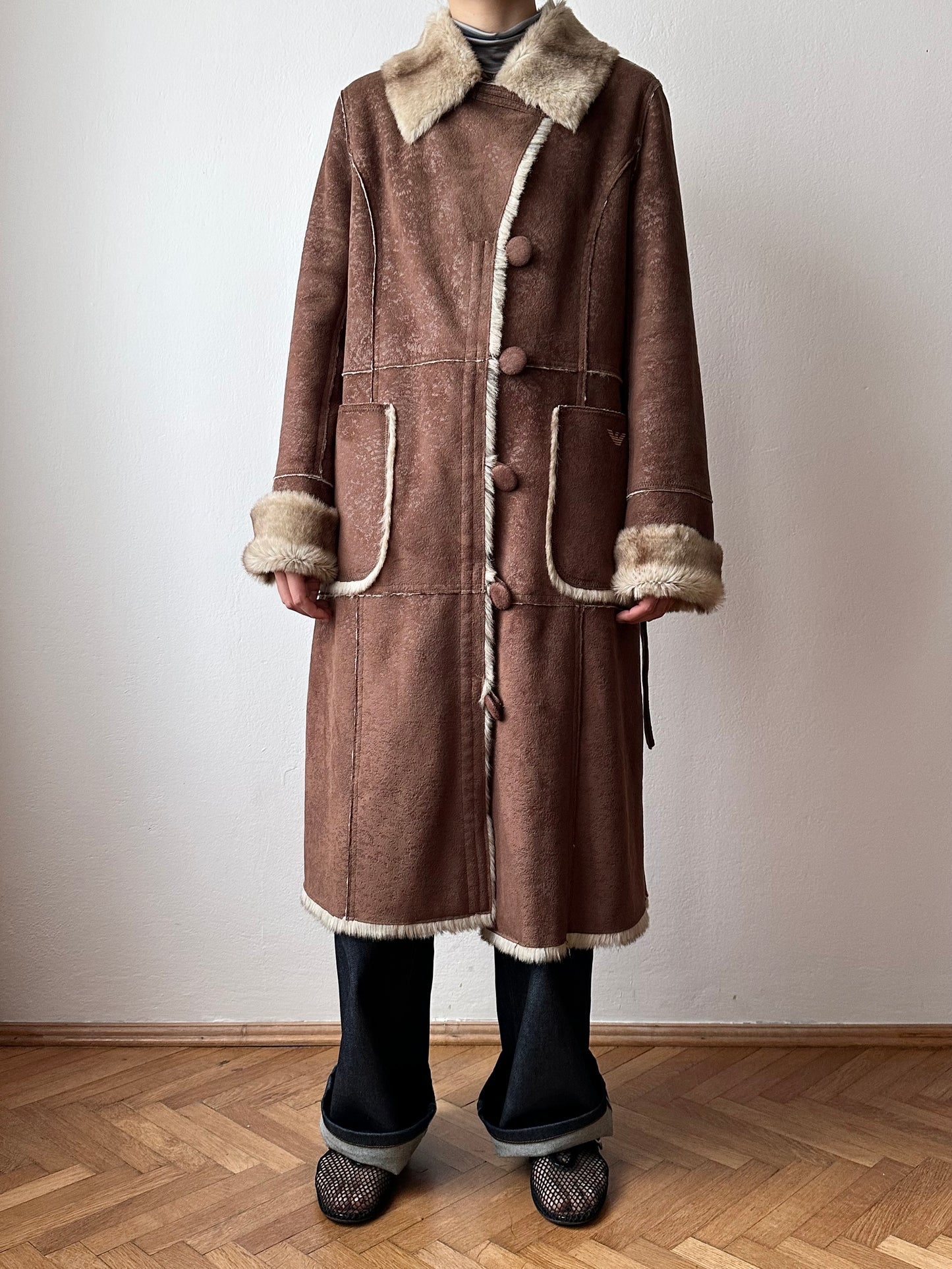 Armani Jeansのフェイクスェード&ファーのウィンターコート。