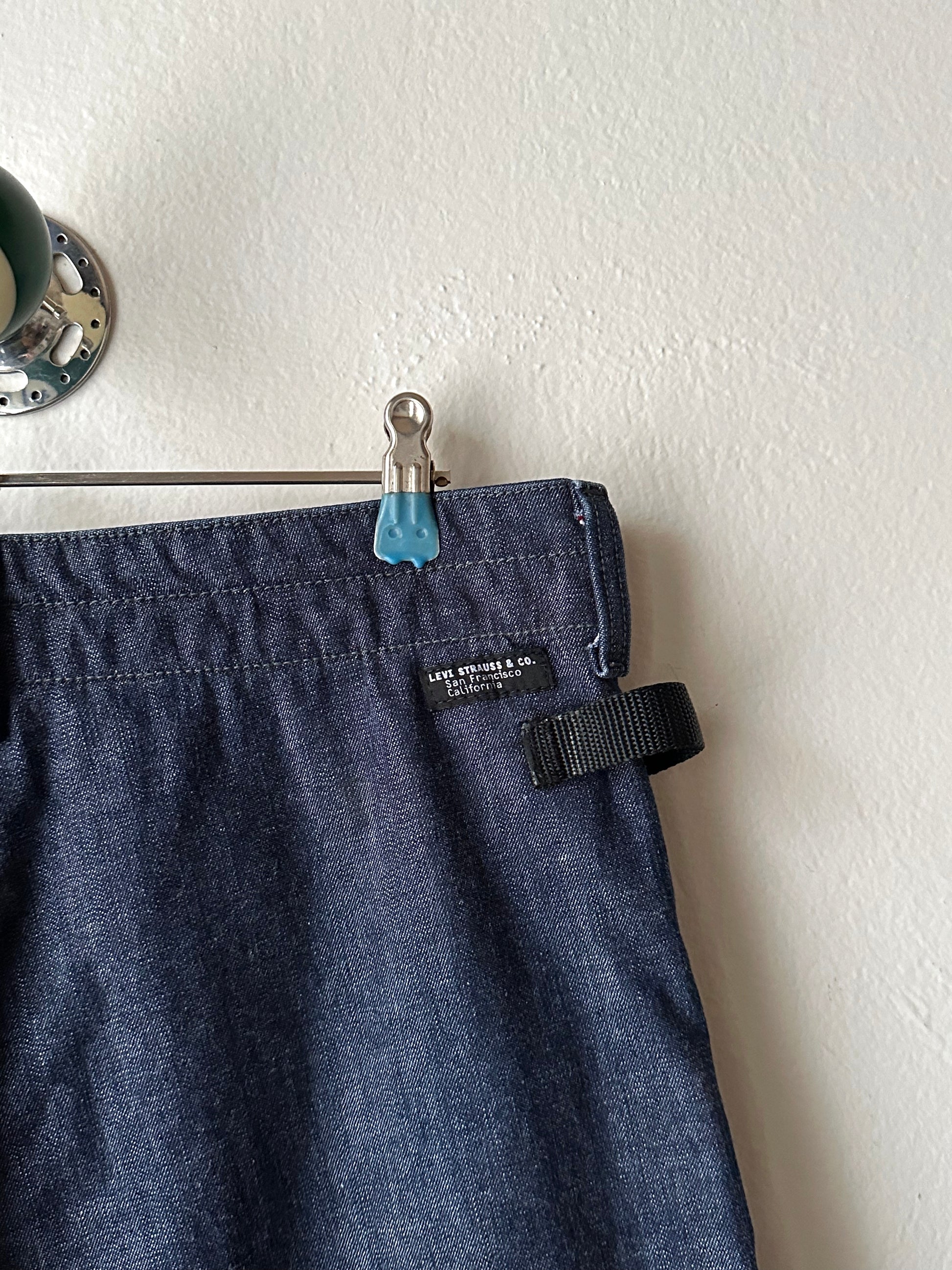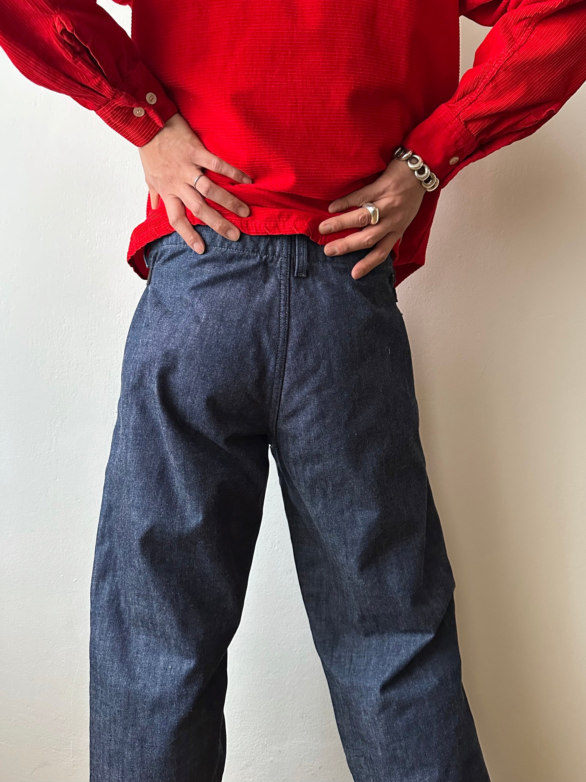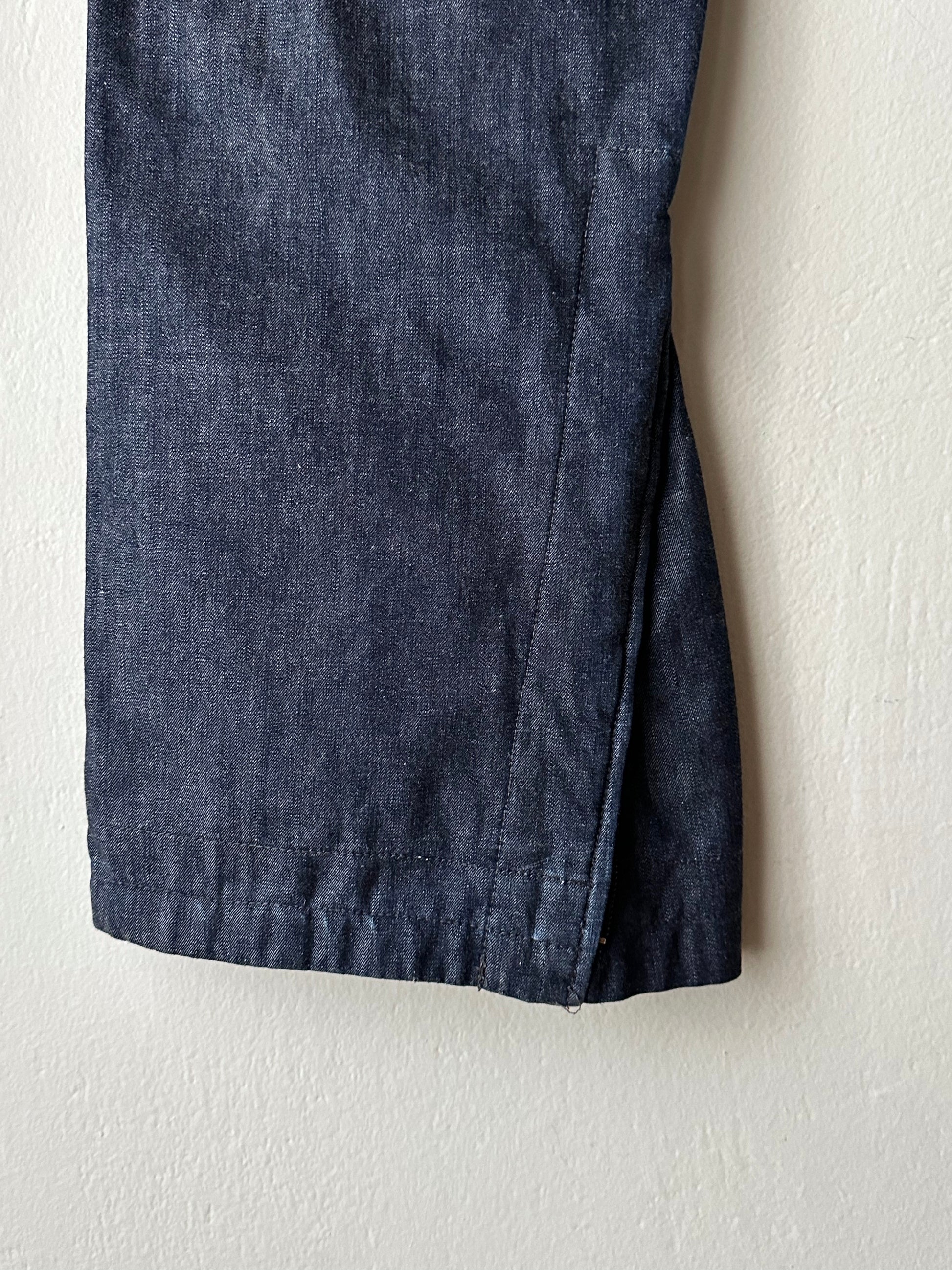 面白いシルエットしてます、裾の内側にジッパー付いてて開けるとフレアシルエットになります、開けて穿くのが今の気分。