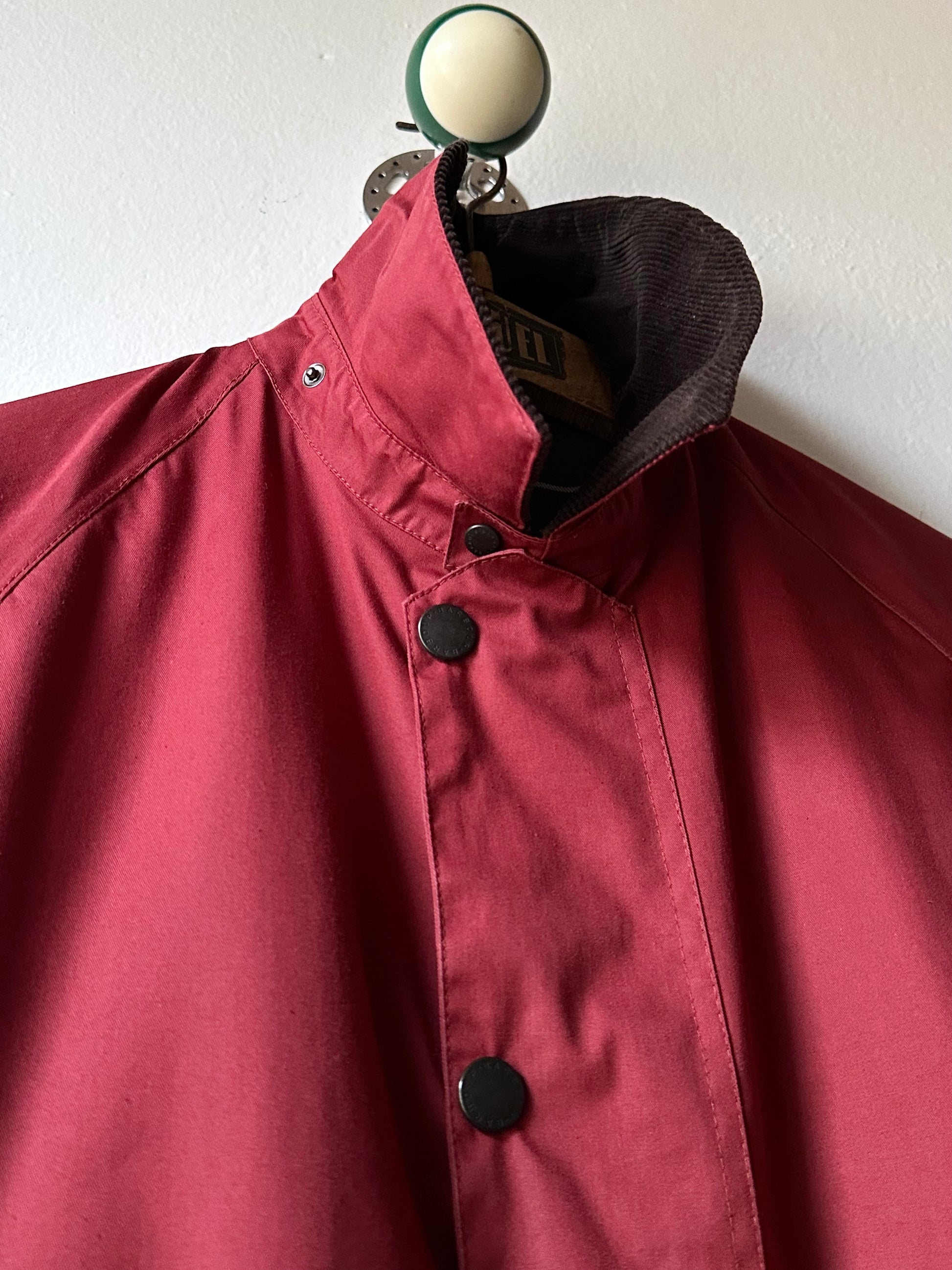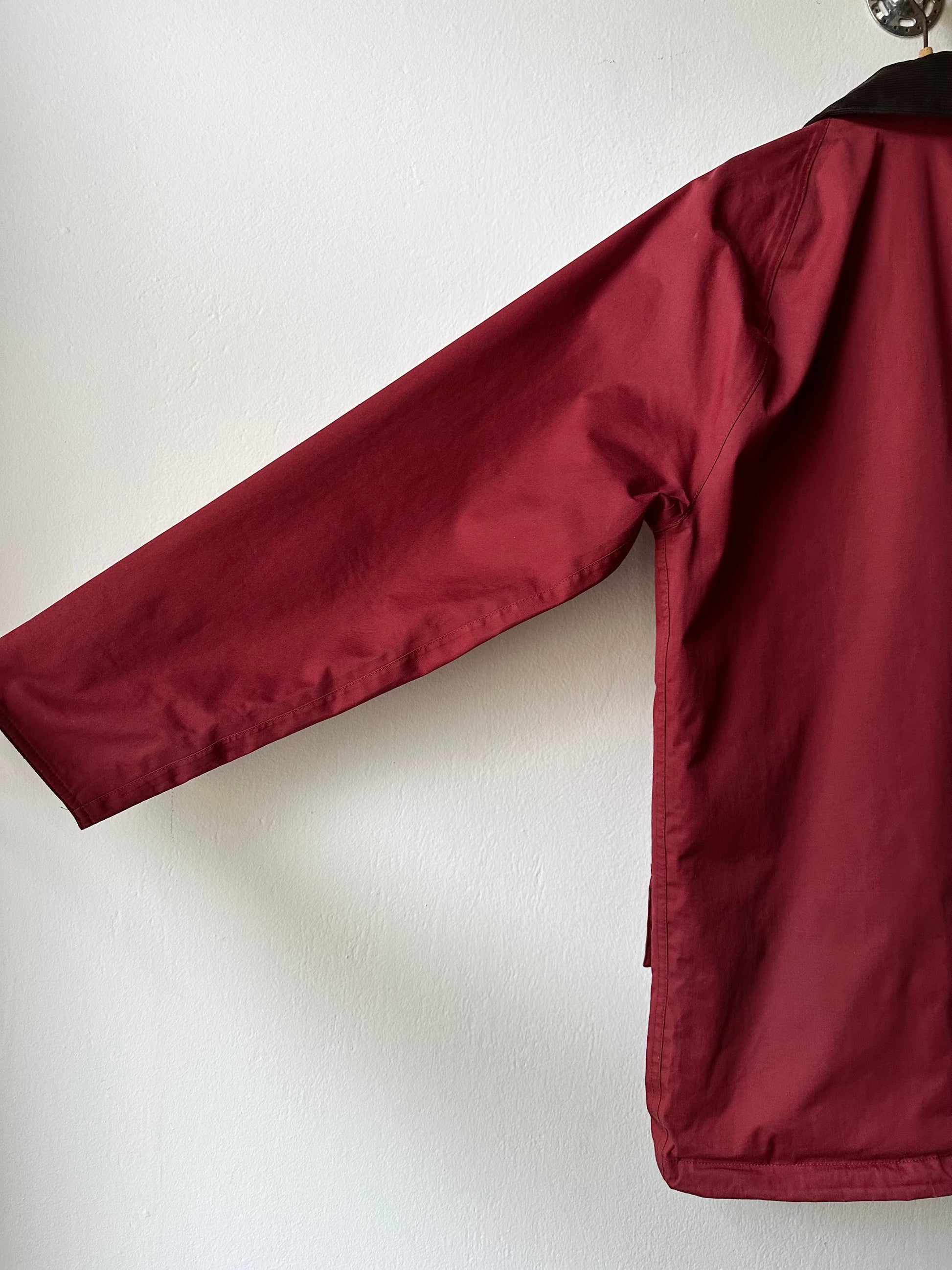 落ち着いたレッドカラーに、ブラウンのコーデュロイの襟とカフス。