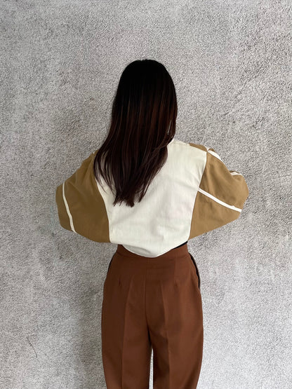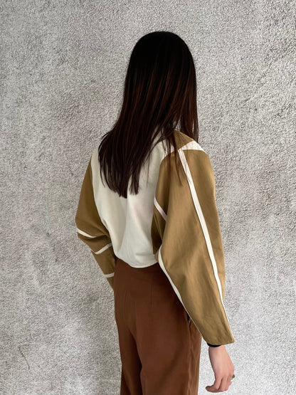 そのまま袖の位置で切りっぱなしになった超クロップドで