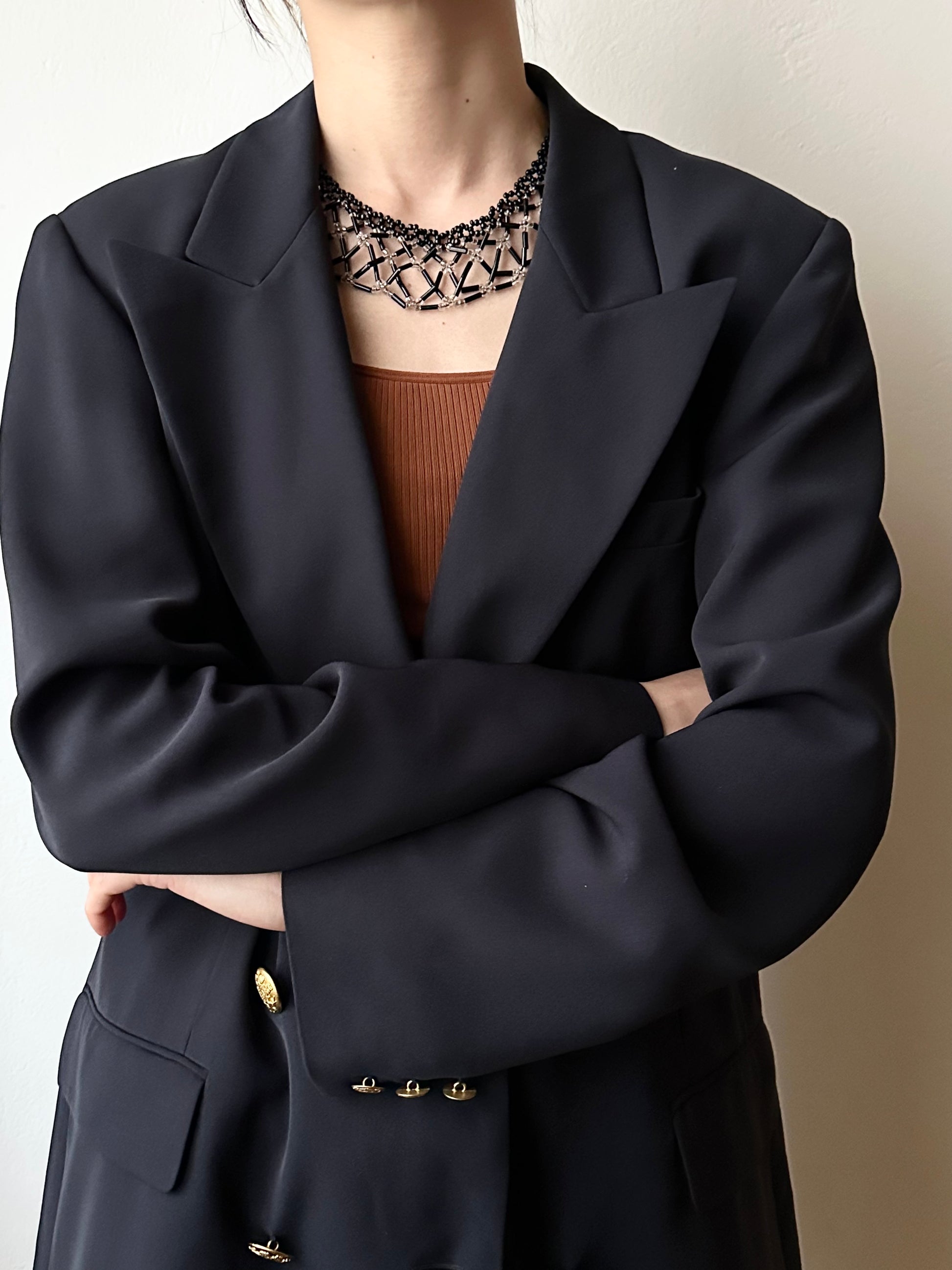 幅のあるデザインが首周りを華やかにしてくれます。