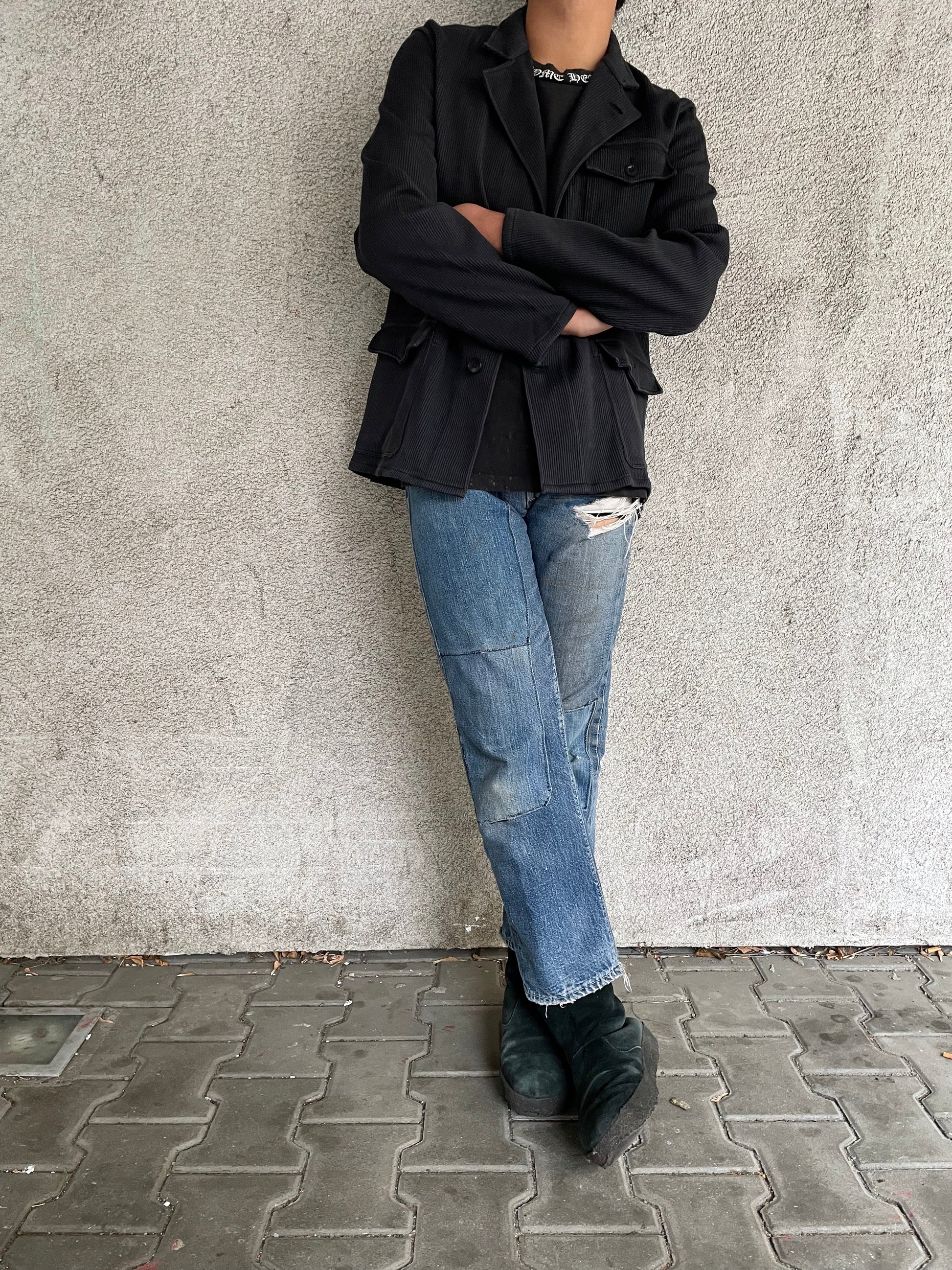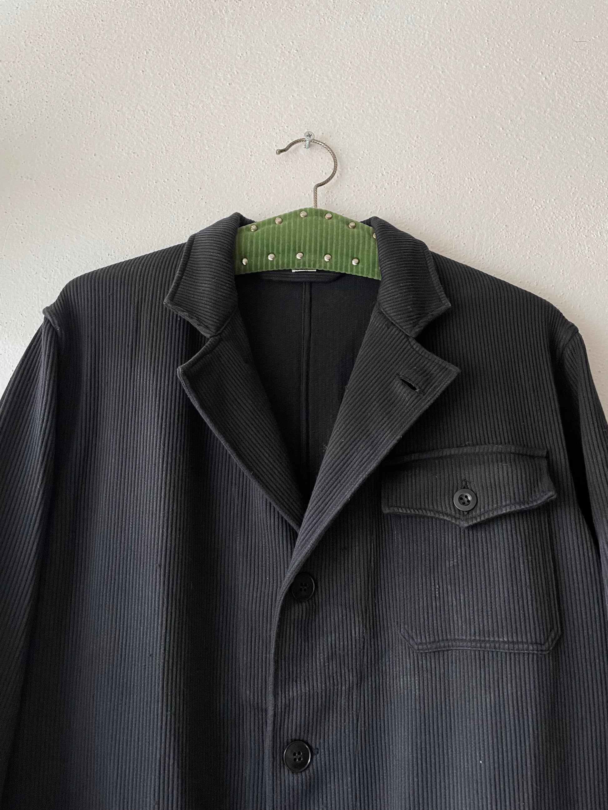 色味は限りなく黒に近いネイビー。この暗いカラーでピケ。珍しい。
