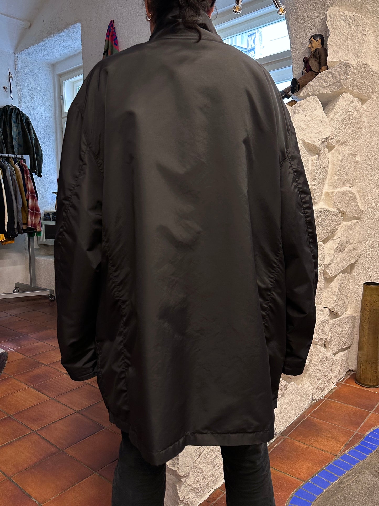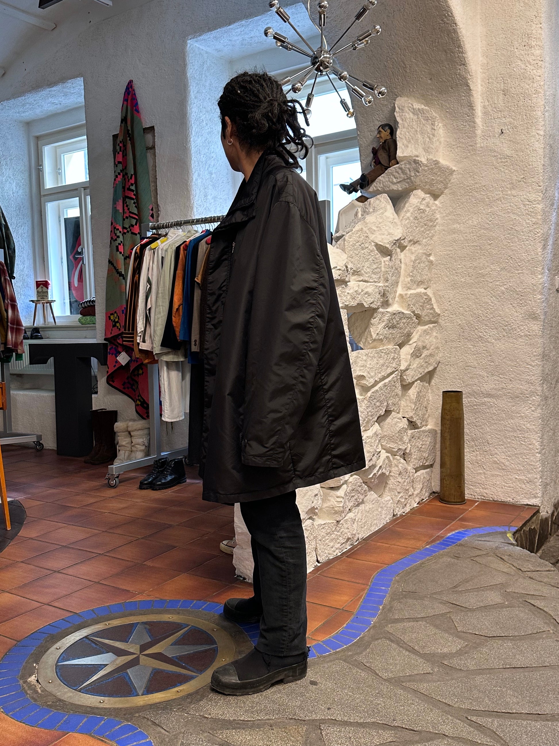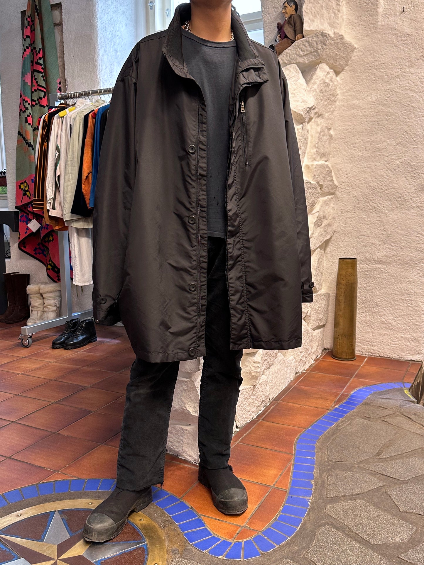 真っ黒のナイロンコート。