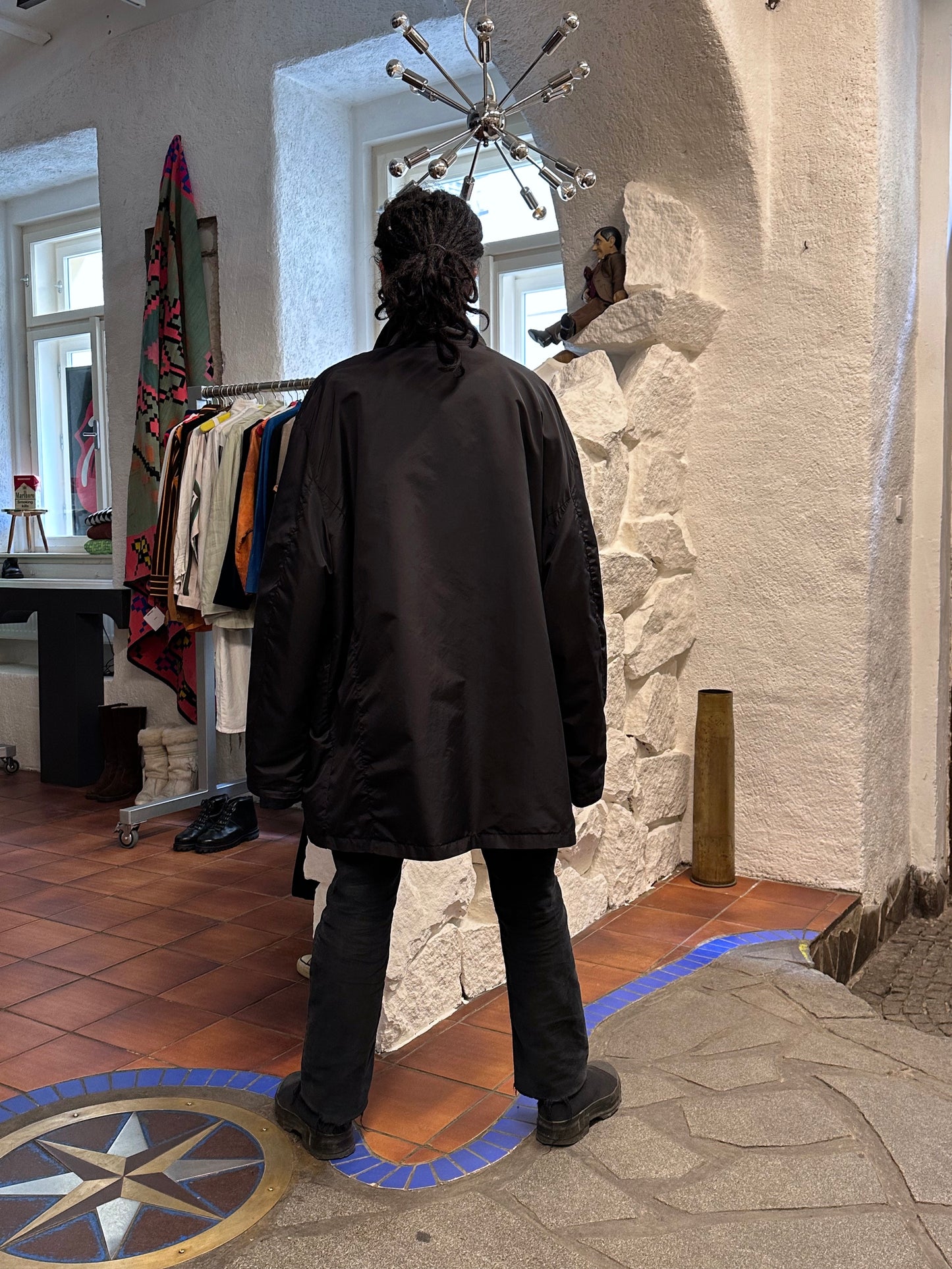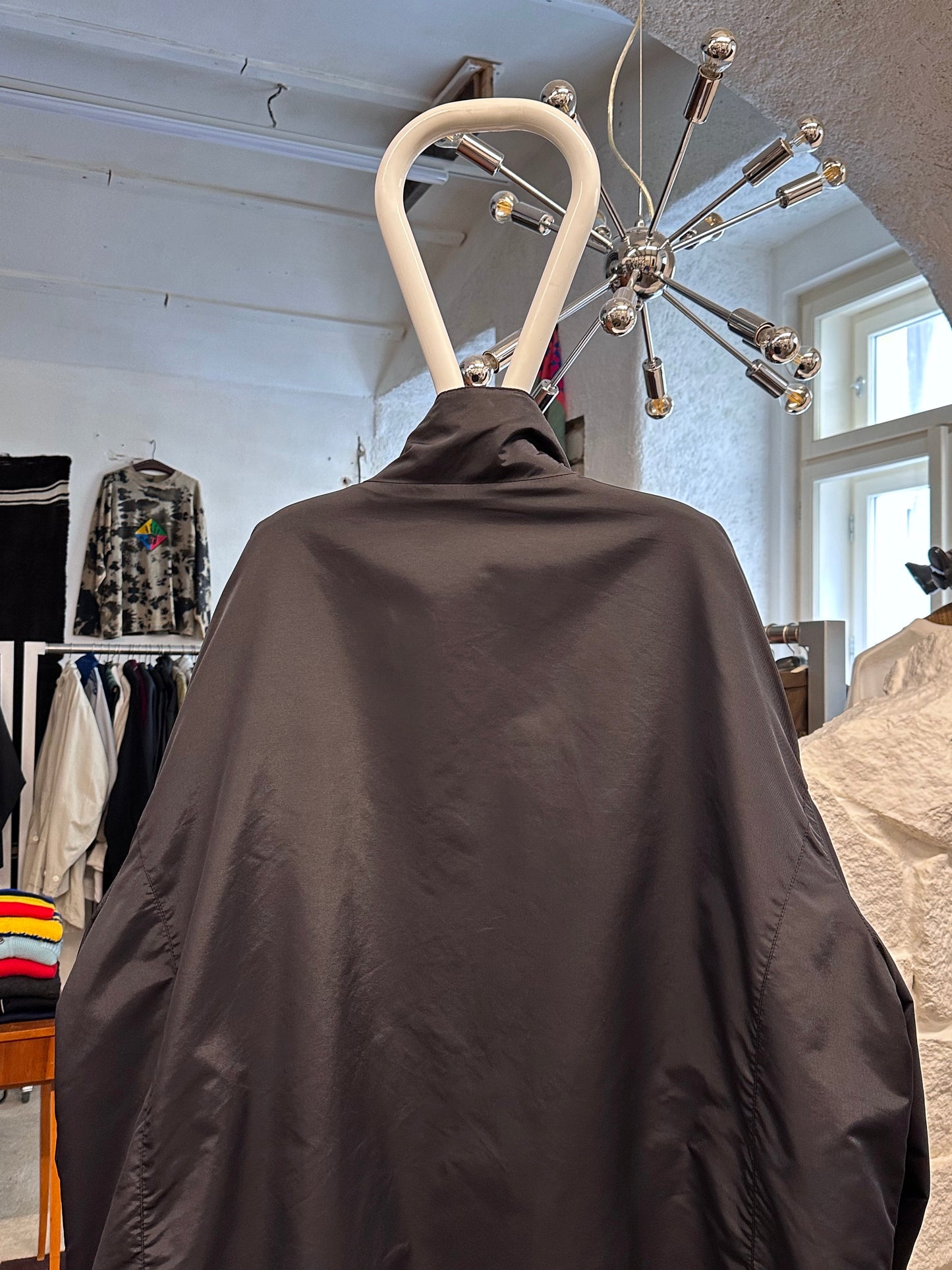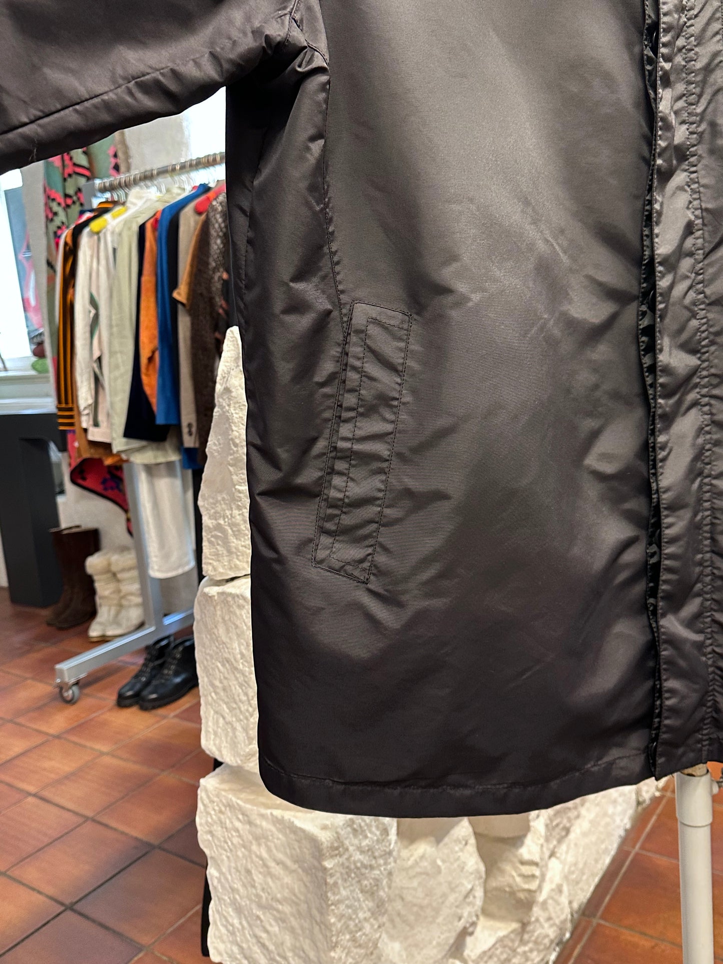 真っ黒のナイロンコート。