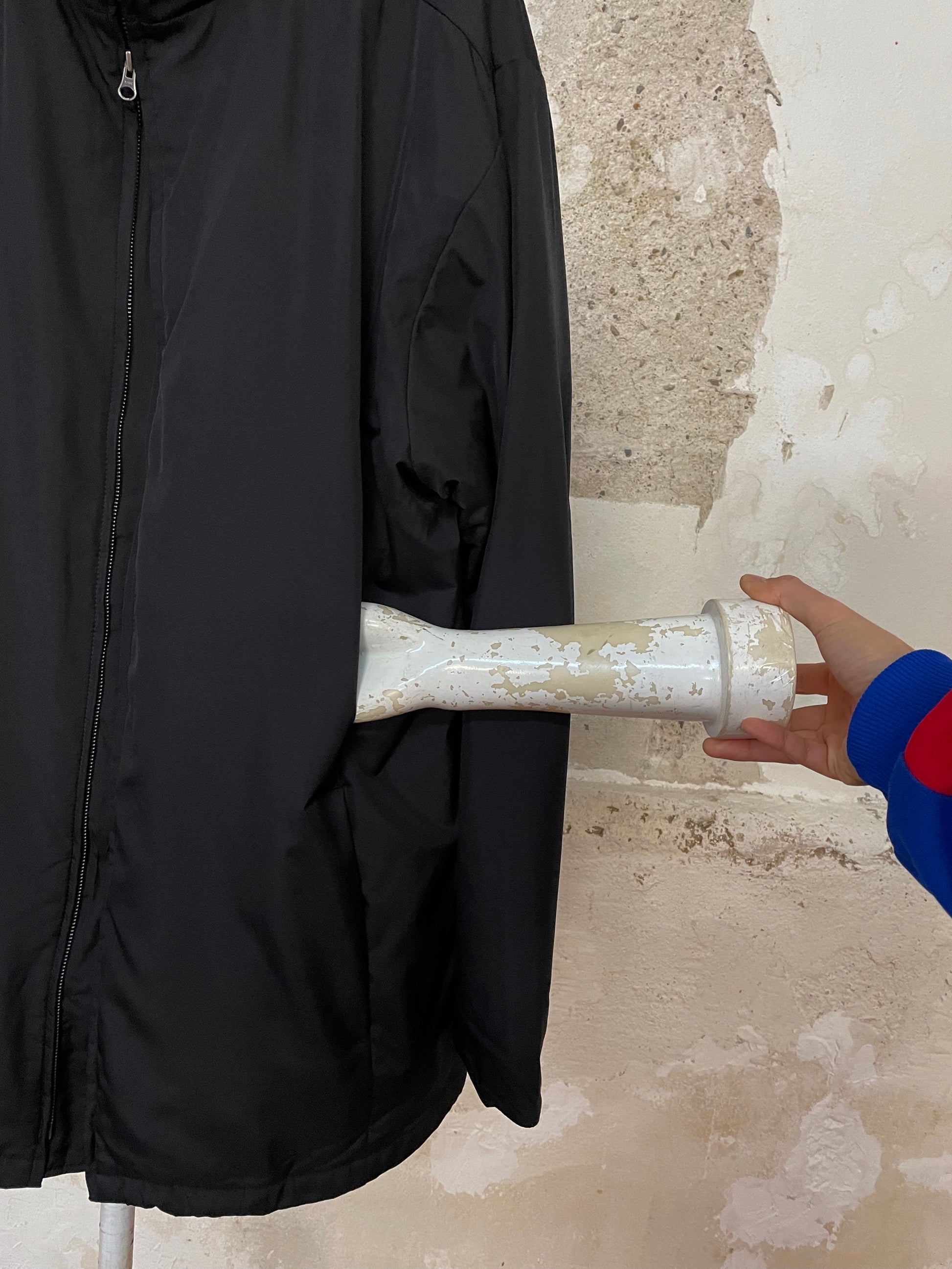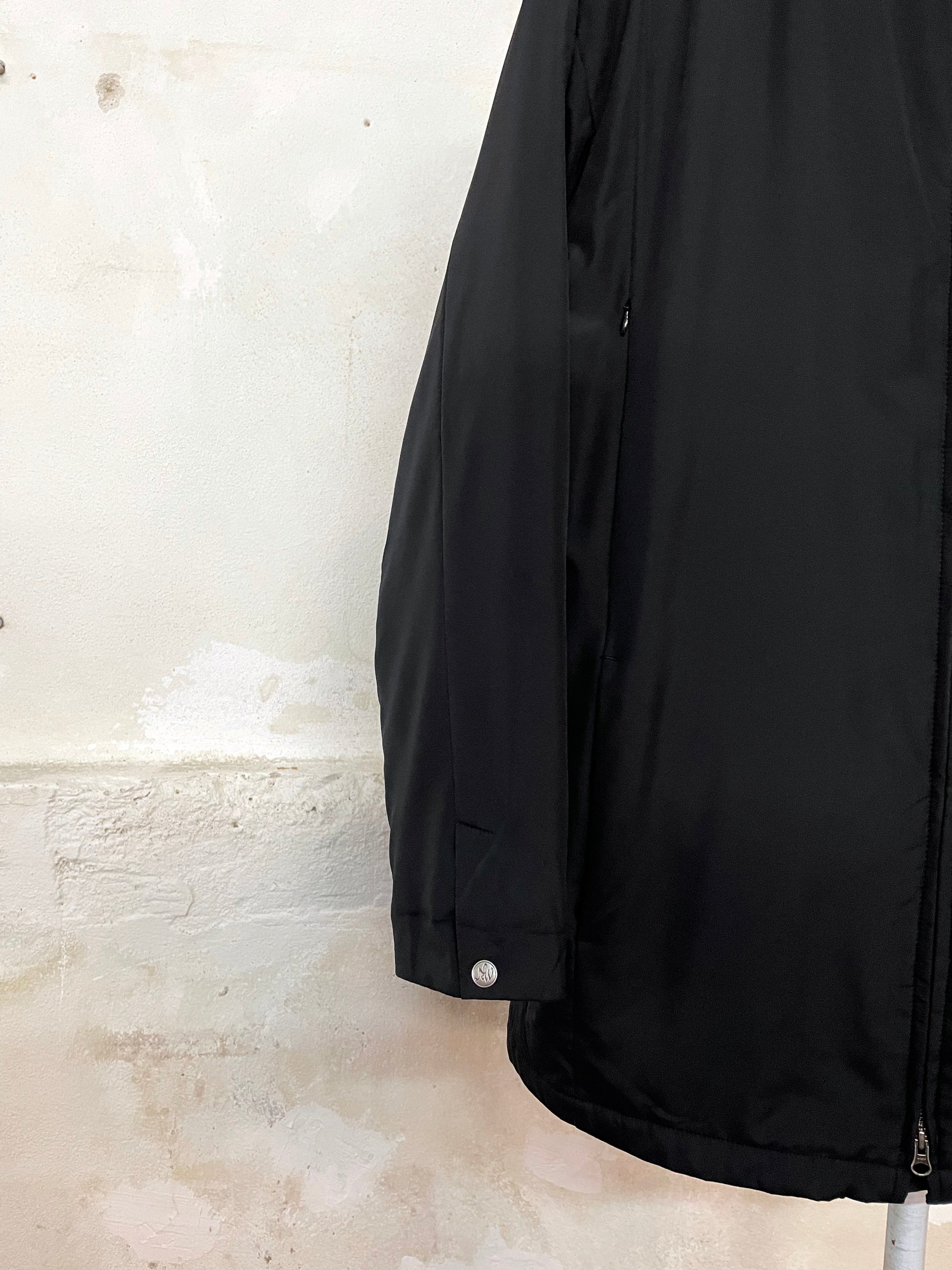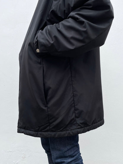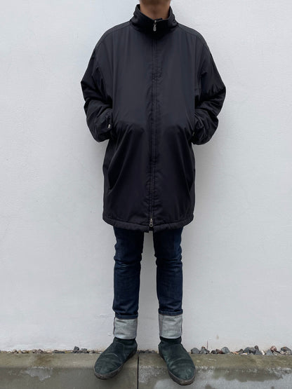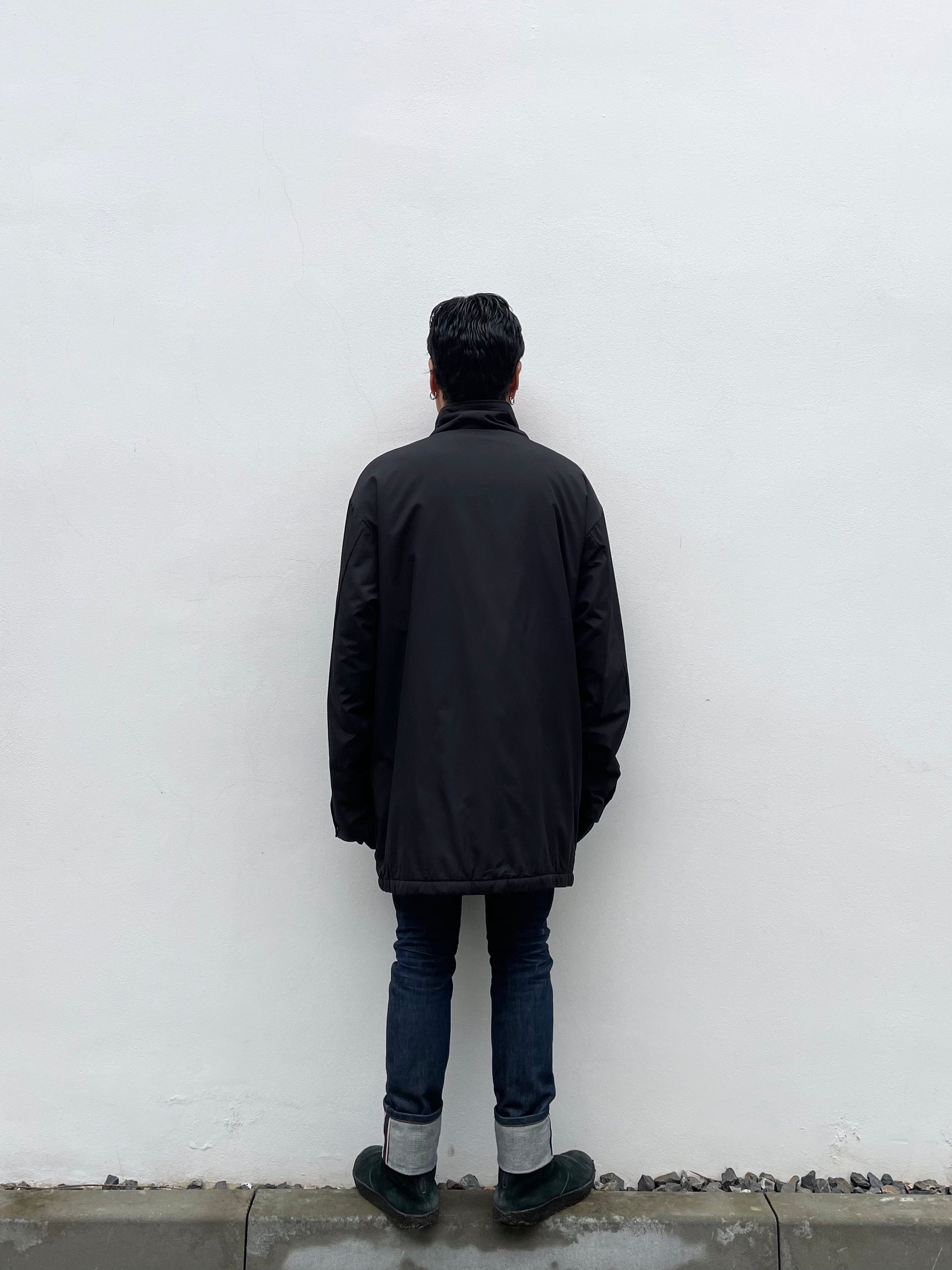 絶妙なハーフコート丈とシルエット。表面は表記ポリですが、触った感じはさらっとした質の良いナイロンみたいです。故に黒色のトーンがかっこいいのかなと思います。