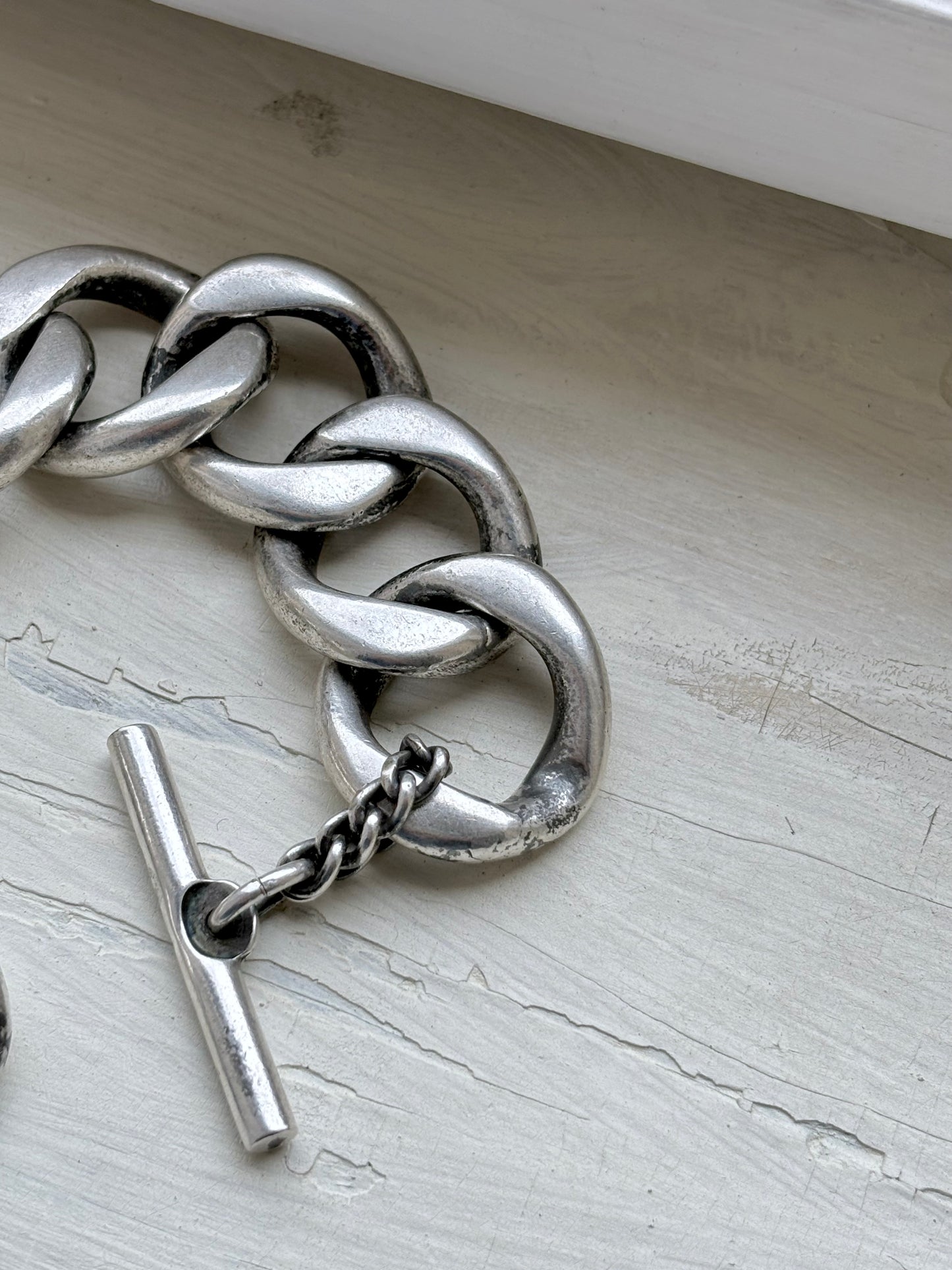 フレンチのチャンキーなメタルチェーンブレスレット。