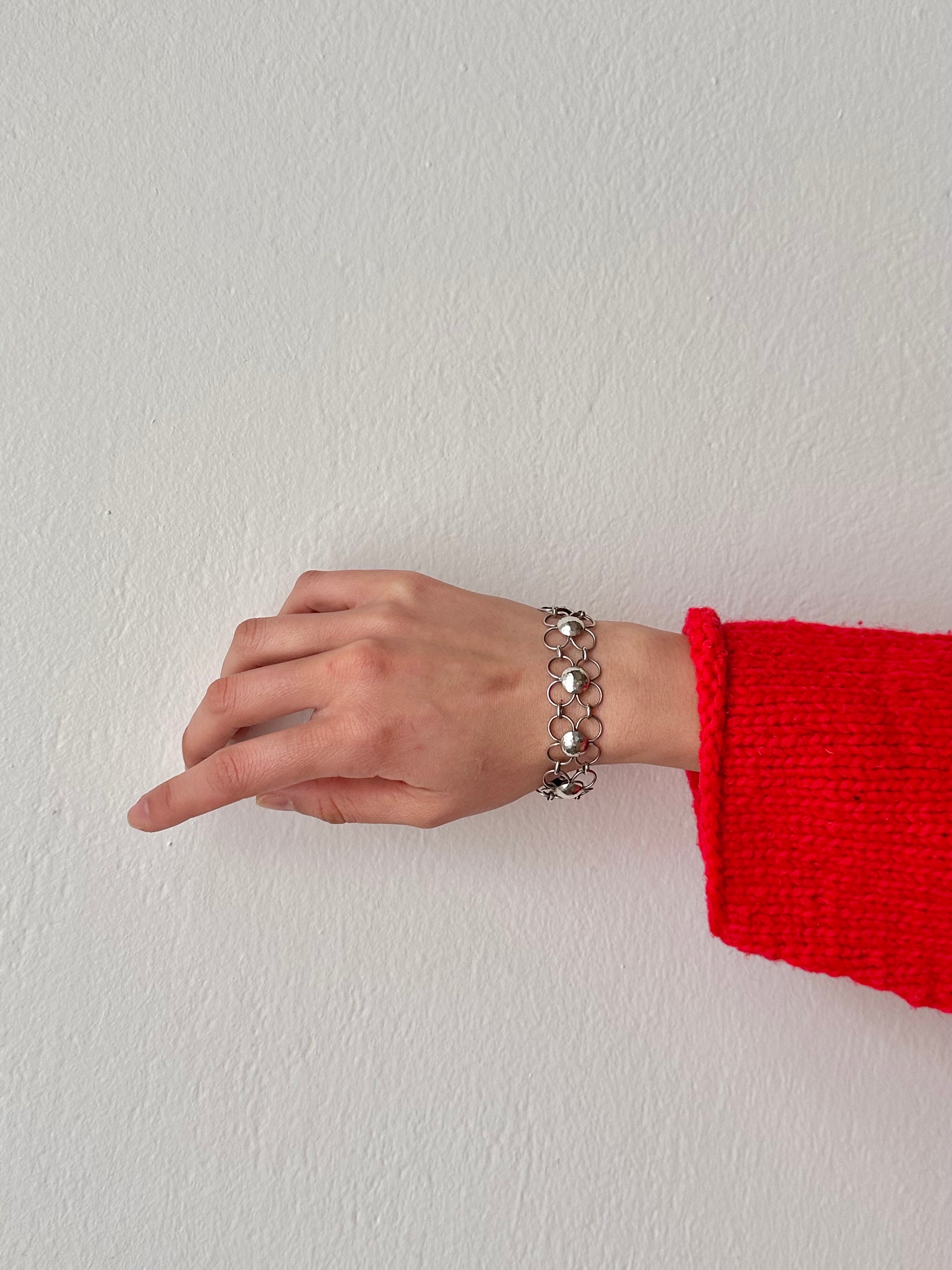 こちらはサイズ小さめに作られているので女性でも手首にきちんと止まります。