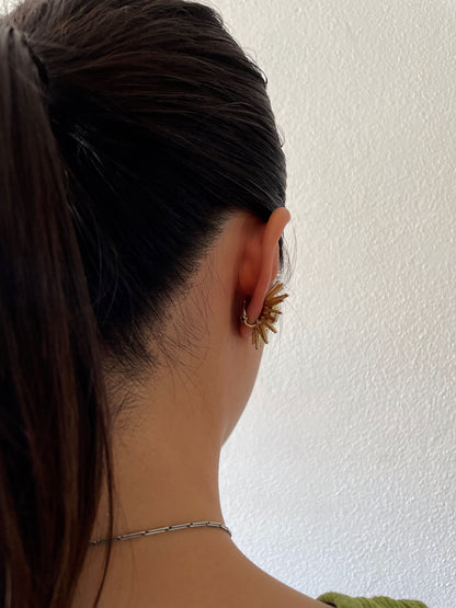 耳元で花が咲いてるような、華やかなゴールドイヤリングです。
