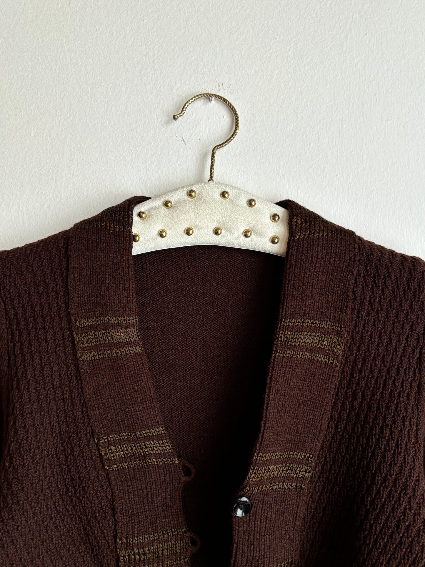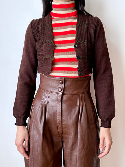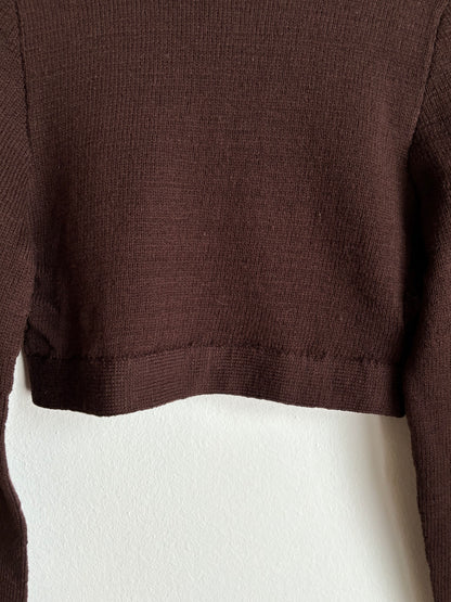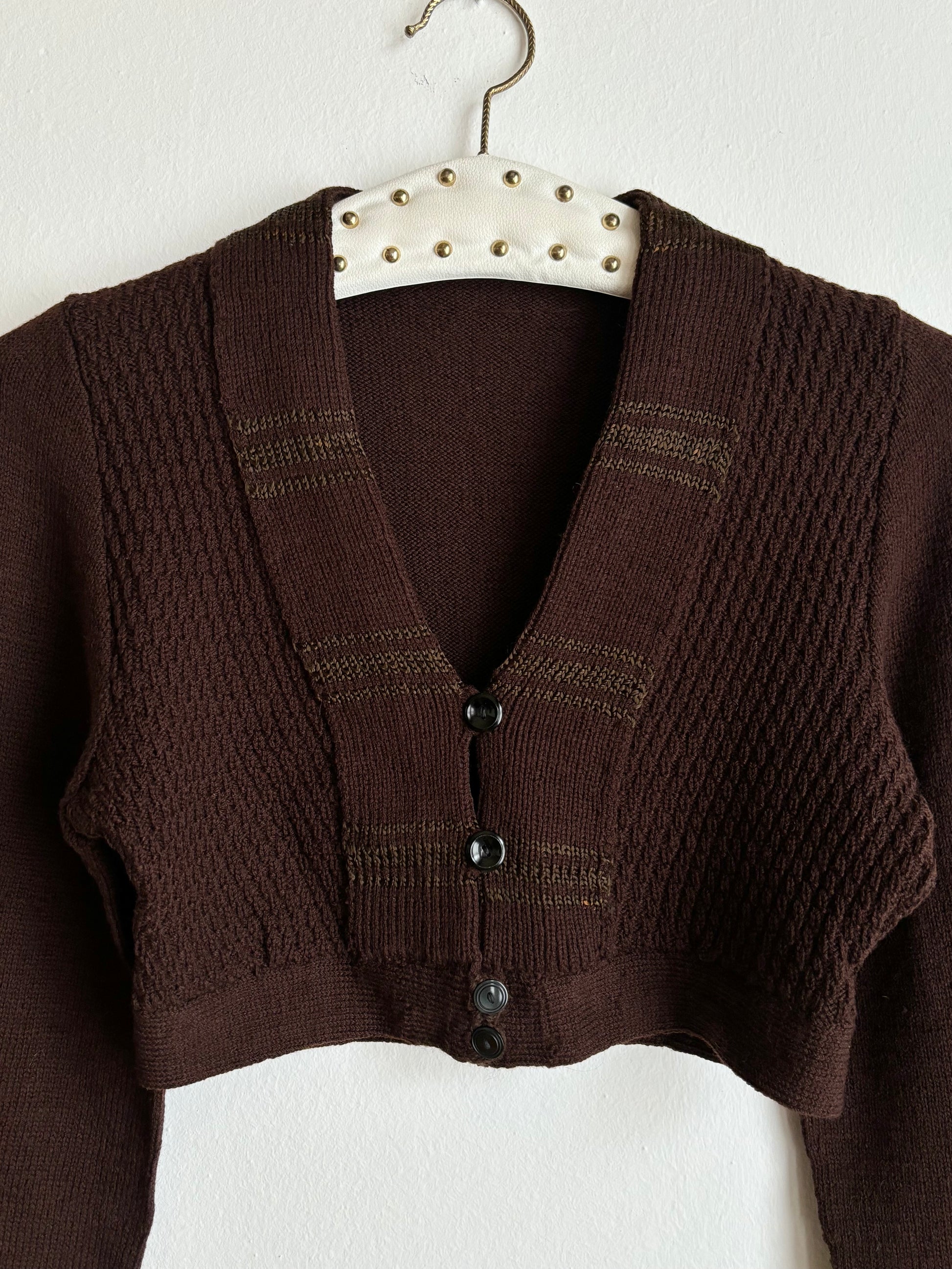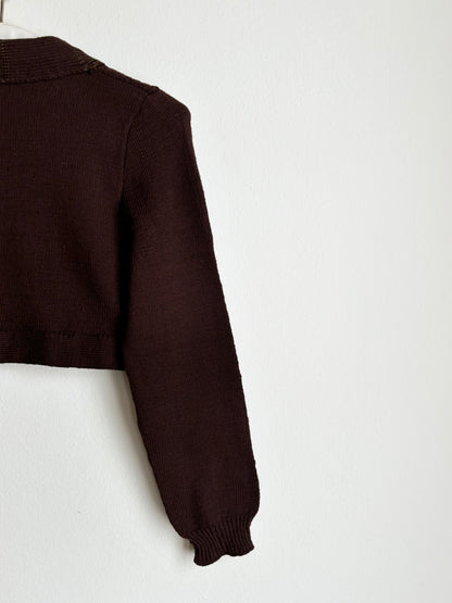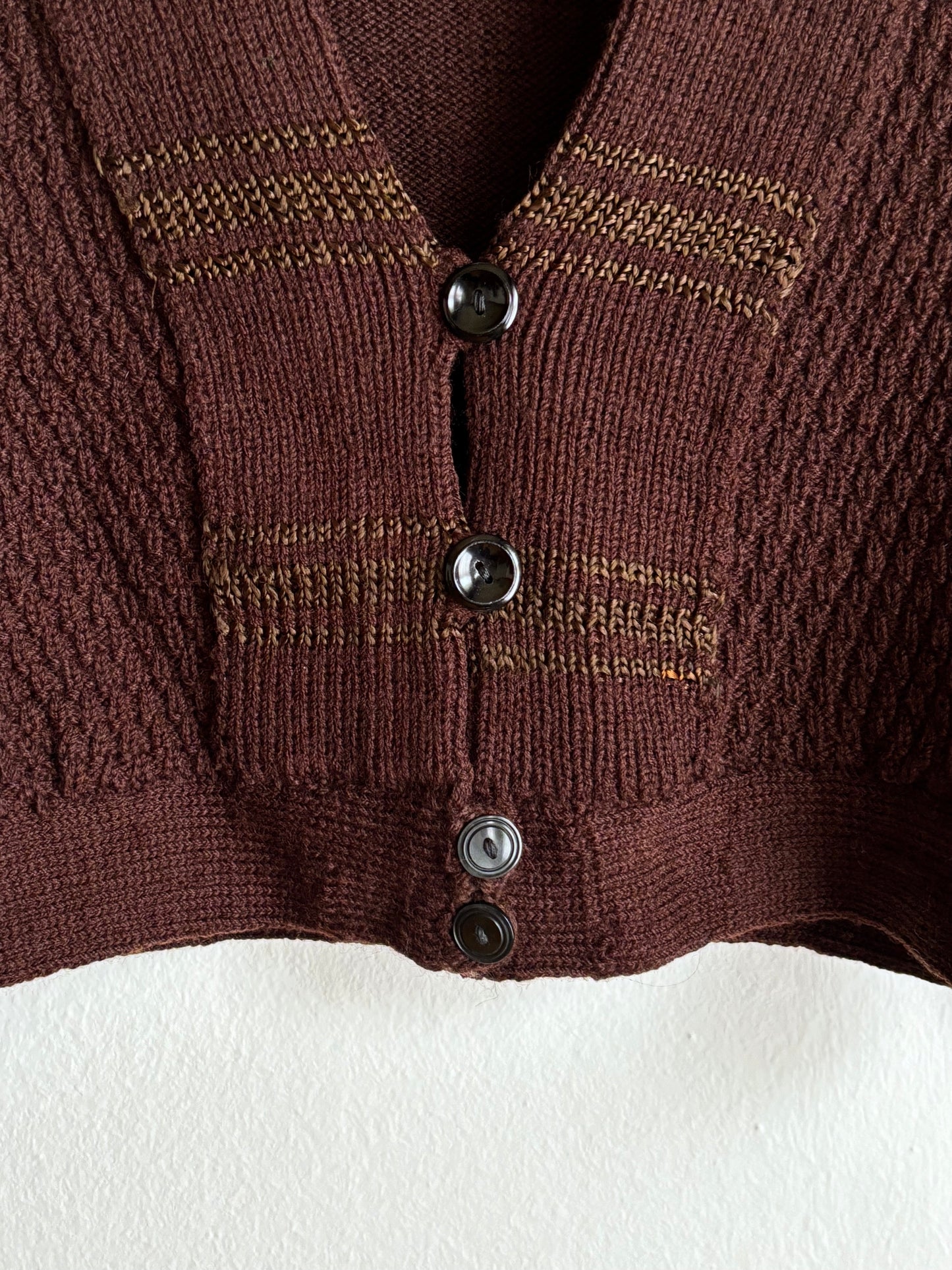 短い着丈にフロント4つのボタンのカーディガンタイプ。