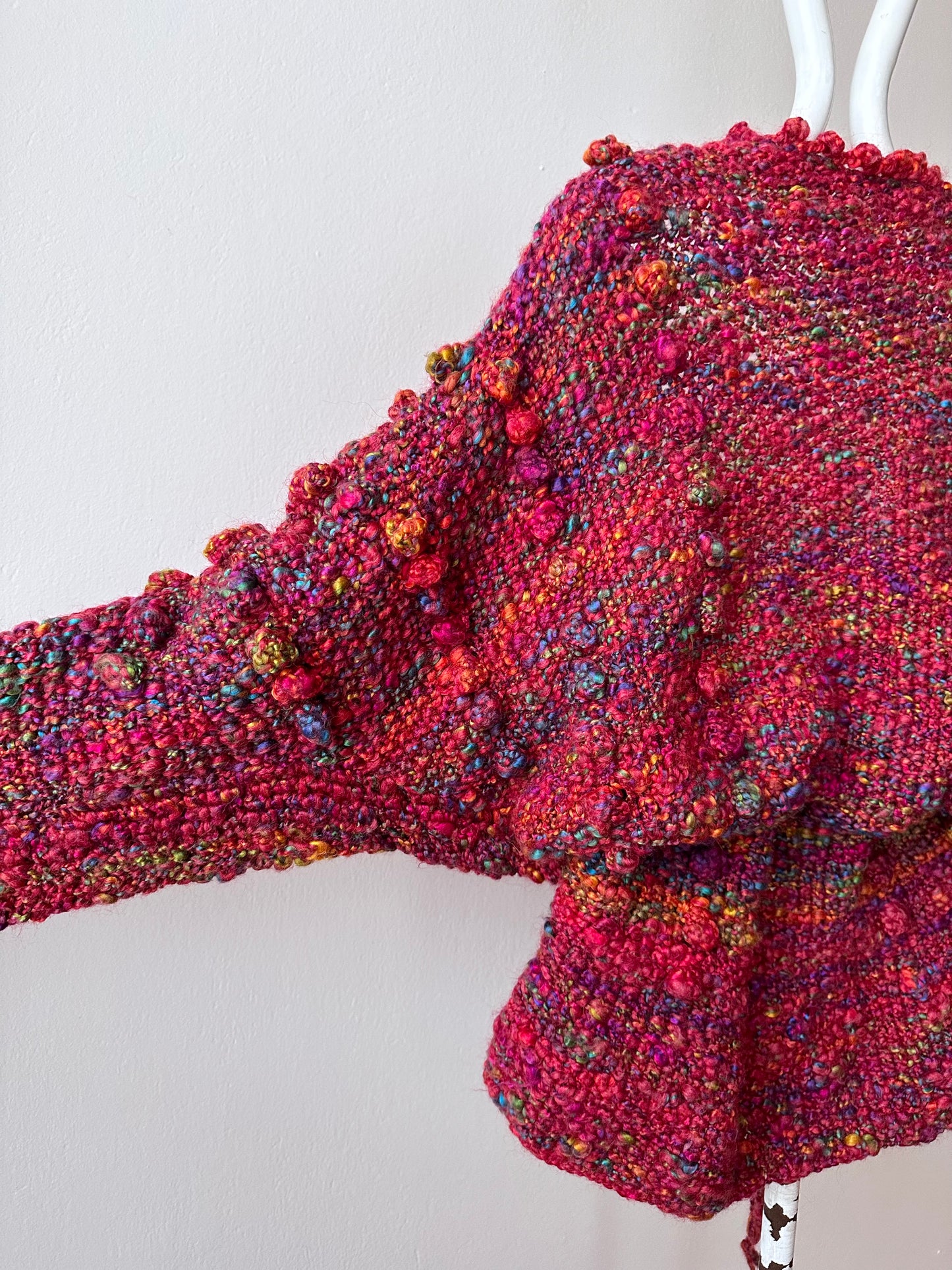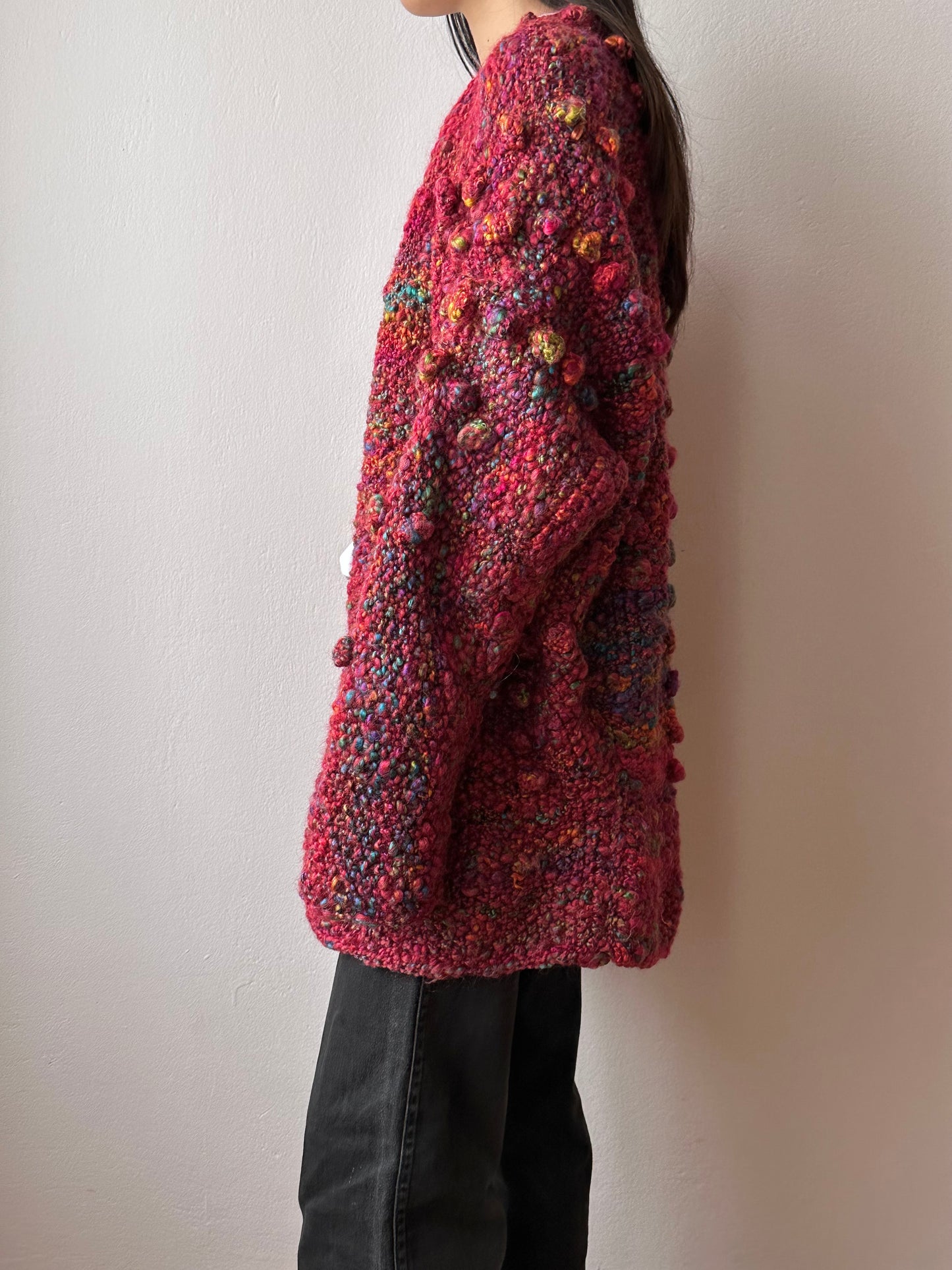 クランベリーカラーをベースに、様々な色が混じってハッピーカラフルなカラーリングです。