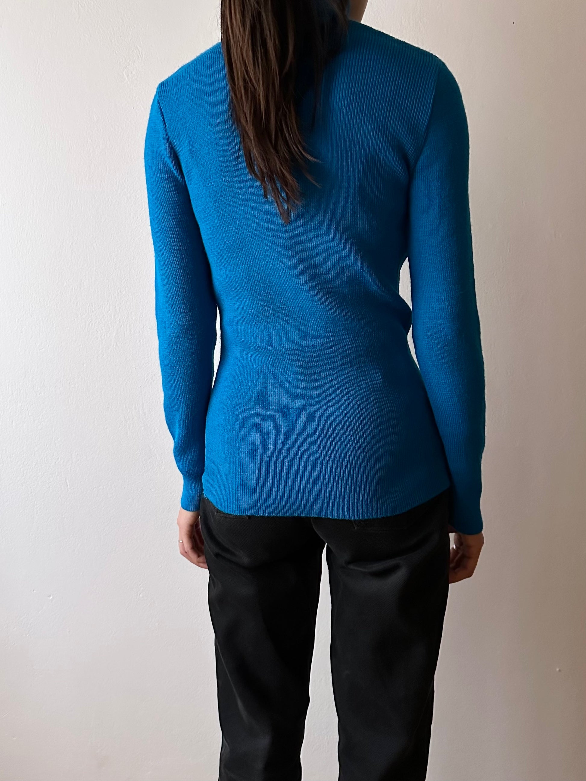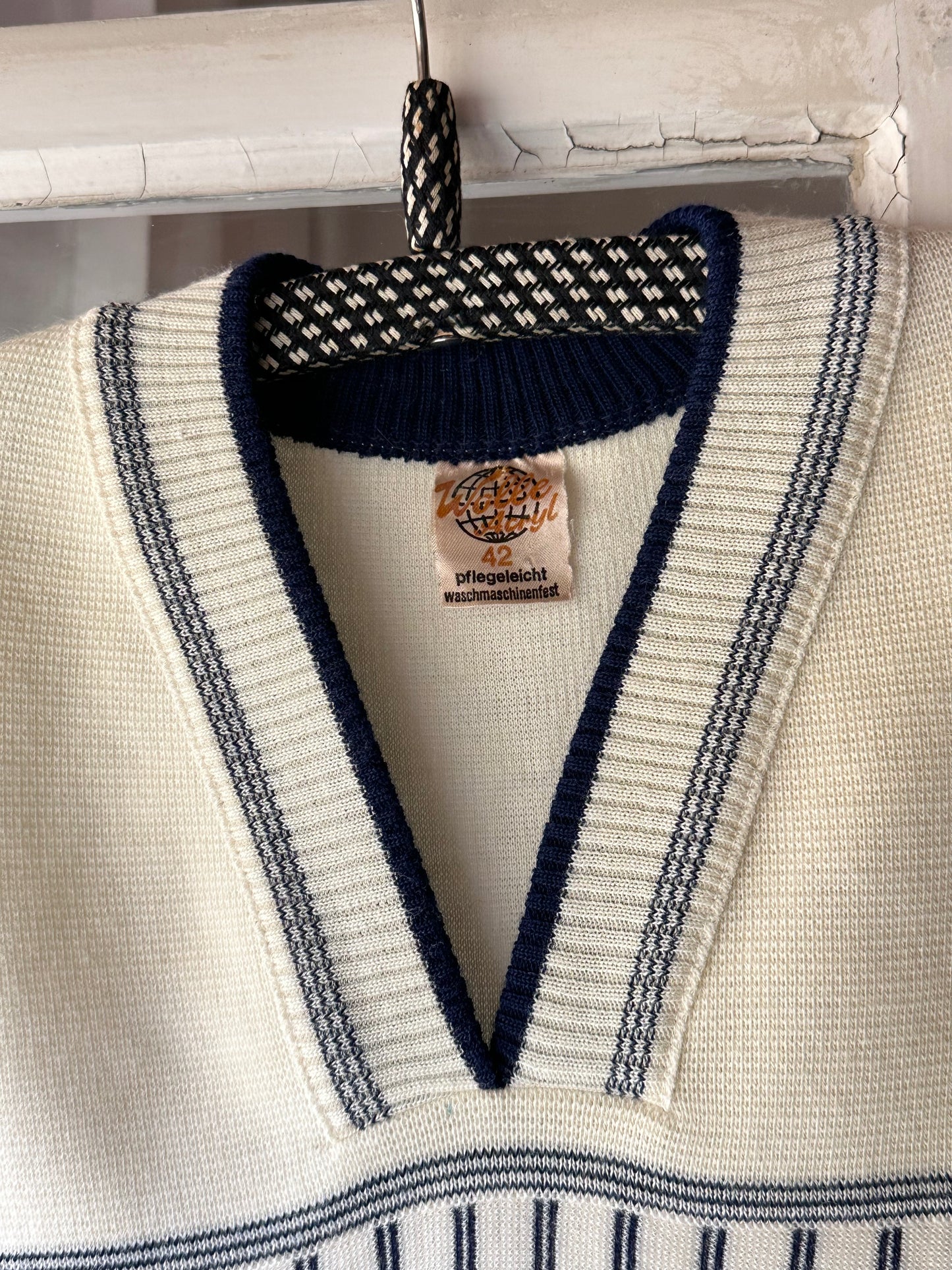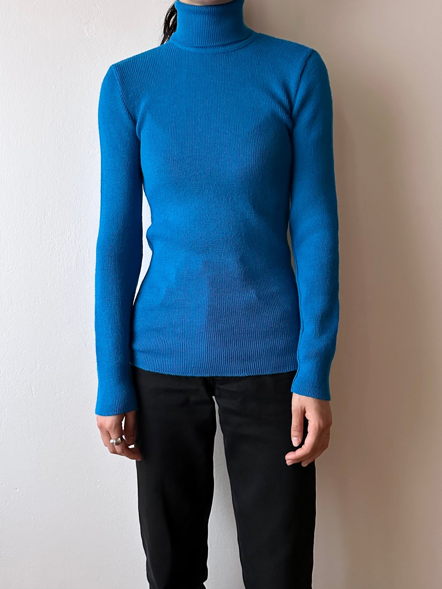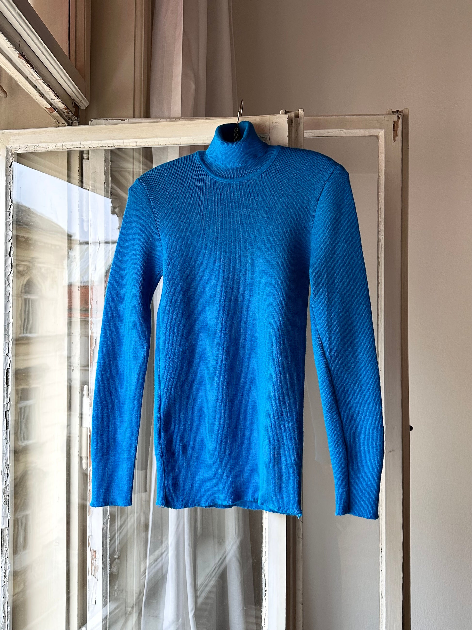 綺麗なブルーのタートルネックニット(そのまま良い色味出せた)、それに合わせたネイビーピンストライプの爽やかなニットベスト、そしてチェック柄のちびニットです。