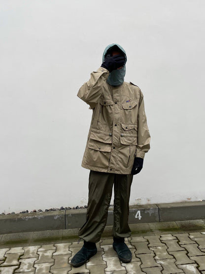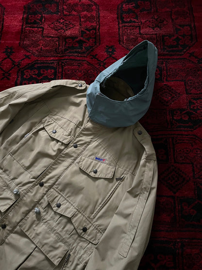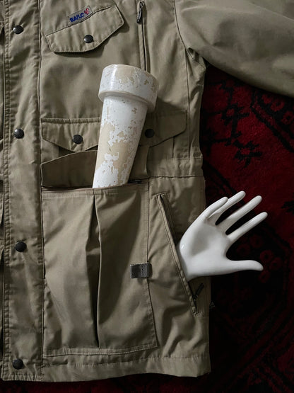 両裾サイドから後ろにかけてある大きなポケットは繋がっていて1つの空間になっています。ハンティングジャケットのゲームポケットみたいです。
