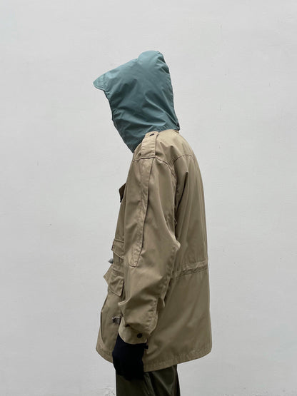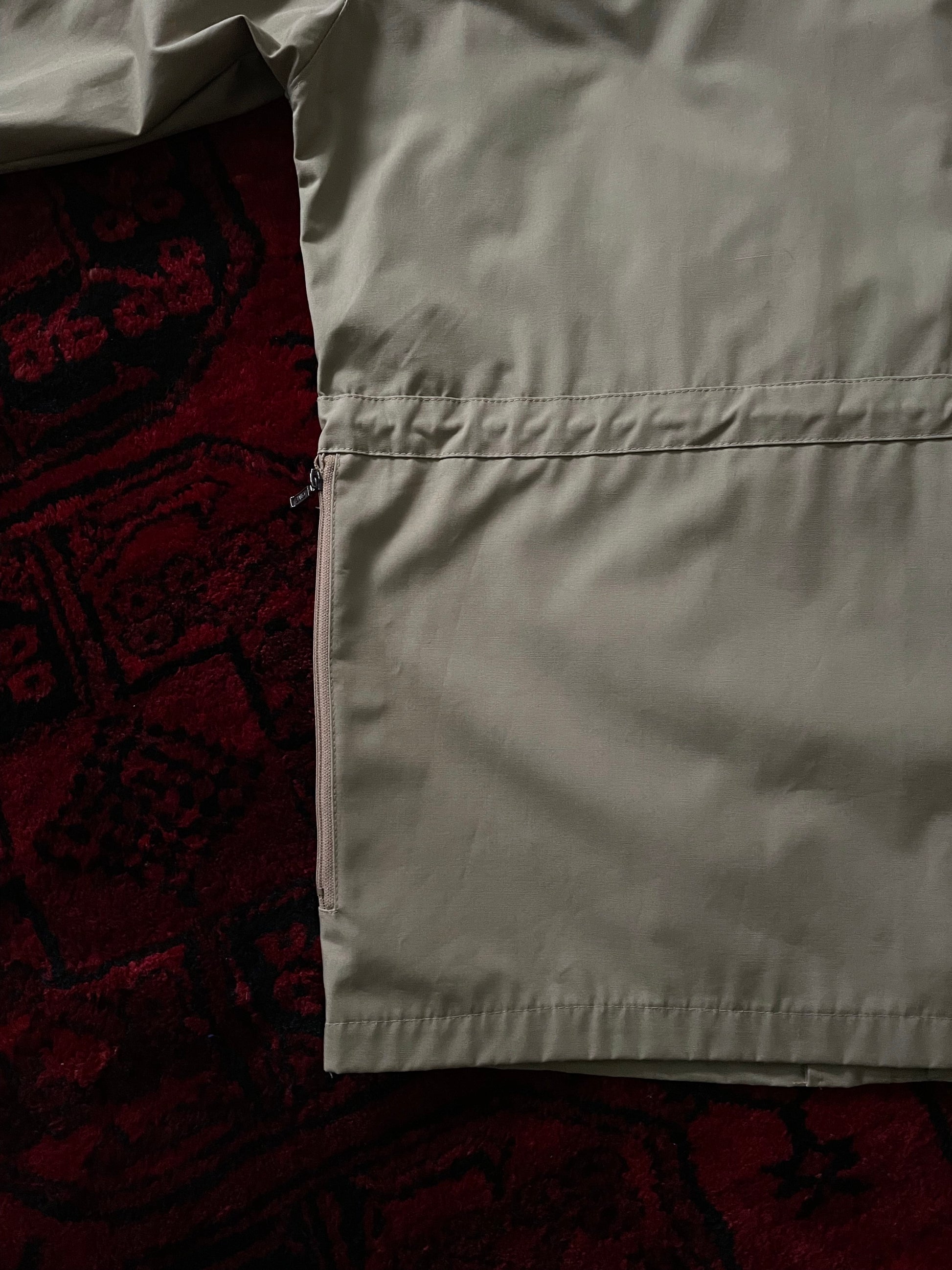 ポケットの付き方、ベンチレーションの位置も変で、フードは水色(取り外し可能)、後何よりも生地が素晴らしいです。。