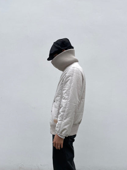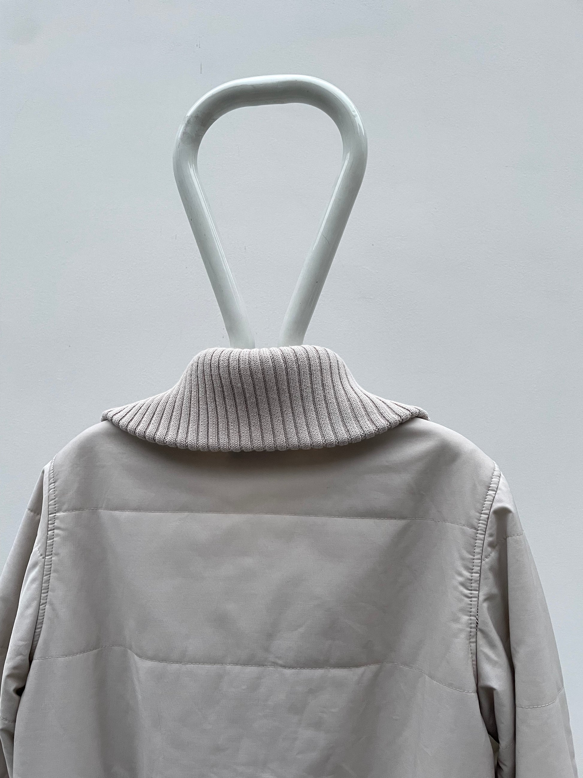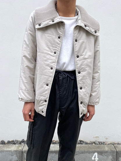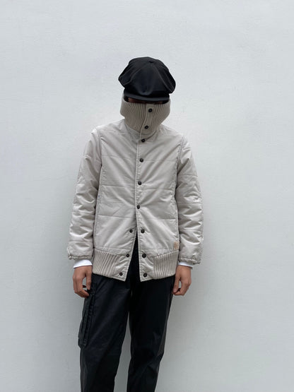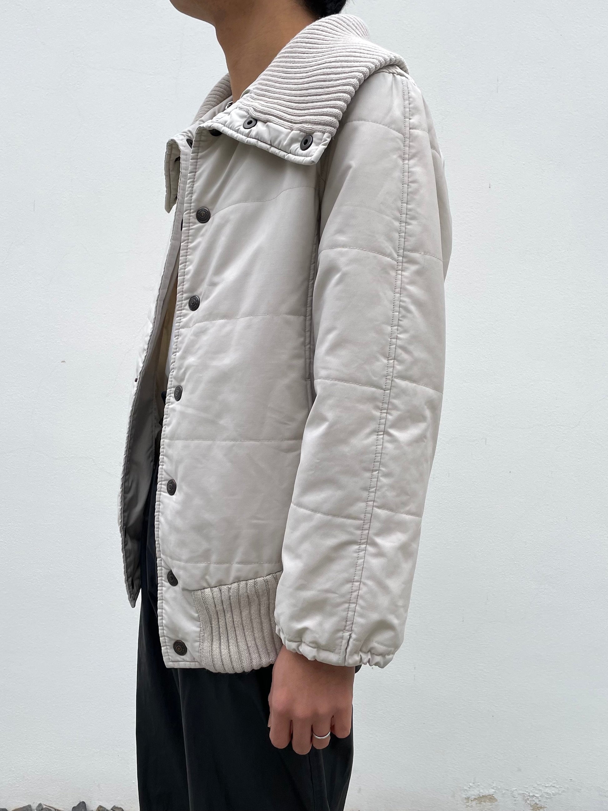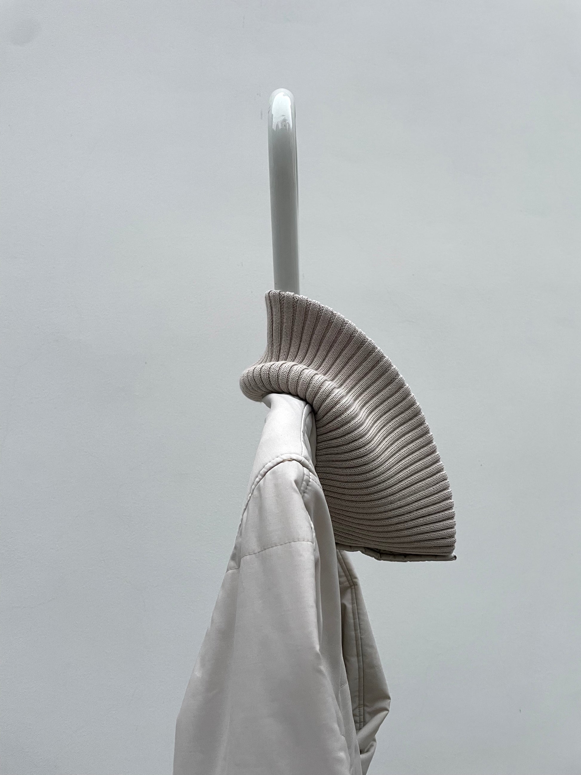 パッと見いなたい色味ですが、着てみるとしっくり、高いネックもシンプルにかっこいいです。全部閉めても、開けて襟を作って着ても良い。