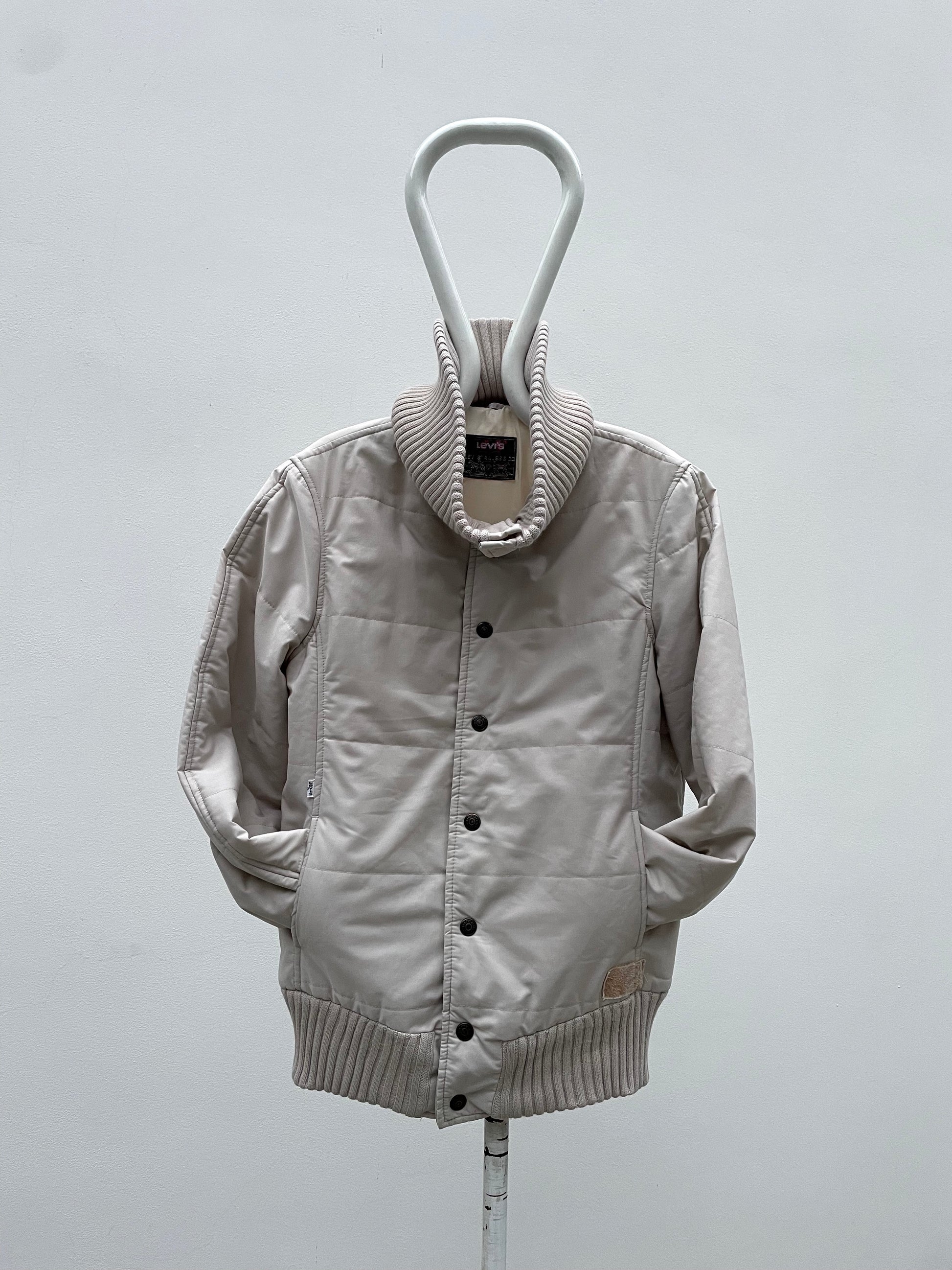 ポケットはフロントに2つ、内側に1つ、かなり削ぎ落とされたデザインですが、ボディ素材もタフですし、ニット部分はコットンなのでチクチクせず、肉感のあるしっかりしたコットンニットで流石リーバイス、素材、作りがしっかりしているなぁと感じました。