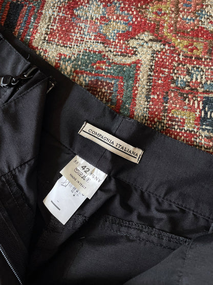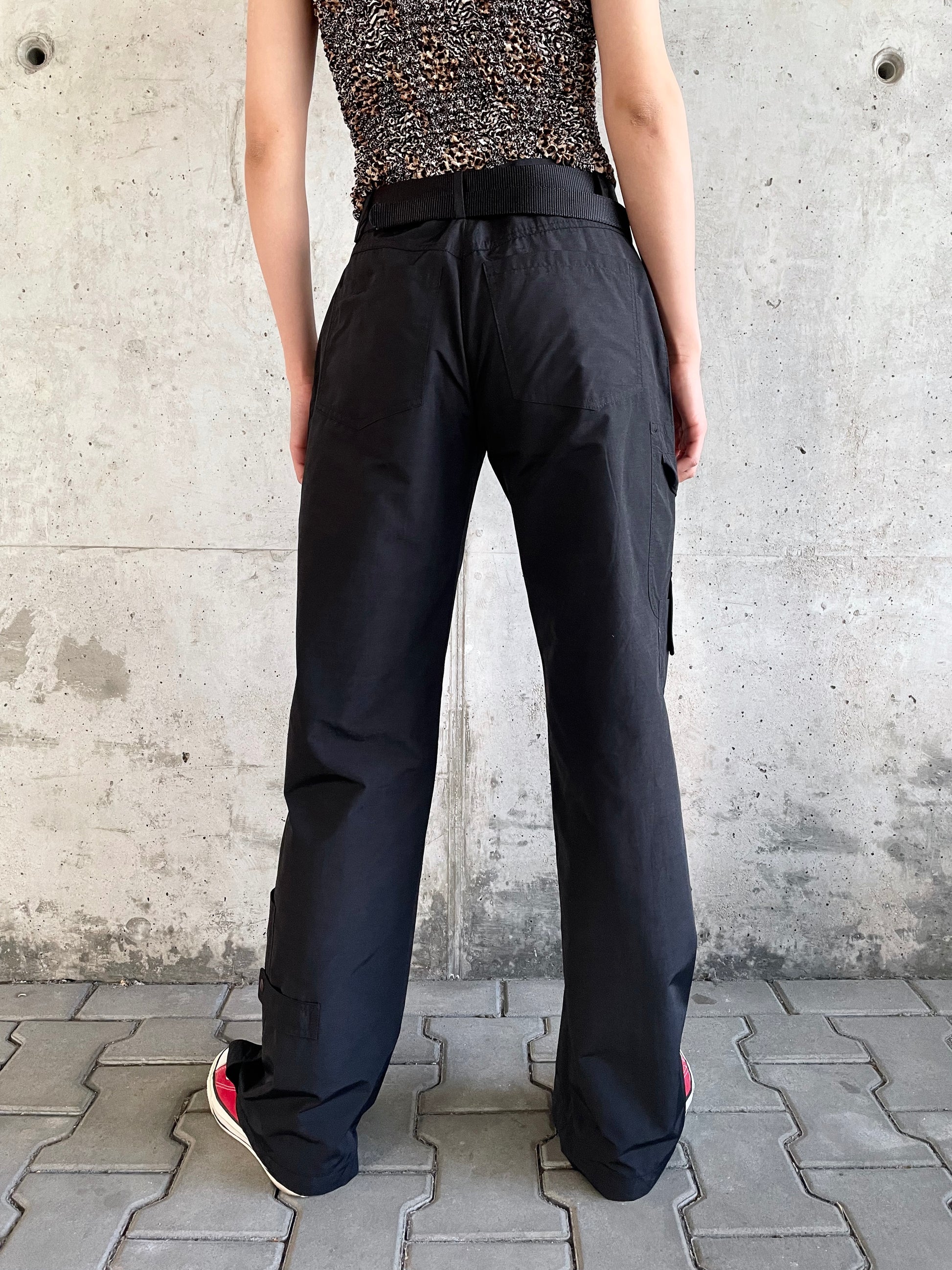 時代的なローライズが格好良くて、へそが綺麗に見えます。