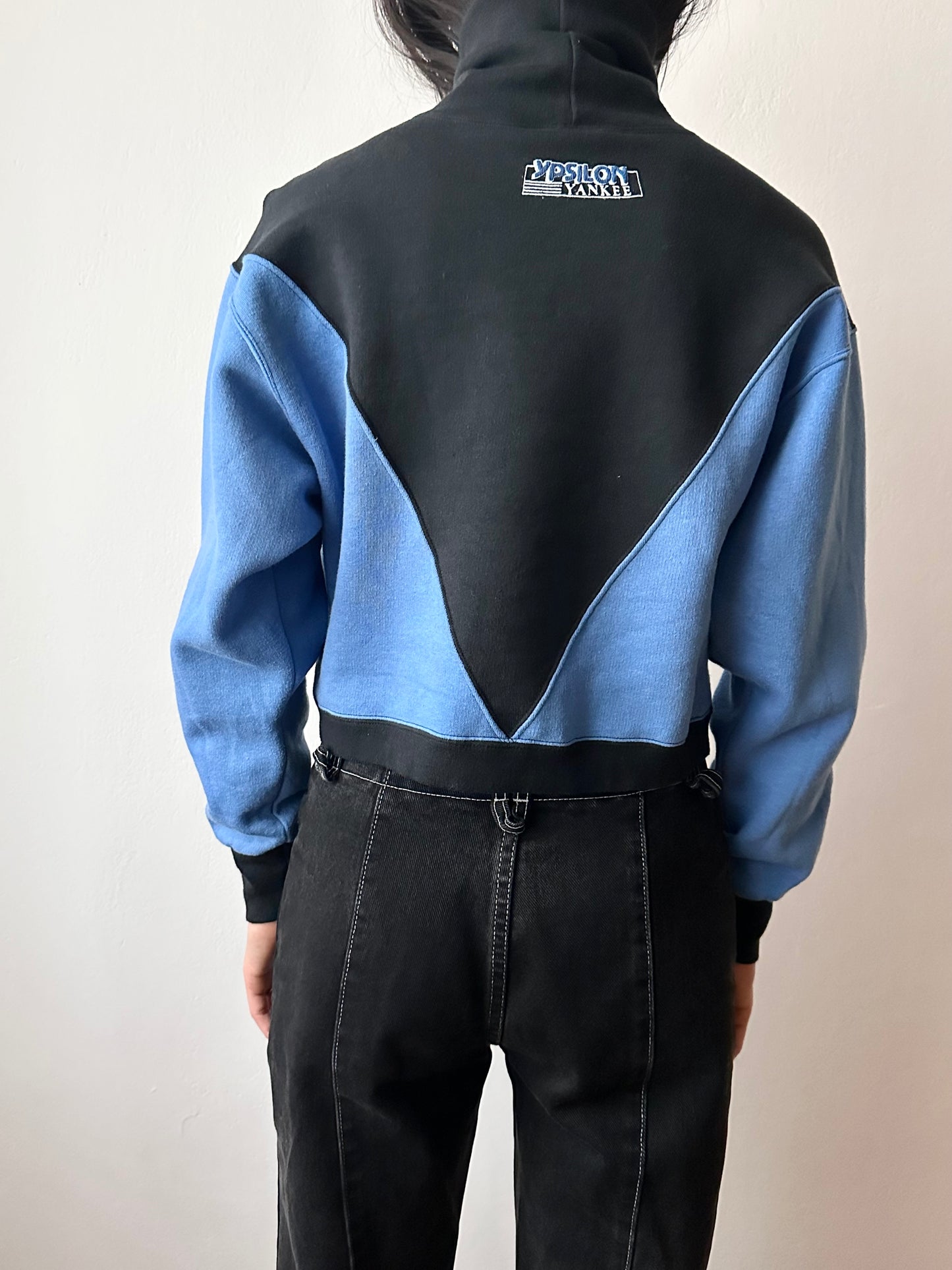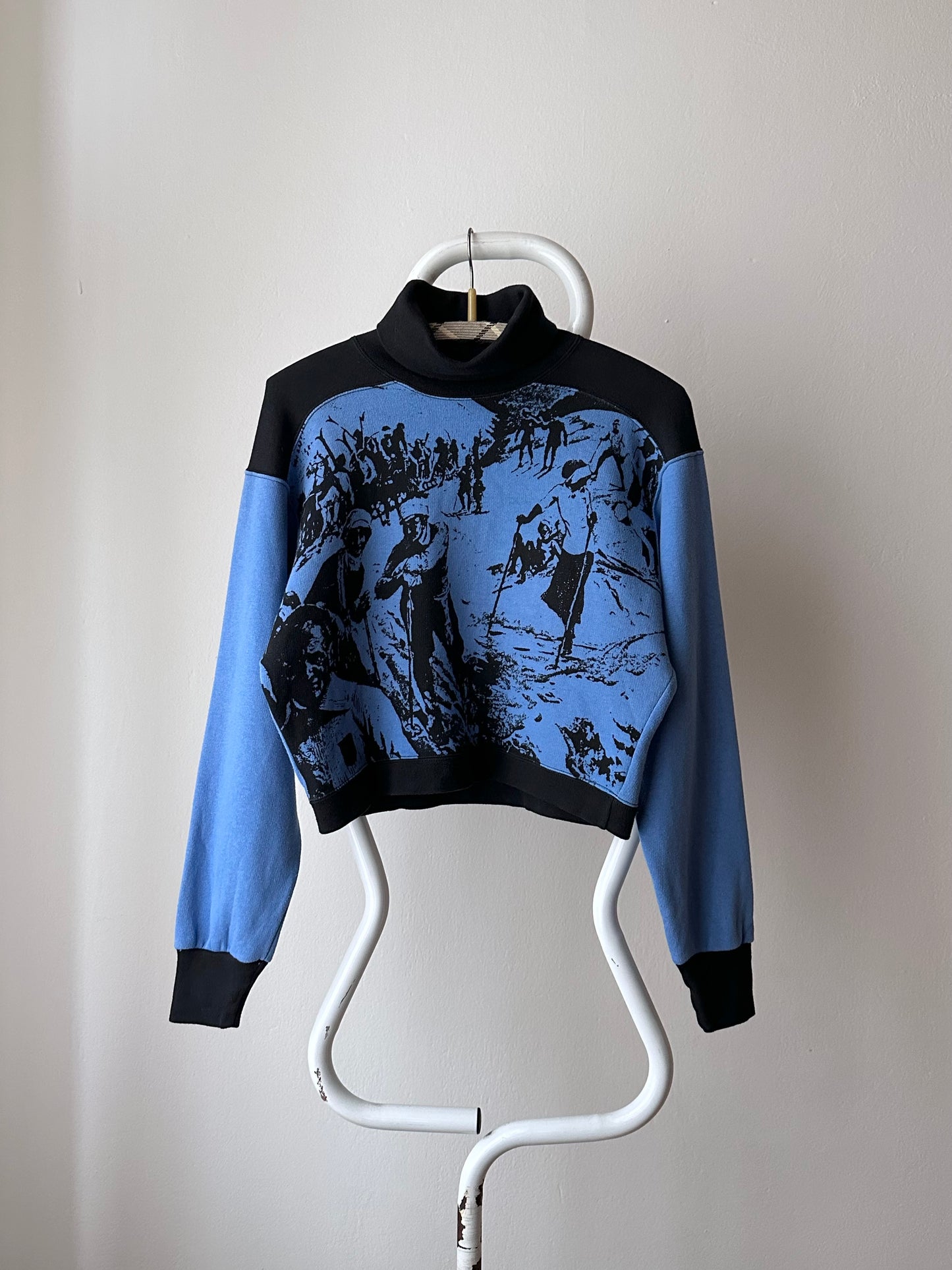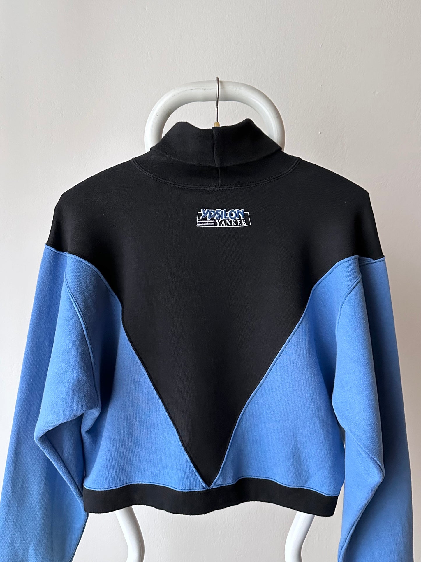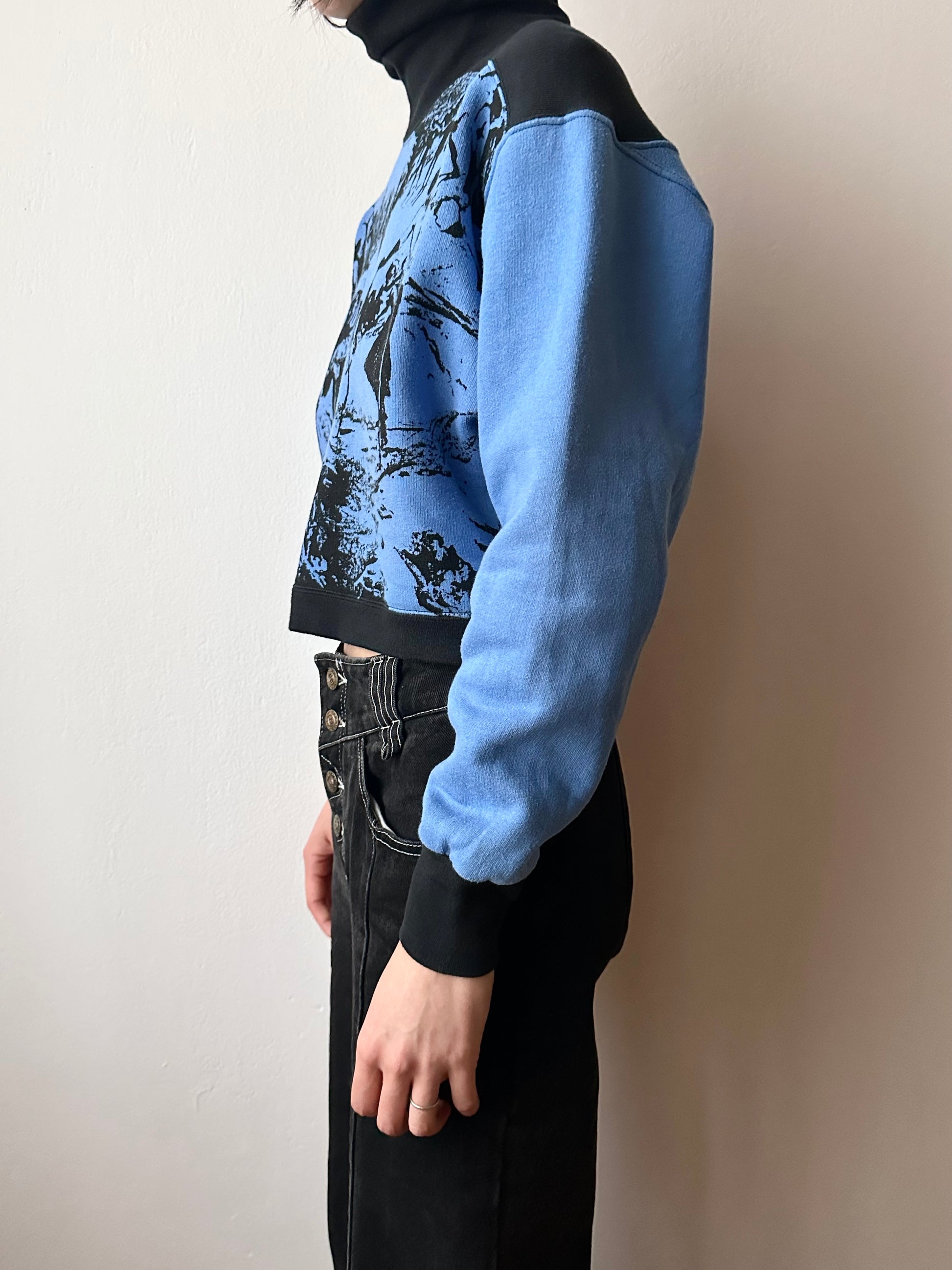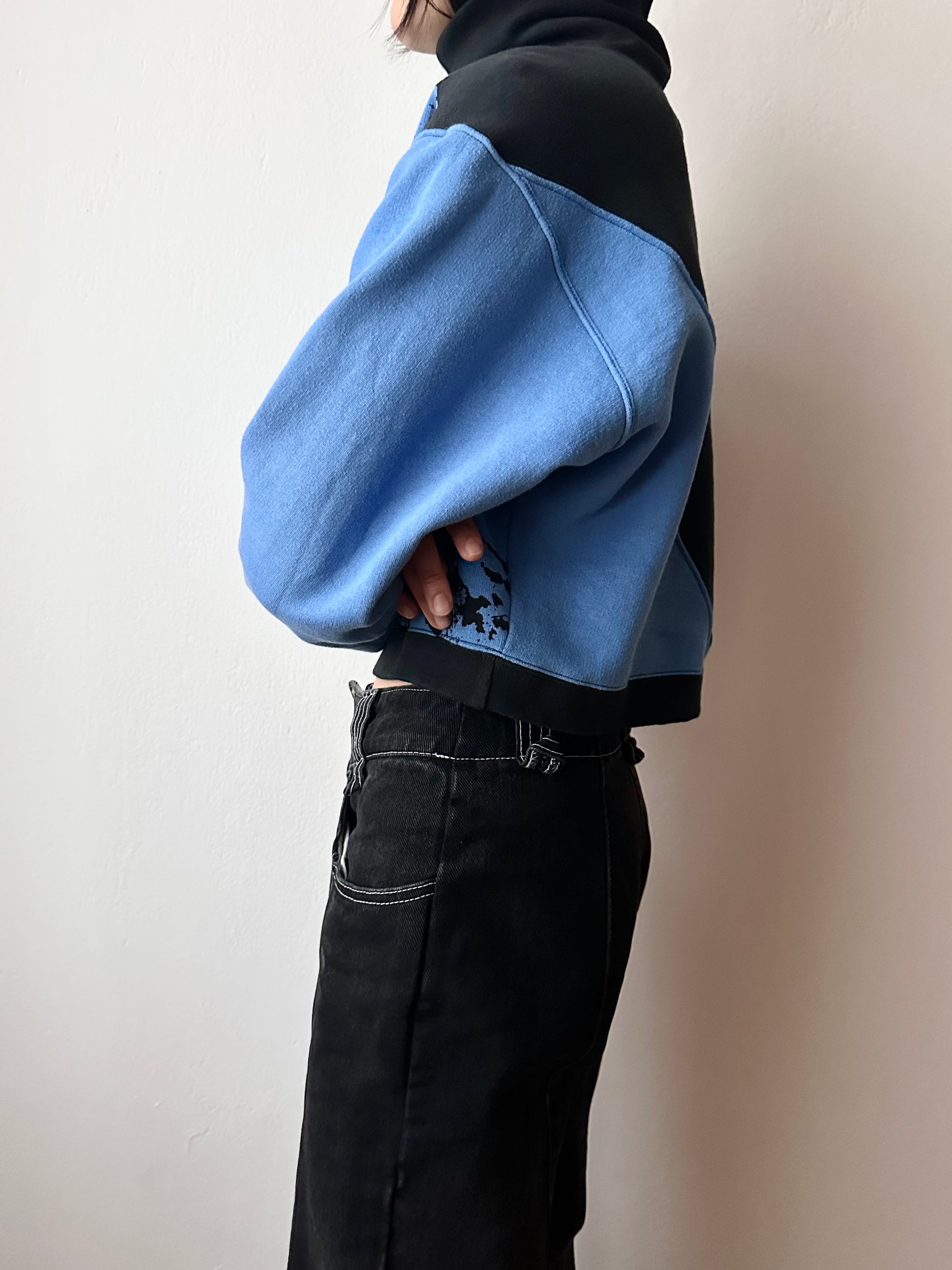 まずトップス。クロップドのタートルネック。首は折っても折らなくても可愛いです。