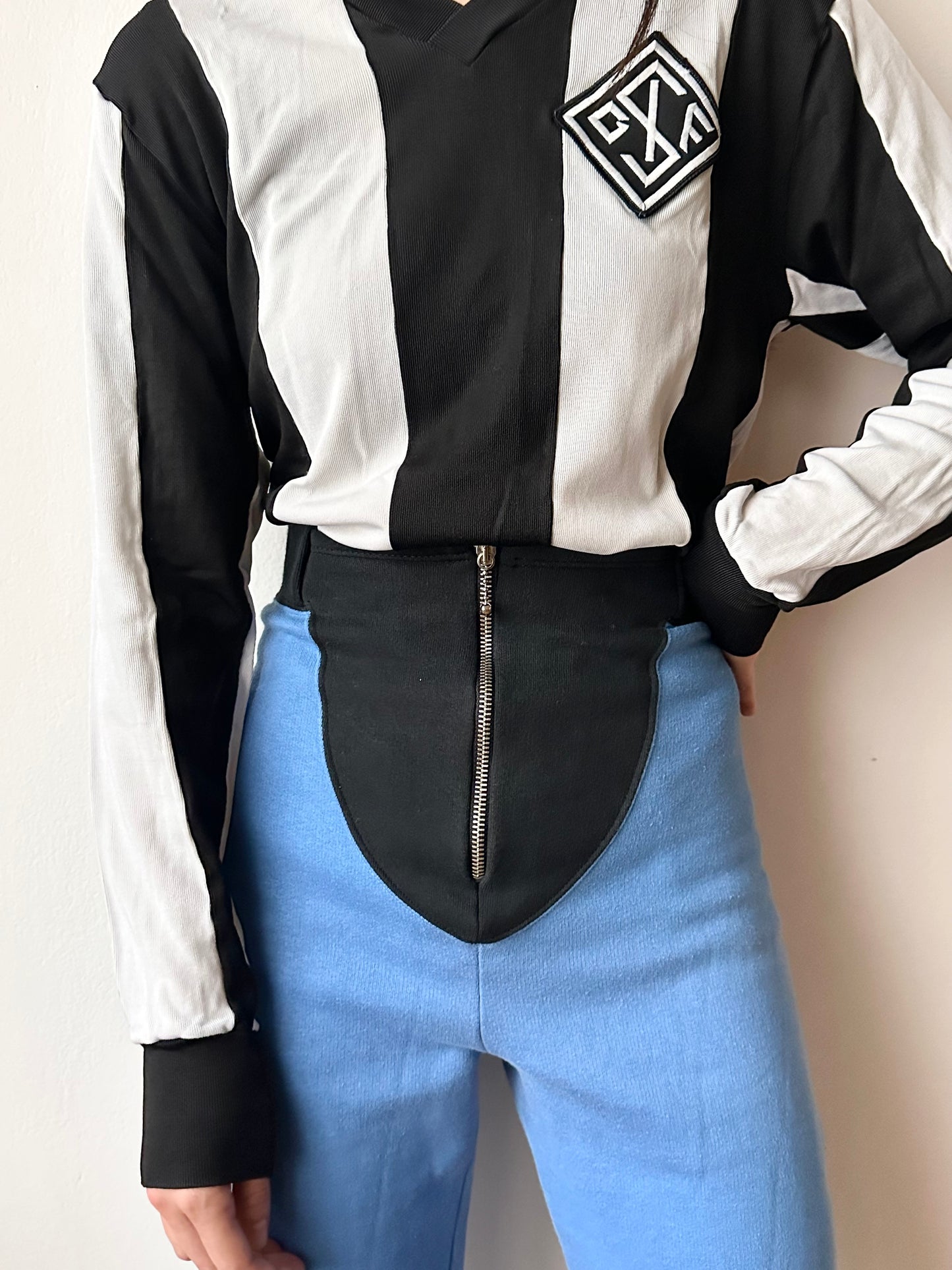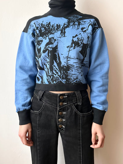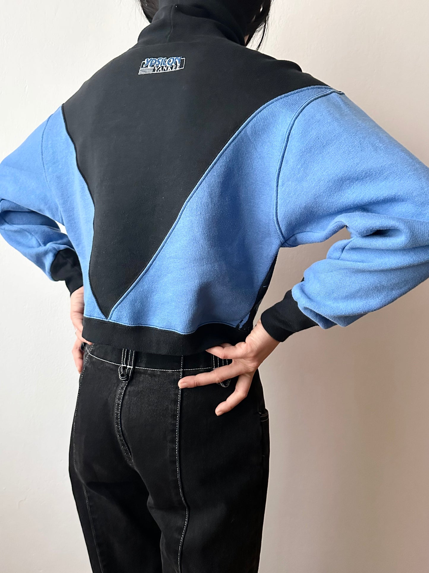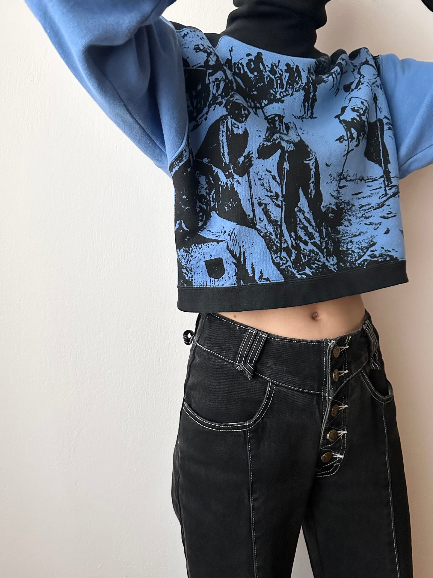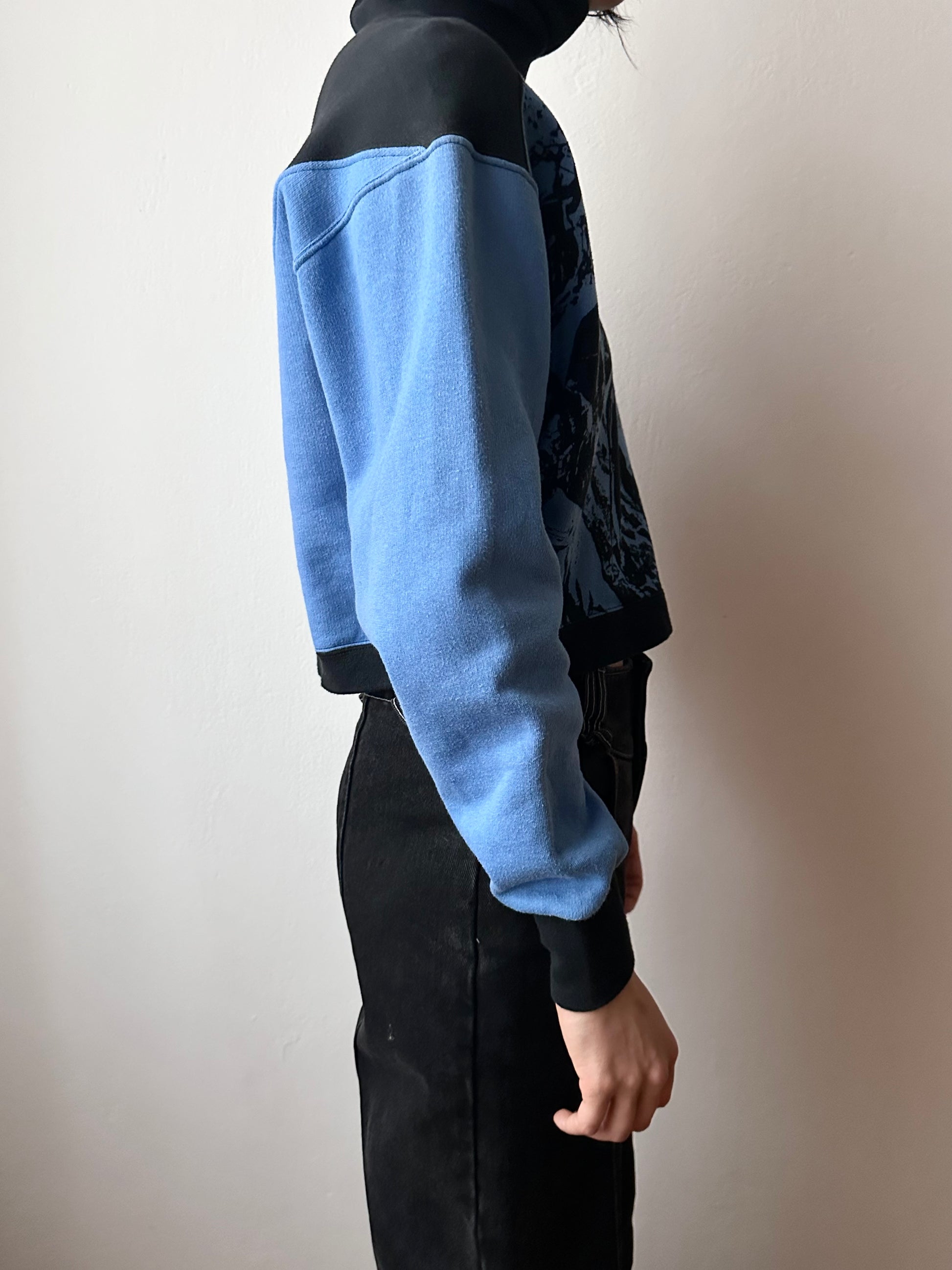 まずトップス。クロップドのタートルネック。首は折っても折らなくても可愛いです。