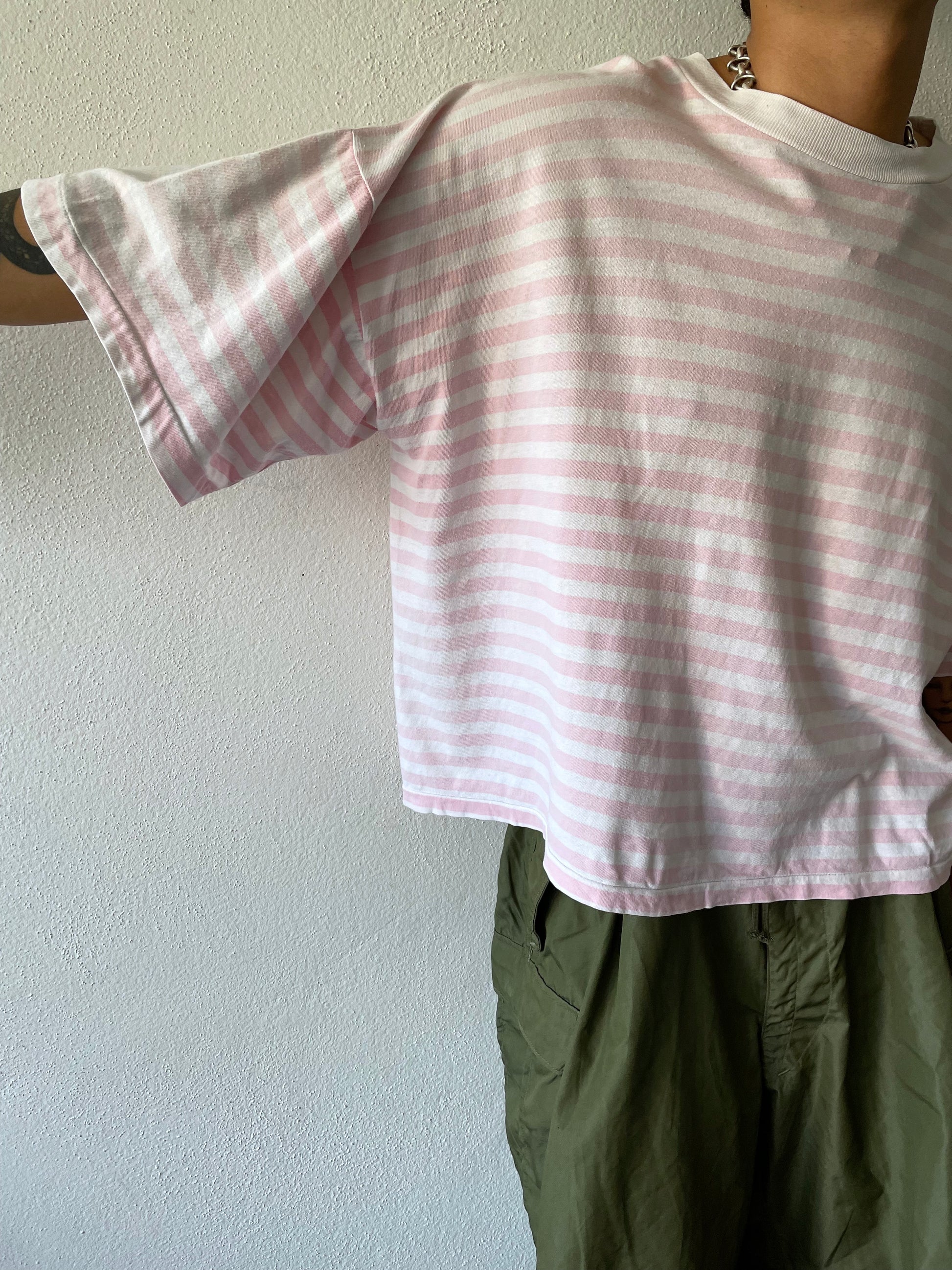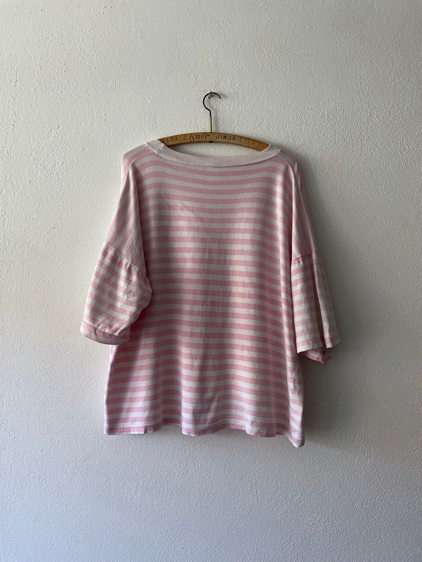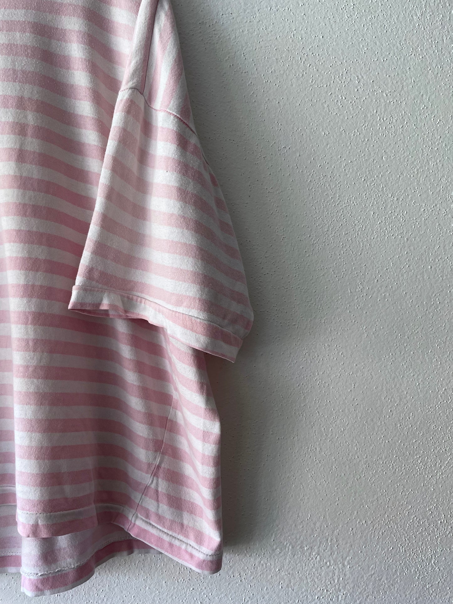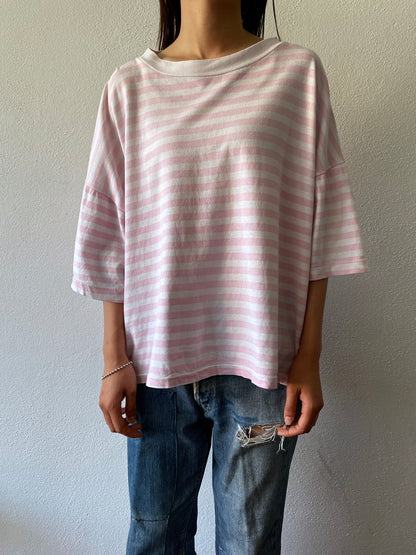 薄くなったコットン素材に、フェードしたピンクストライプ。