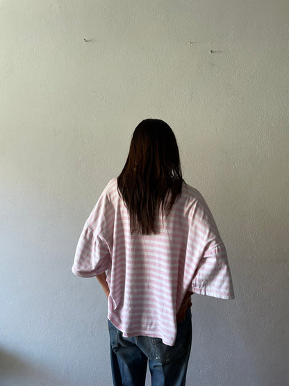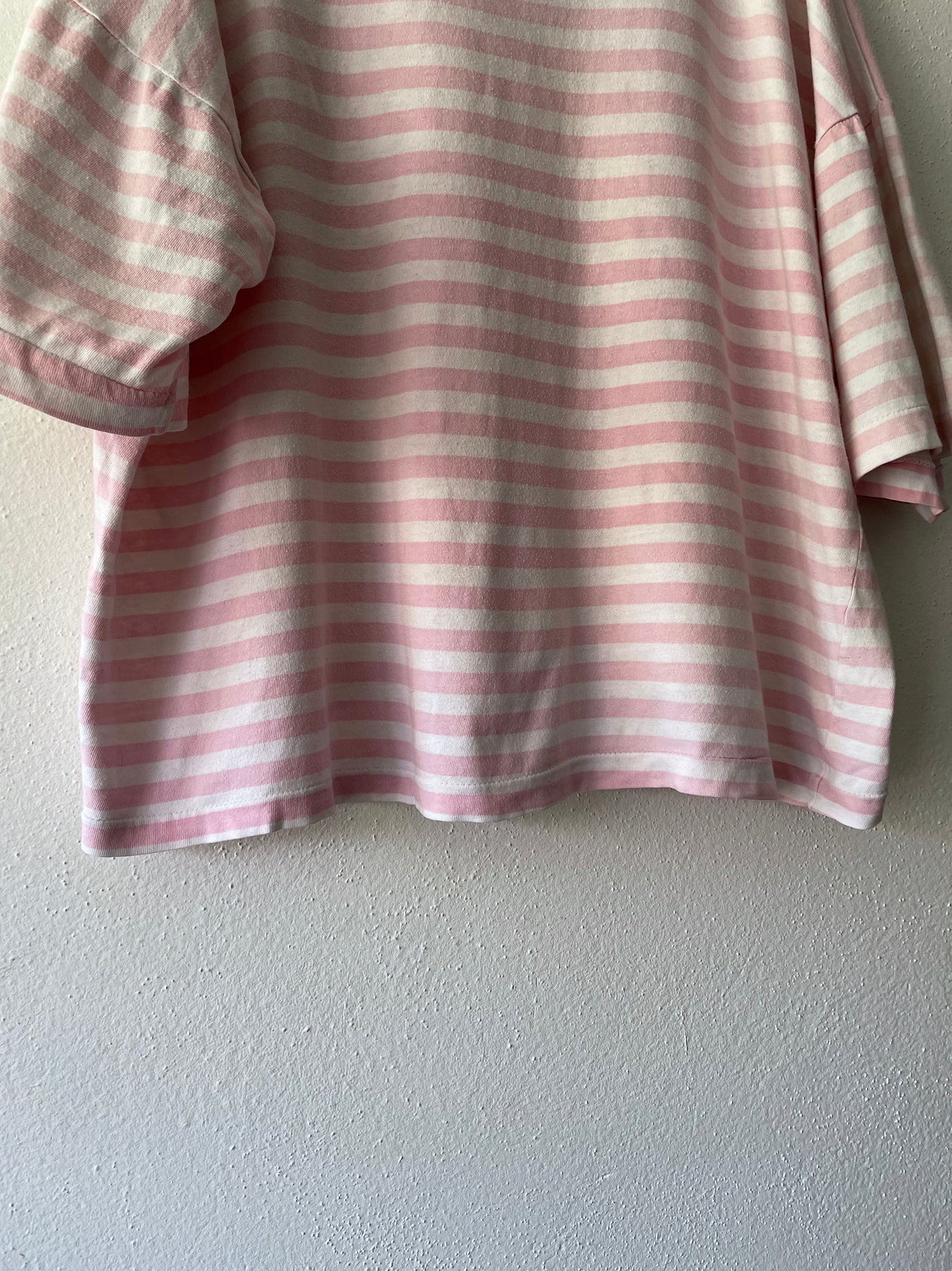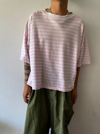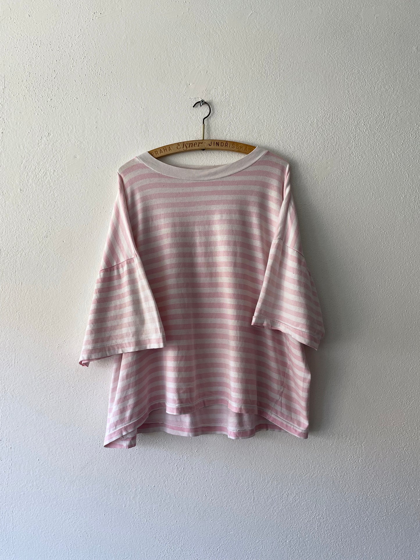 薄くなったコットン素材に、フェードしたピンクストライプ。
