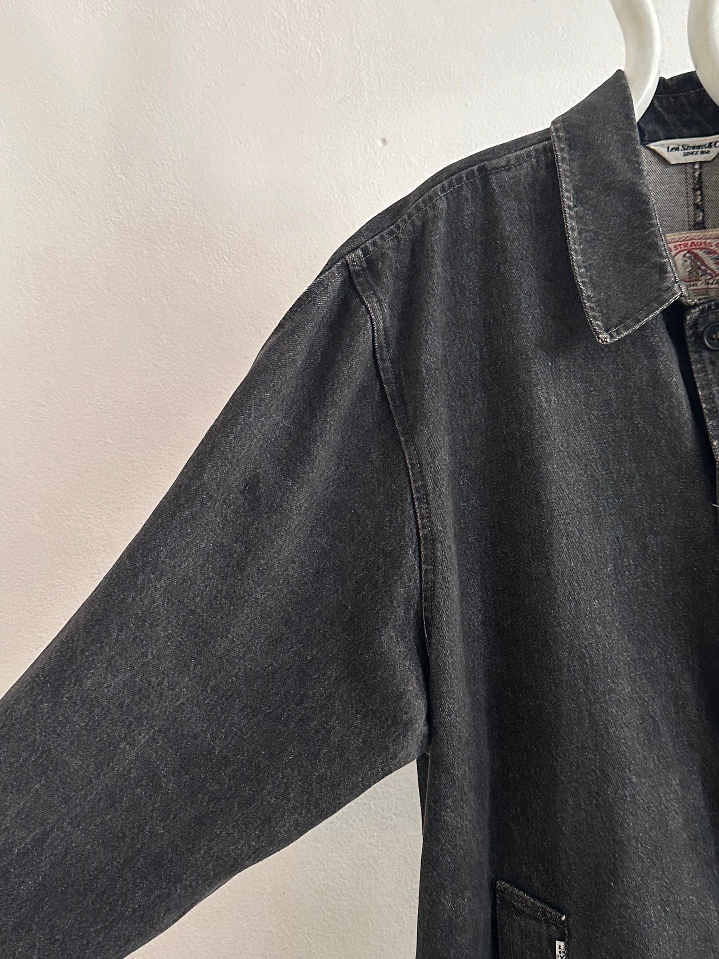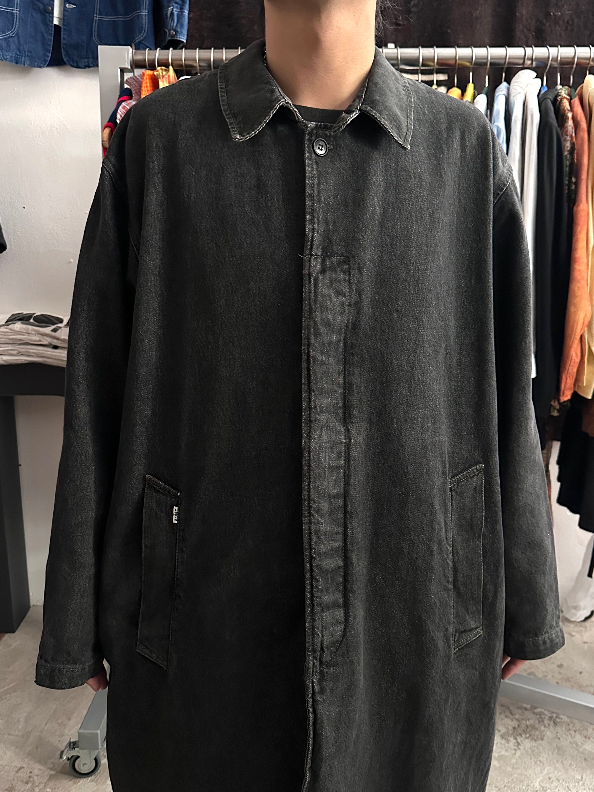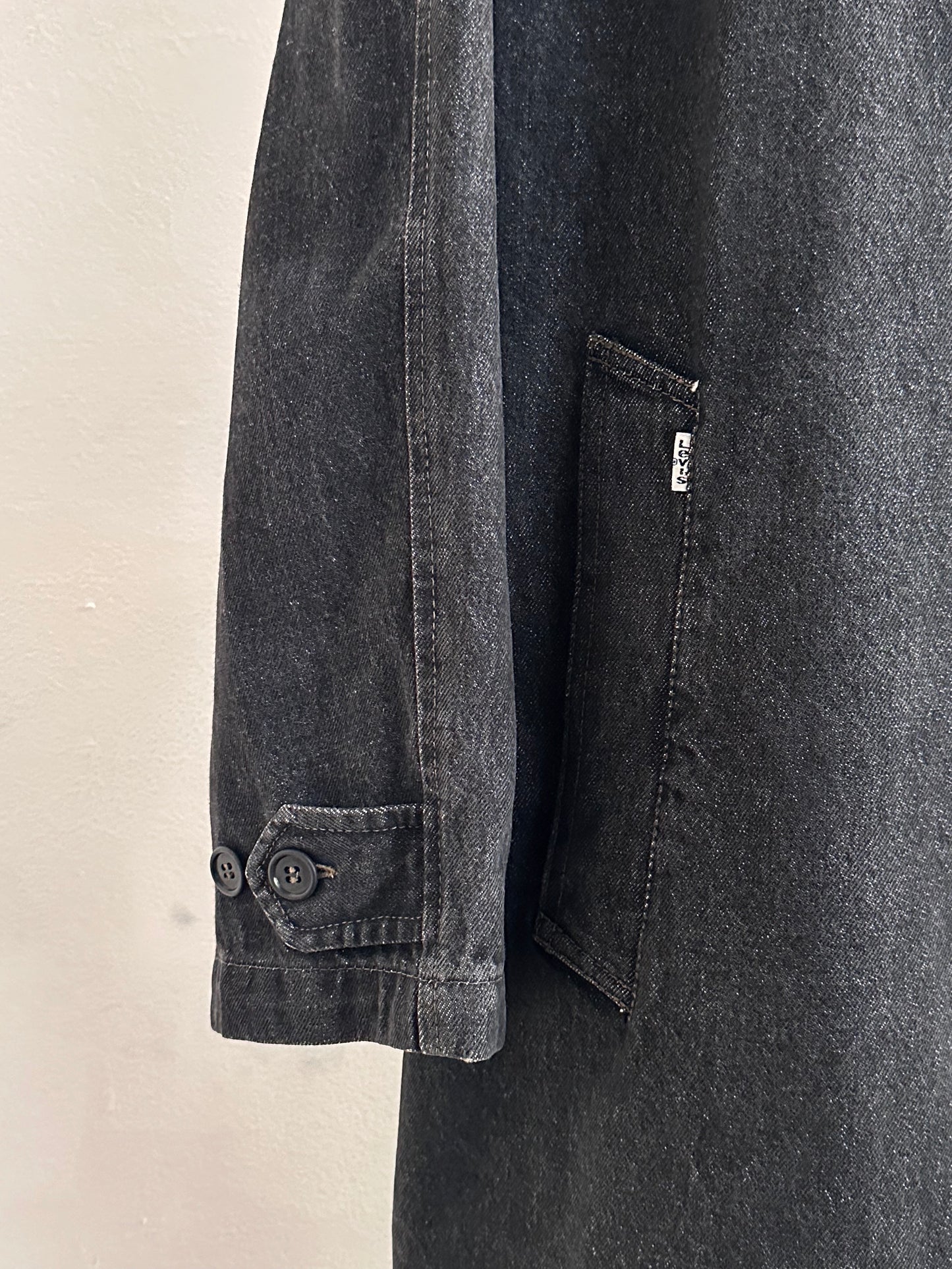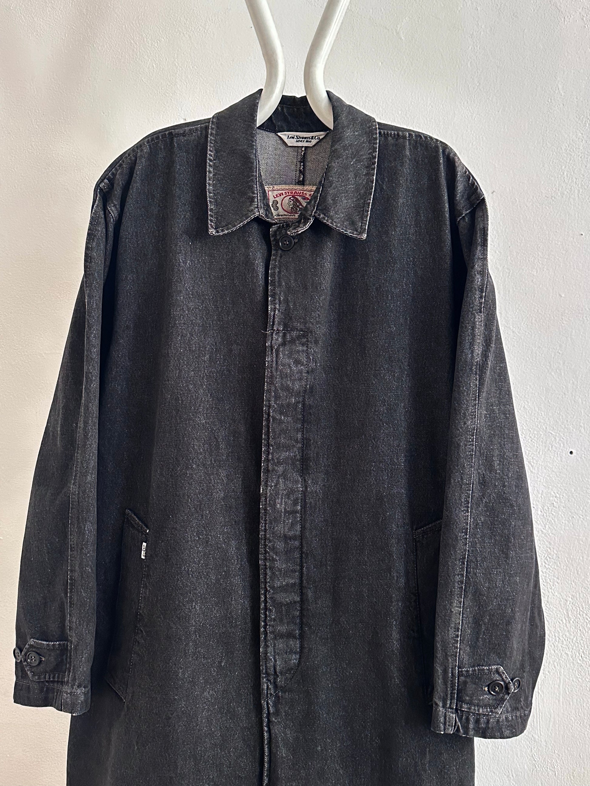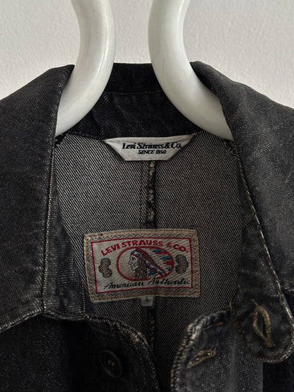 80s Italy Levi's Black Denim Coat
