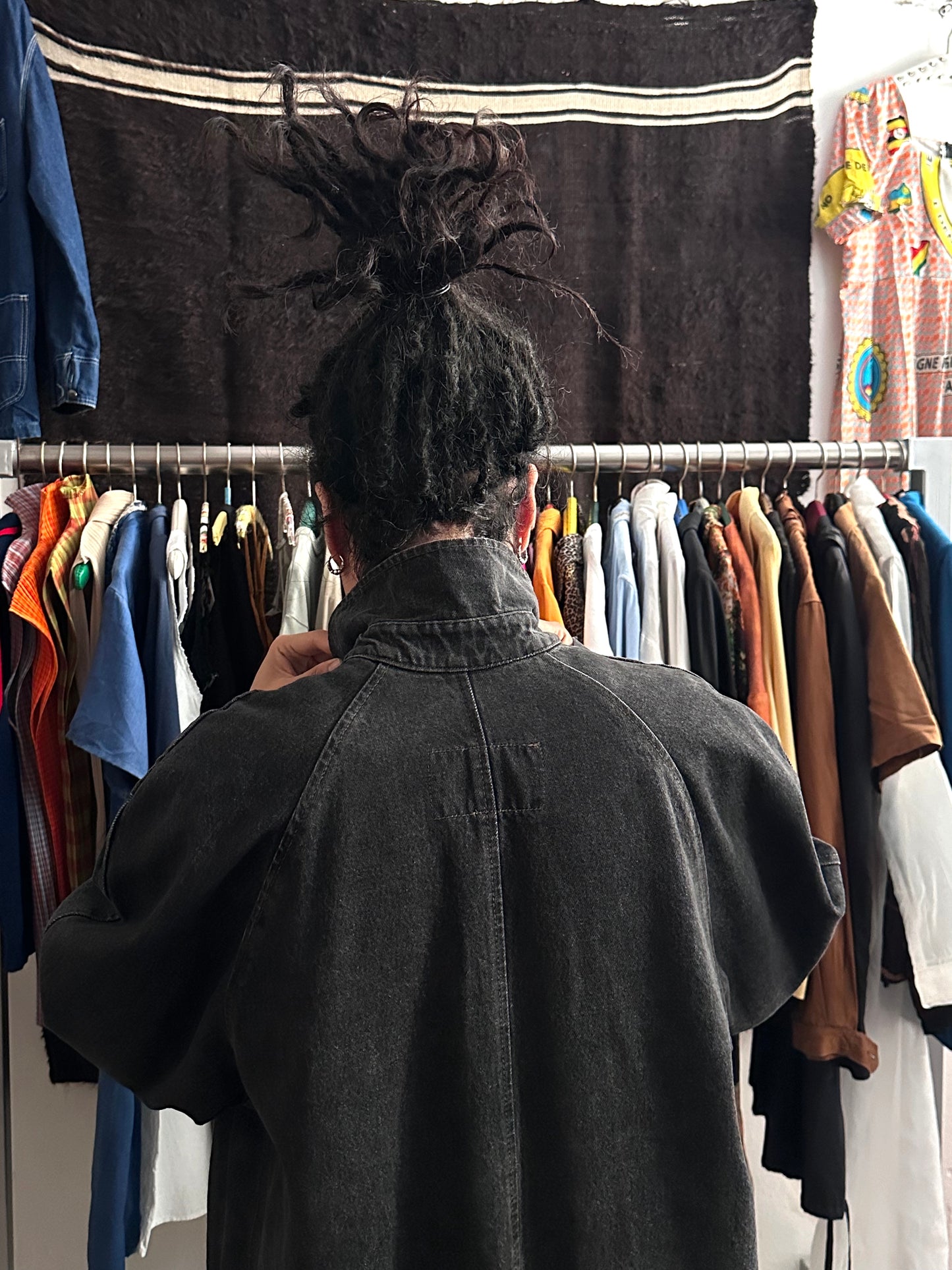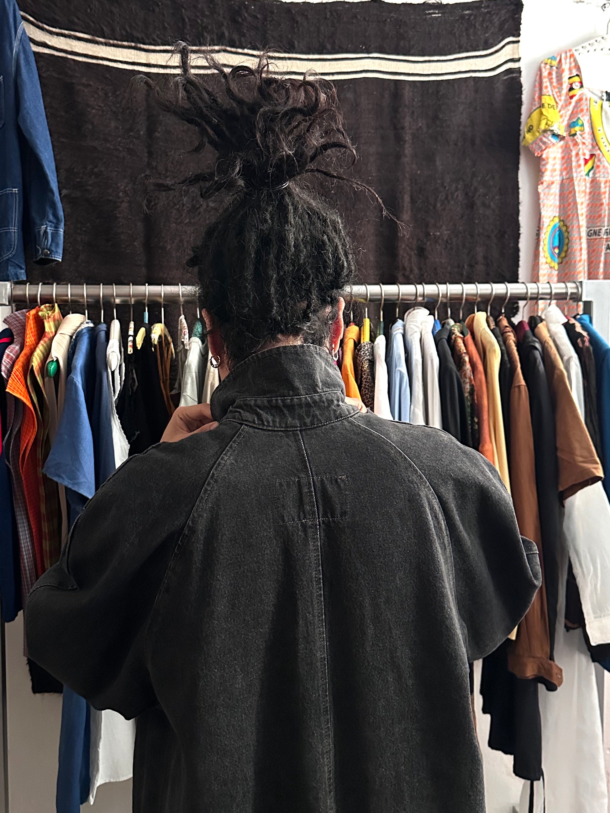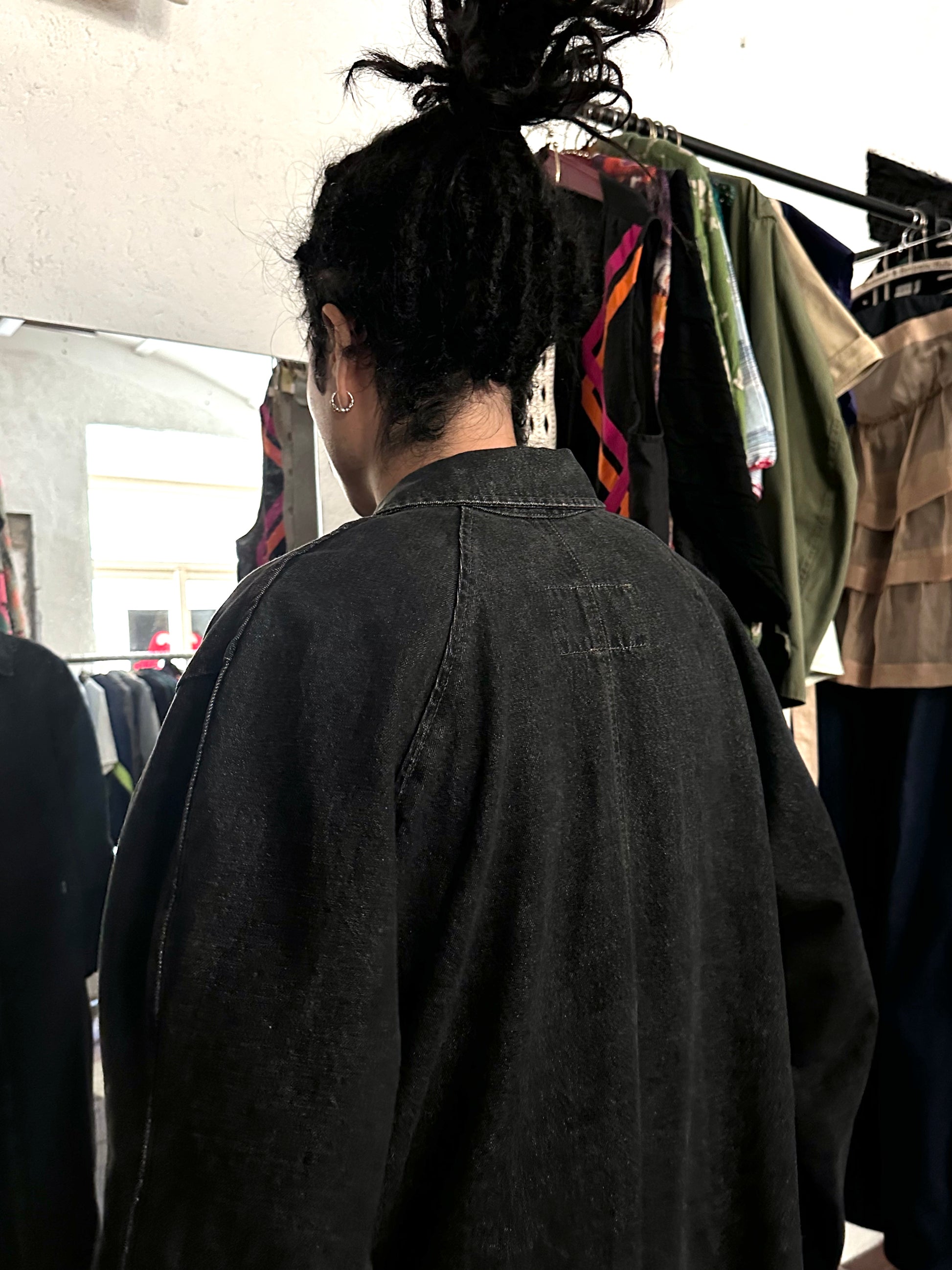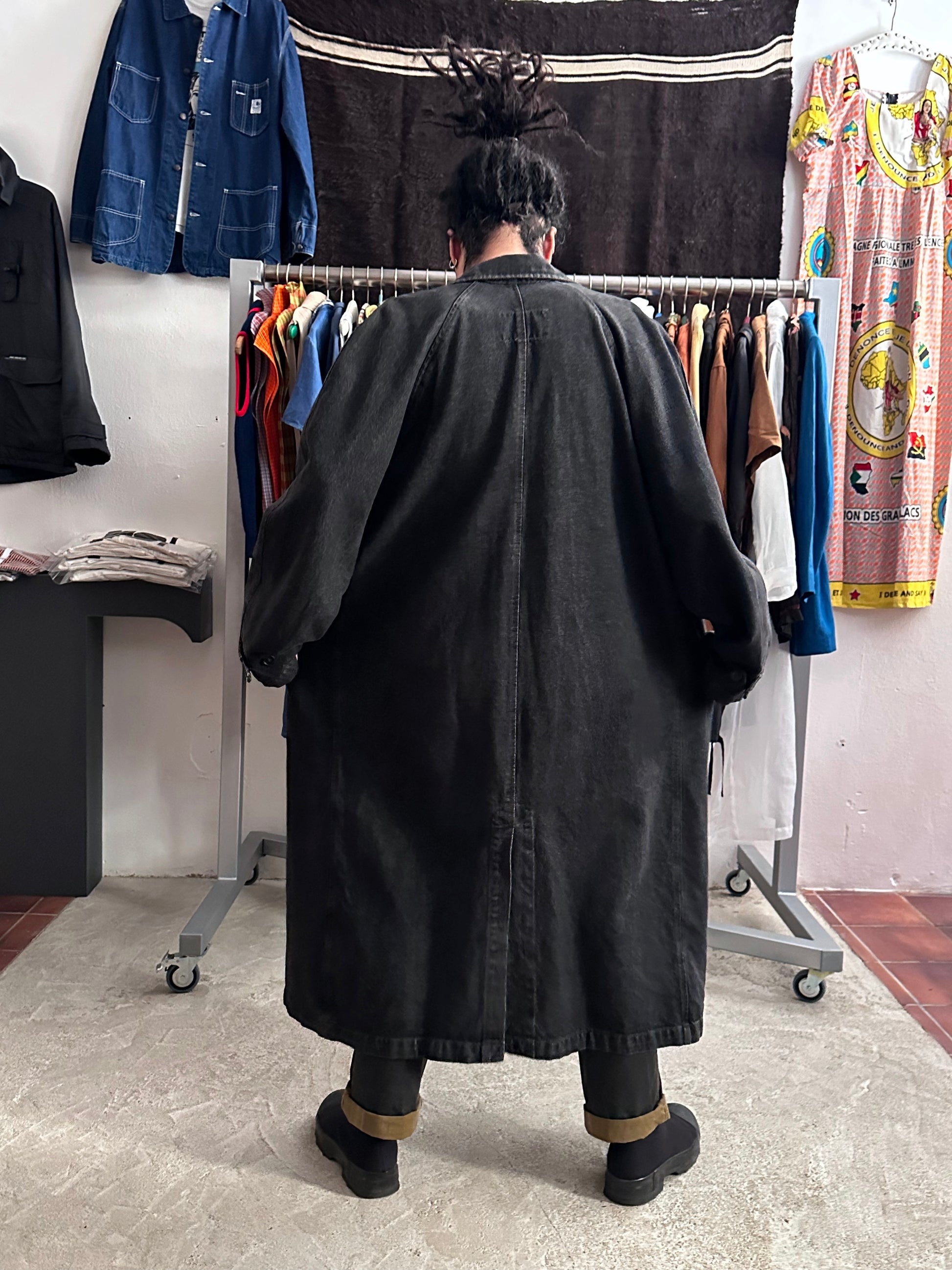 80s Italy Levi's Black Denim Coat