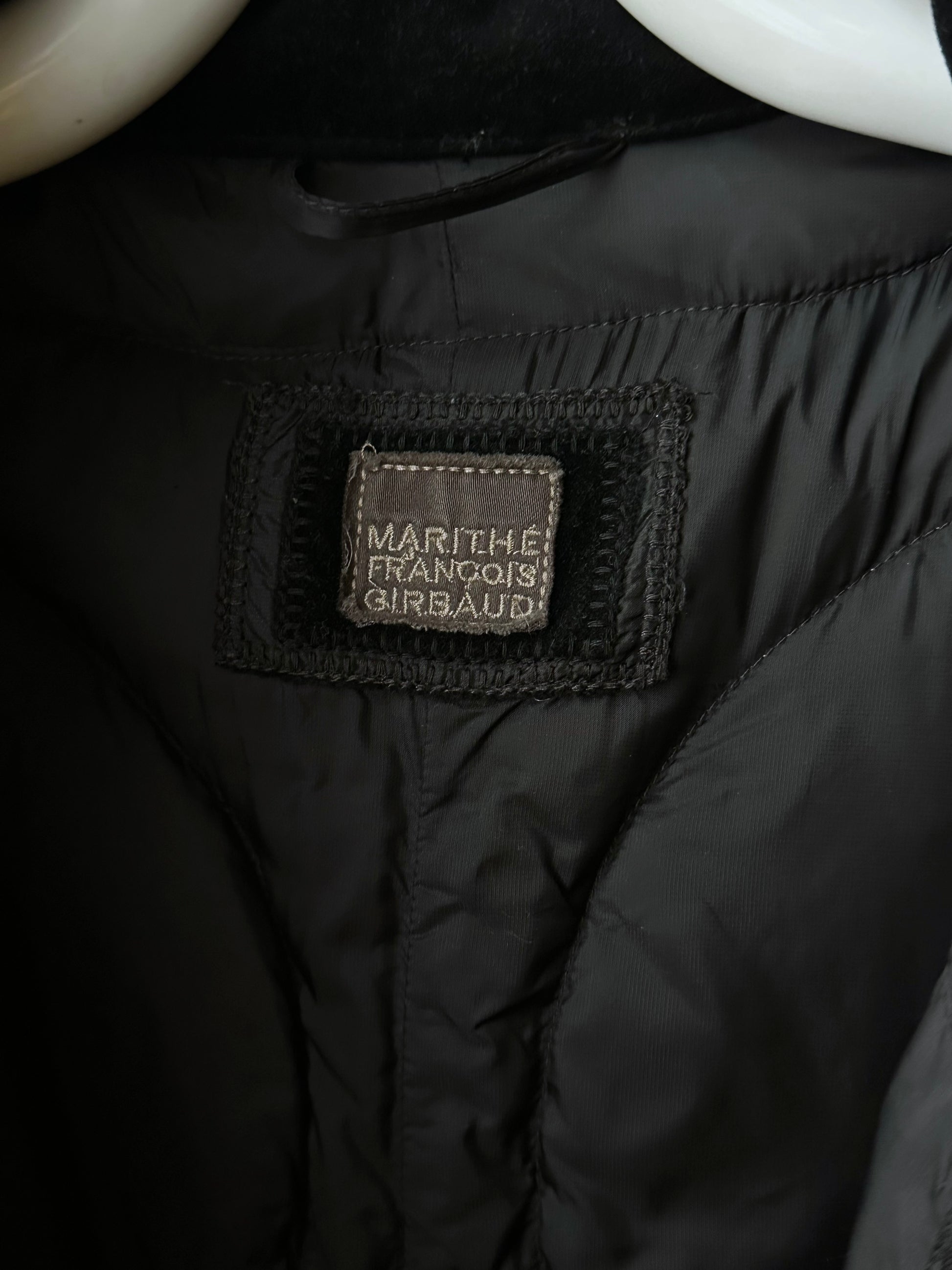 マリテフランソワジルボーより上質なダウンフェザーのブラックナイロンコート。