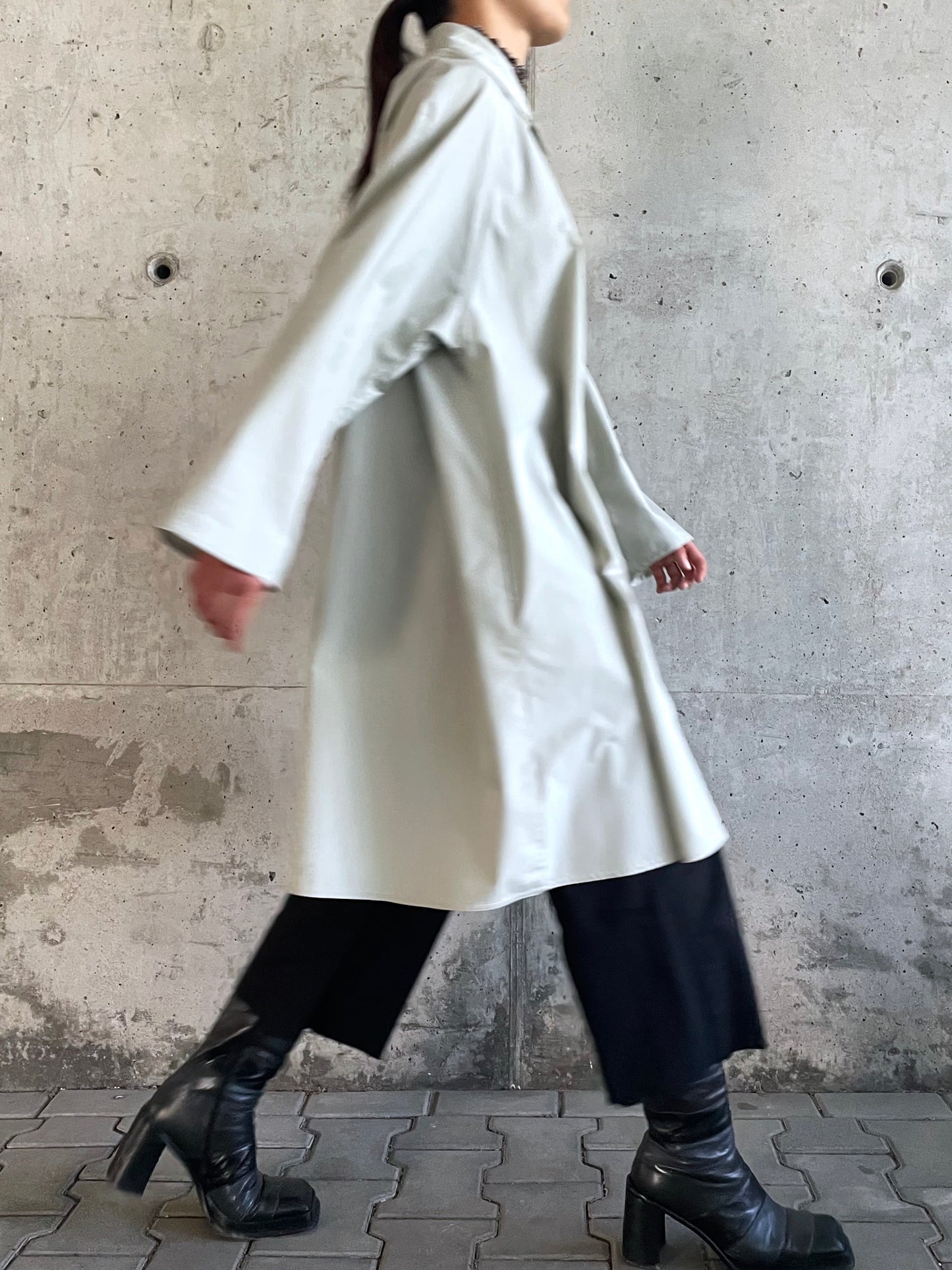 シャツのように薄手なグレーのコートなんですが、
