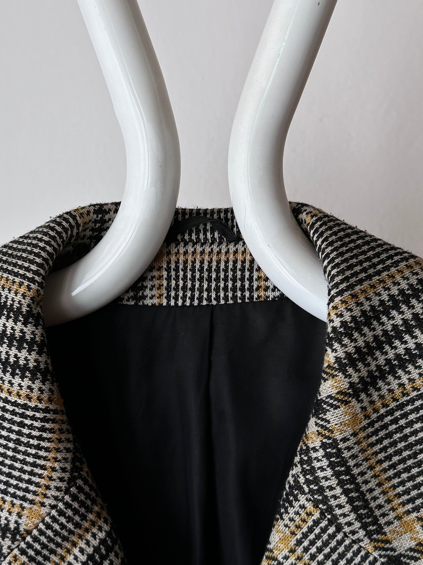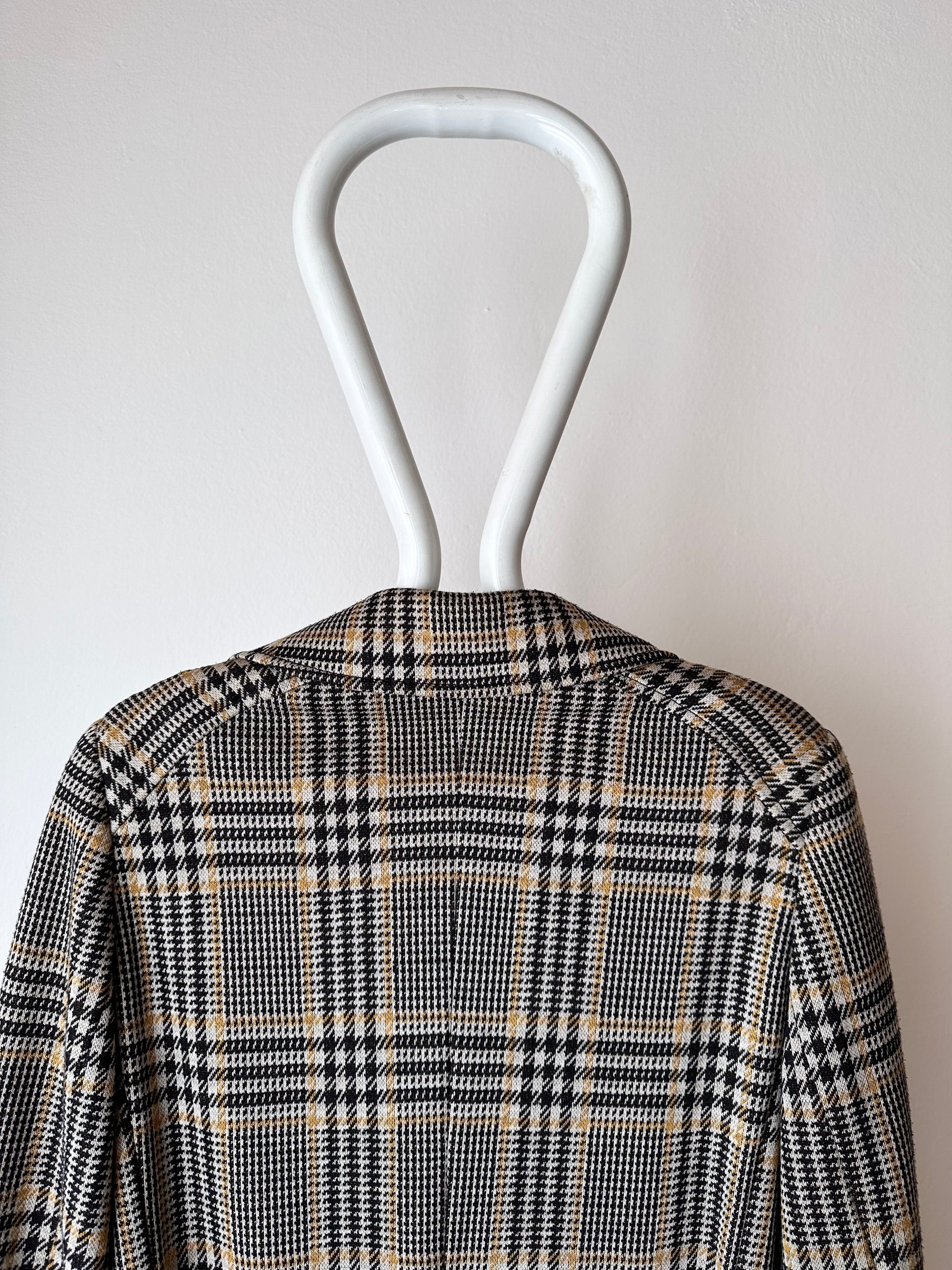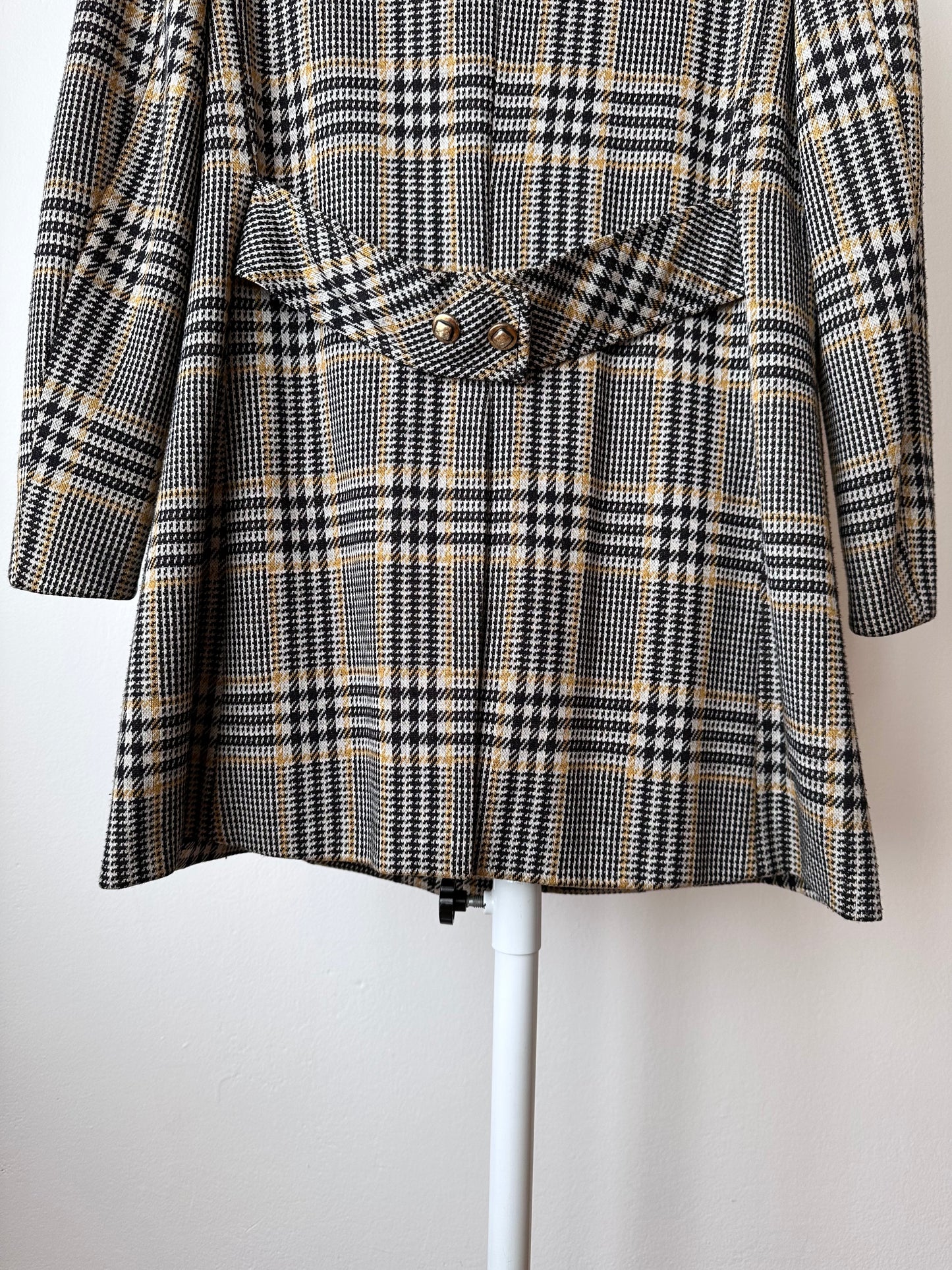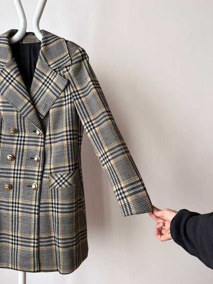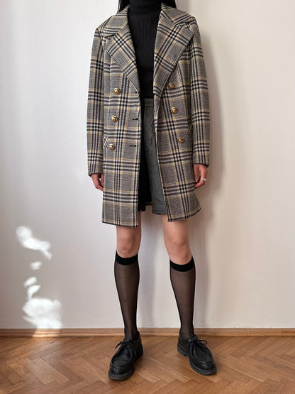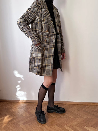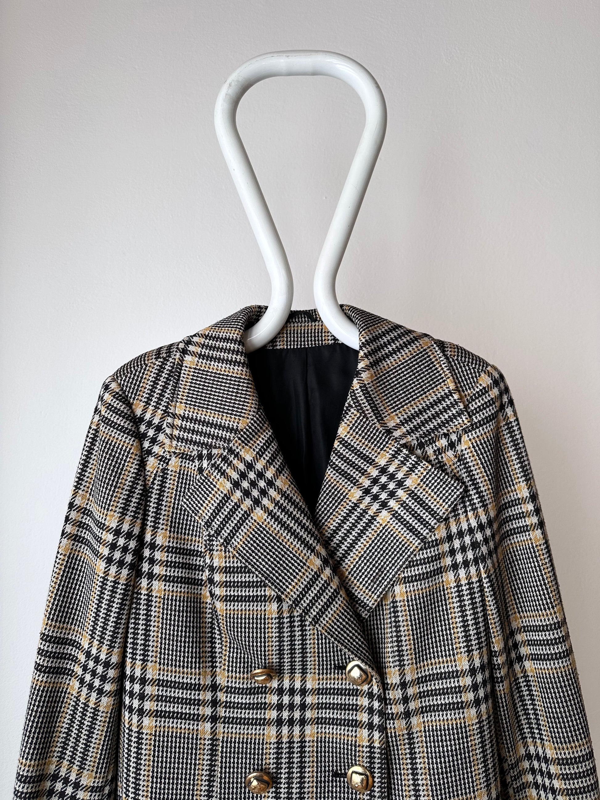 色味の素敵なチェック柄に金のボタン、少し長めの着丈の美しいシルエット、質の良い素材にテーラリング、どこをとっても完璧です。涙